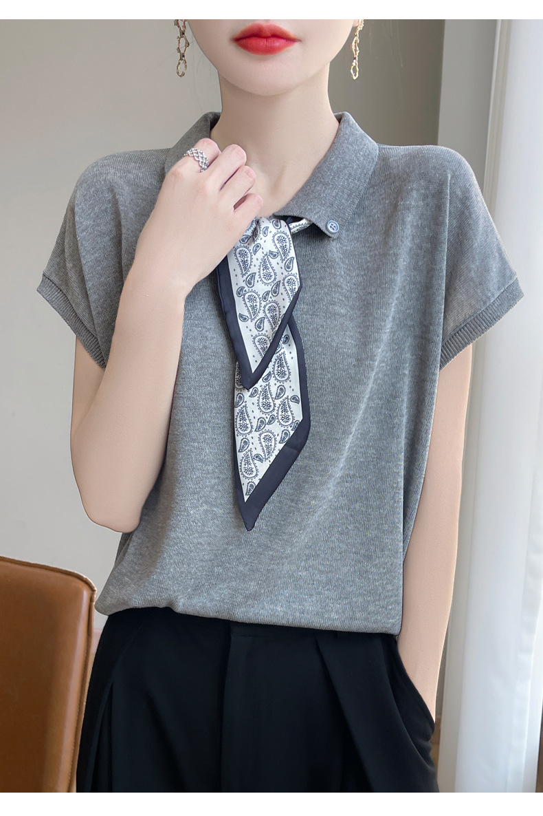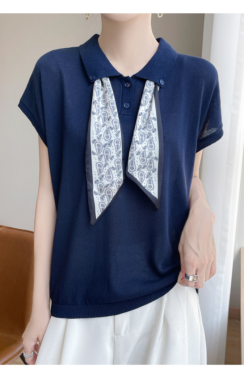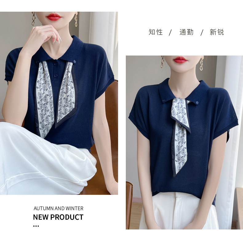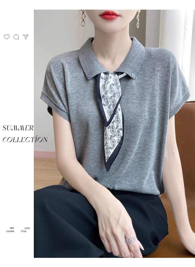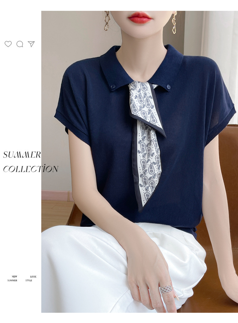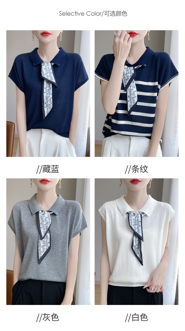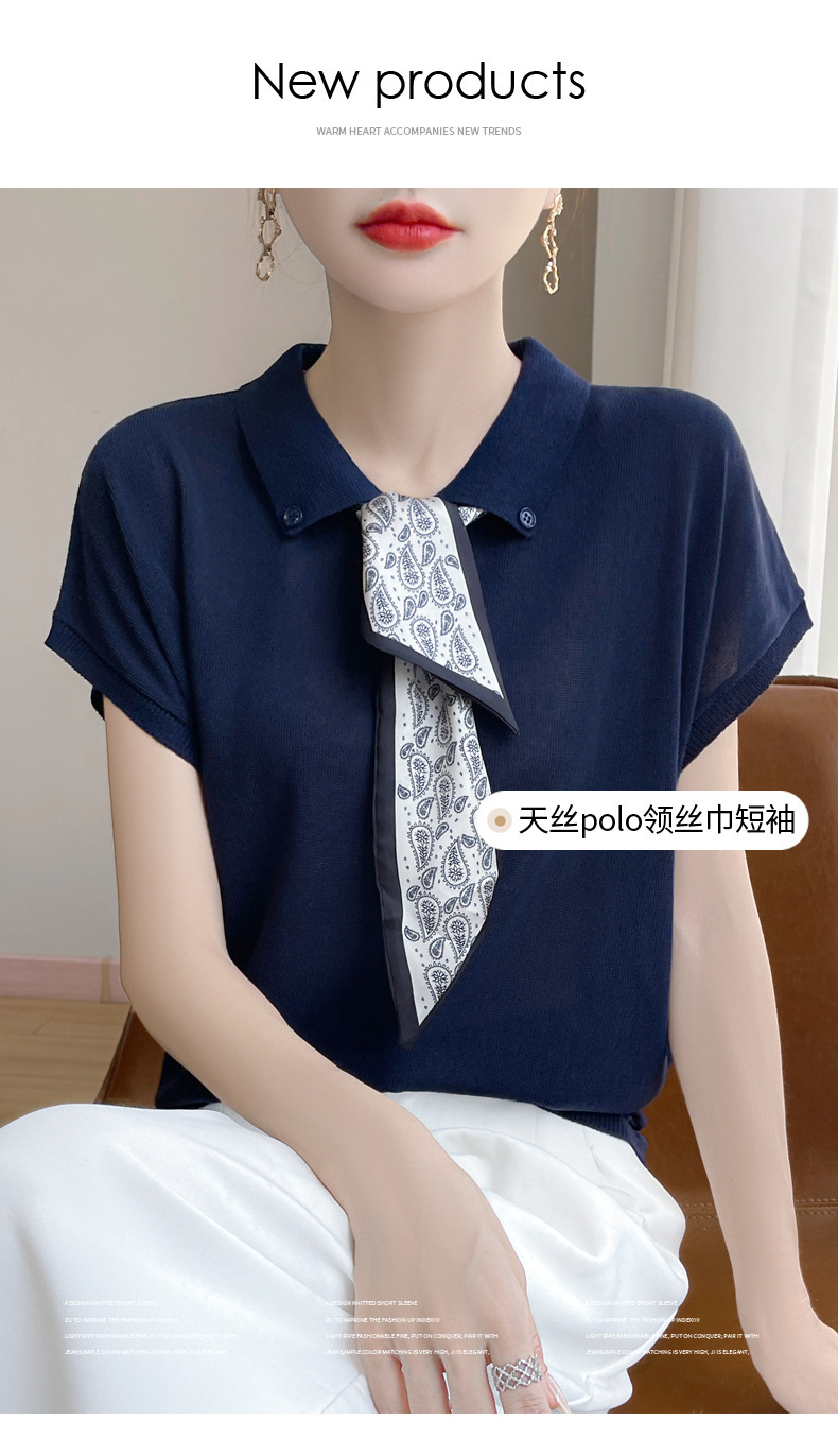 雀说新款飞飞袖T恤衫清凉感薄款莱赛尔天丝女士POLO衫丝巾短袖AL3040