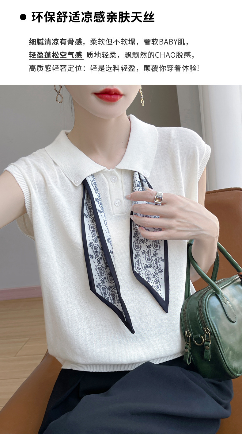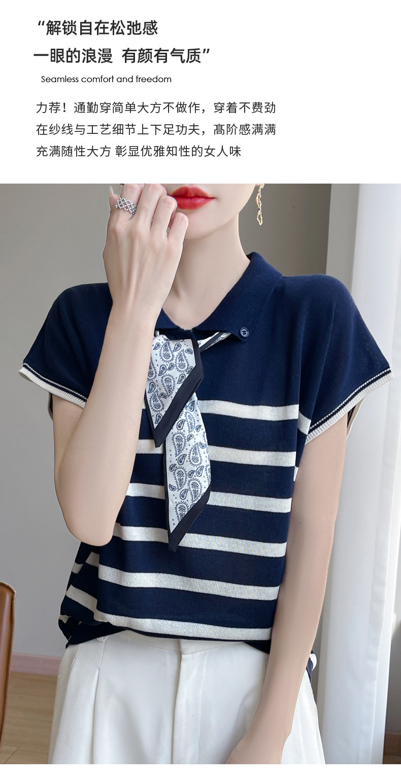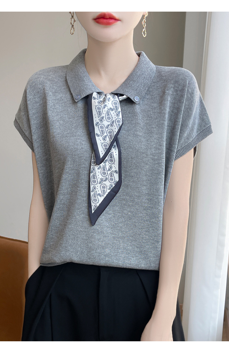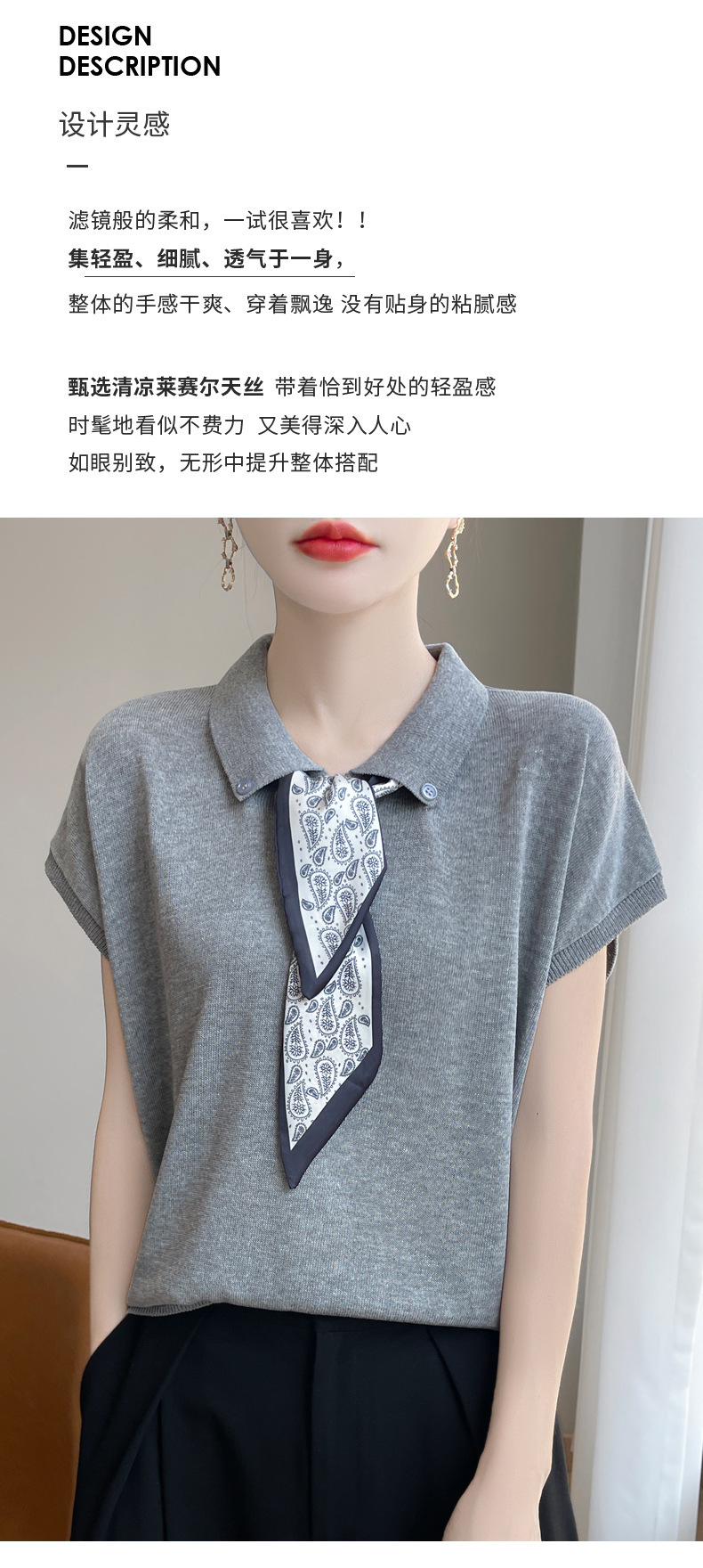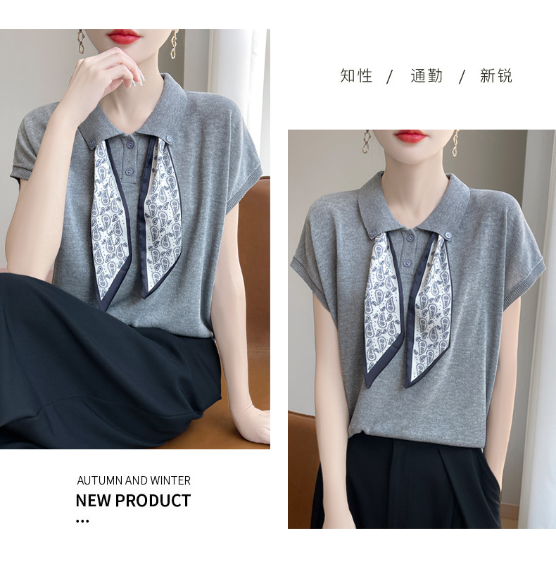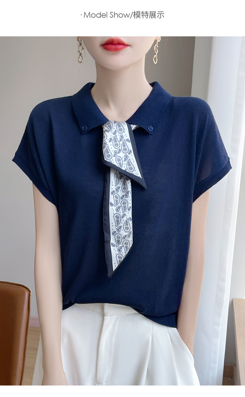 雀说新款飞飞袖T恤衫清凉感薄款莱赛尔天丝女士POLO衫丝巾短袖AL3040
