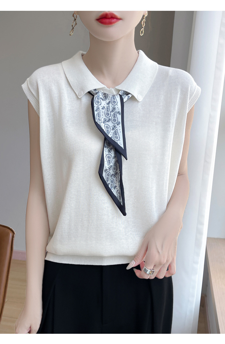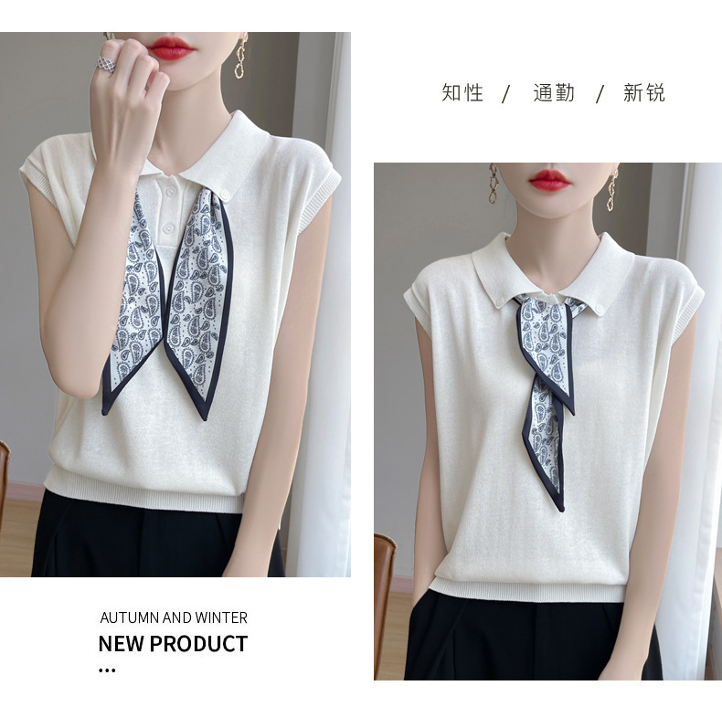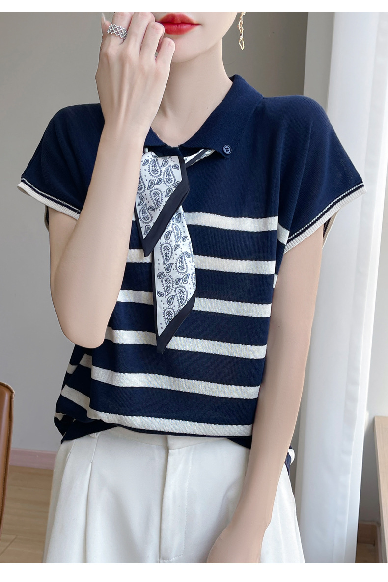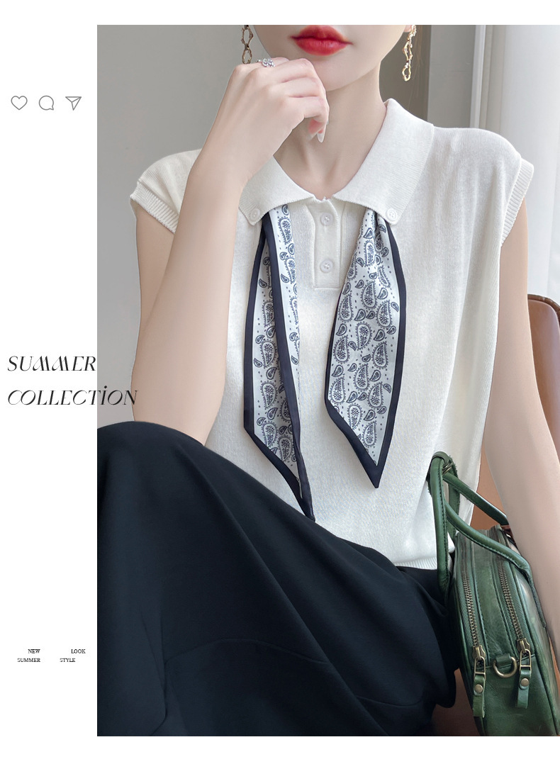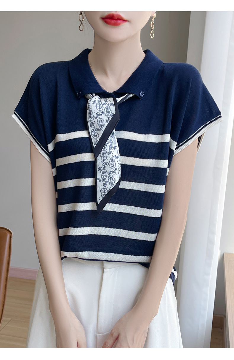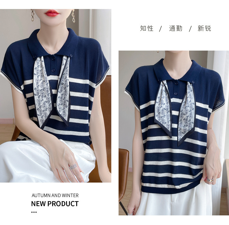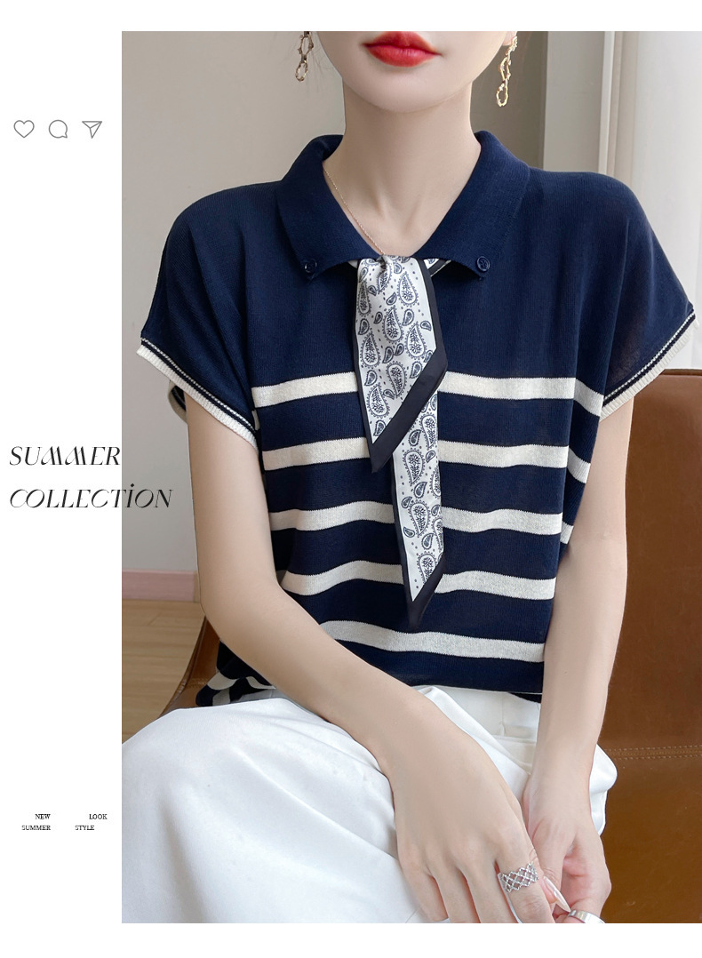 雀说新款飞飞袖T恤衫清凉感薄款莱赛尔天丝女士POLO衫丝巾短袖AL3040