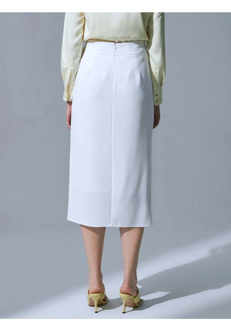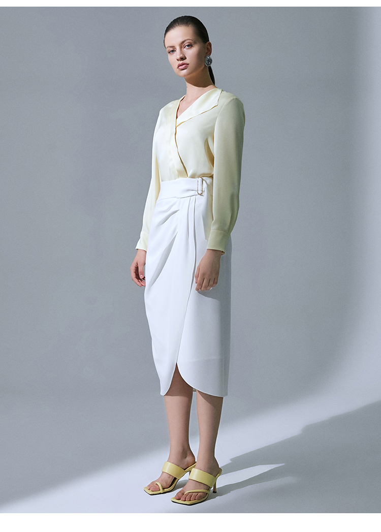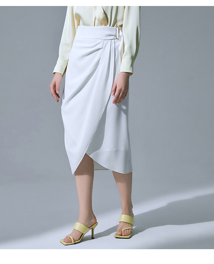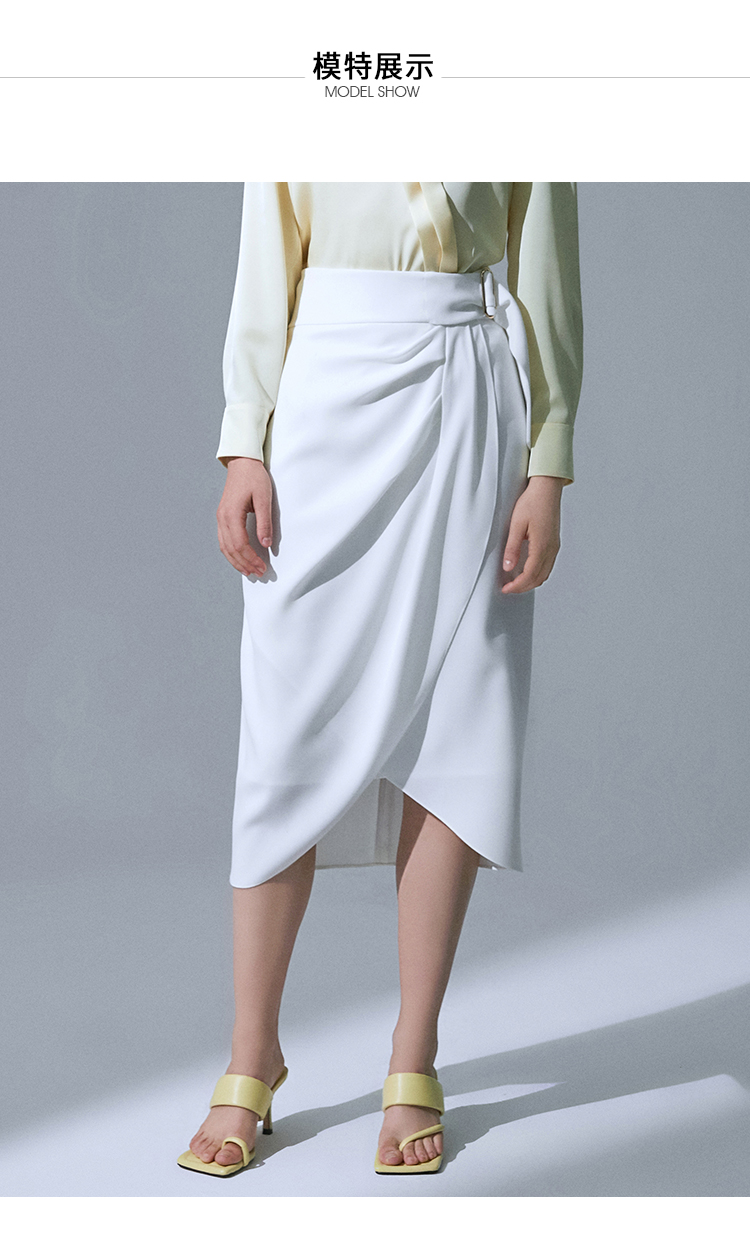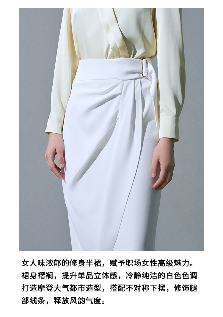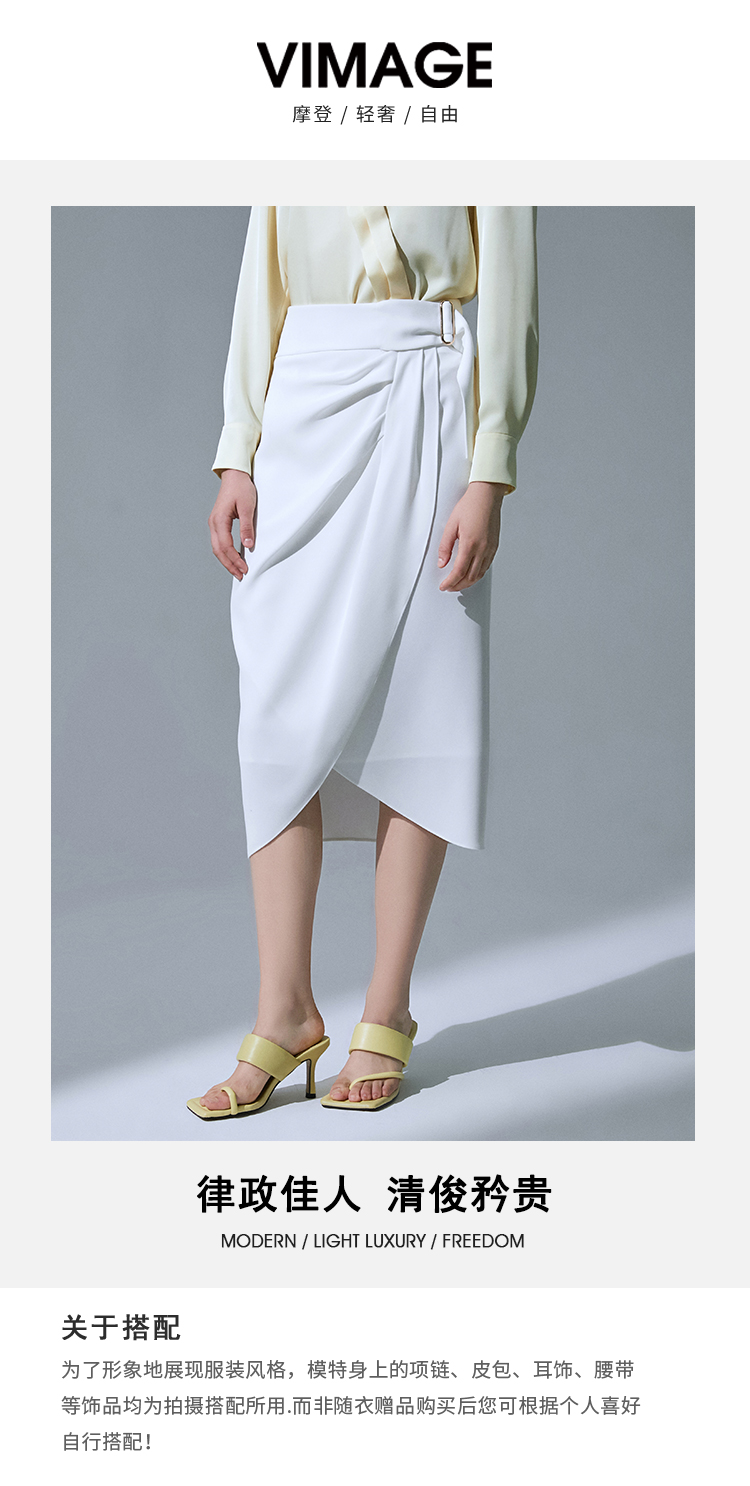 VIMAGE纬漫纪品牌女装高腰修身不规则中长裙纯色半身裙V1506105