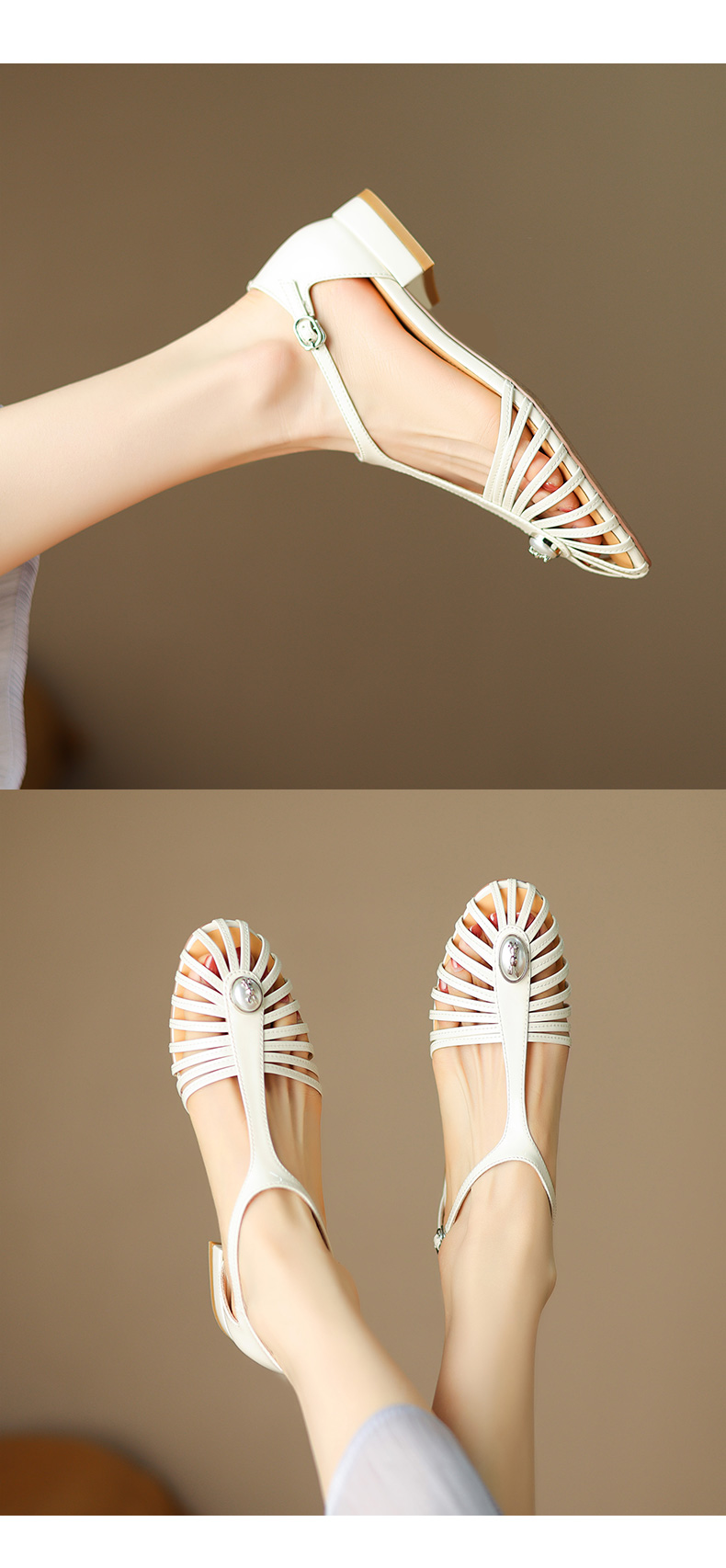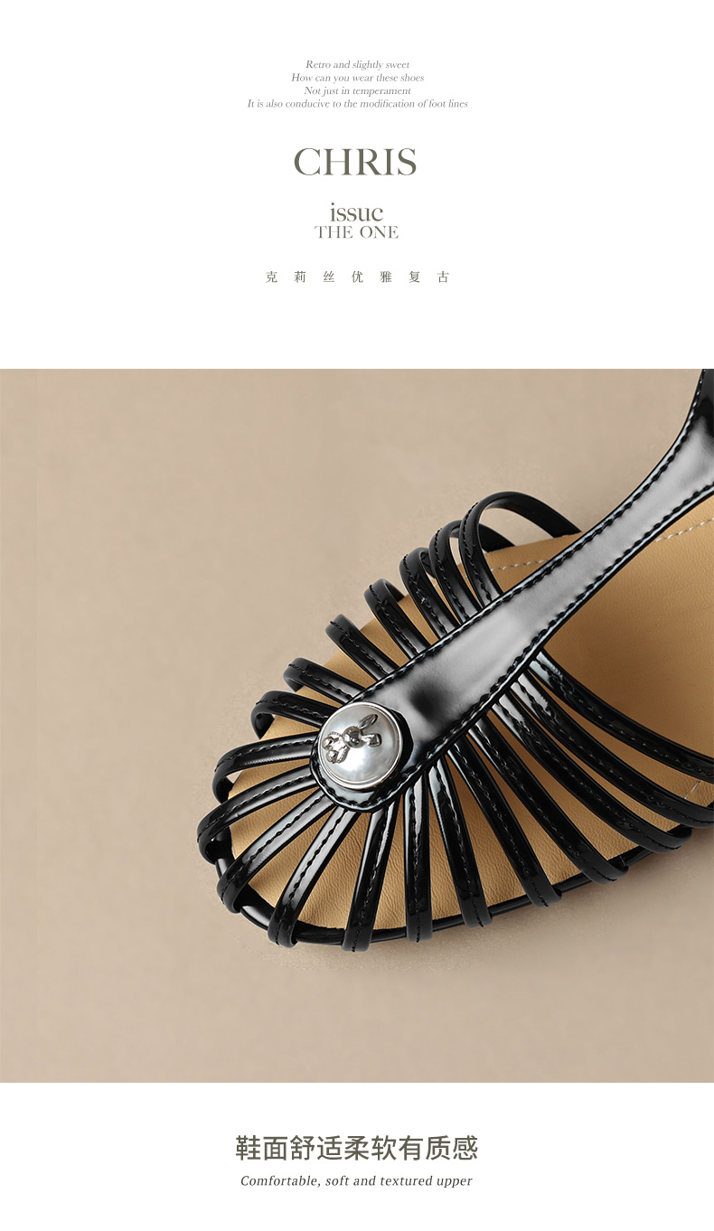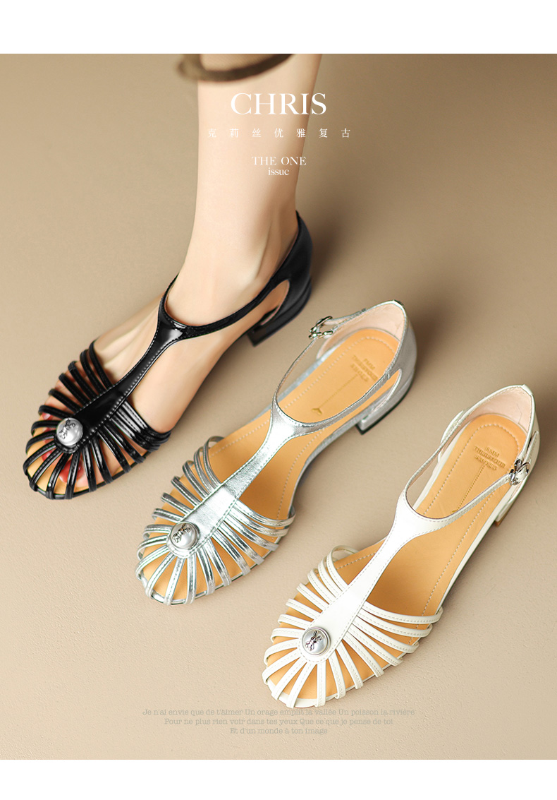 夏季新款,里外全皮低跟凉鞋HCY-3529