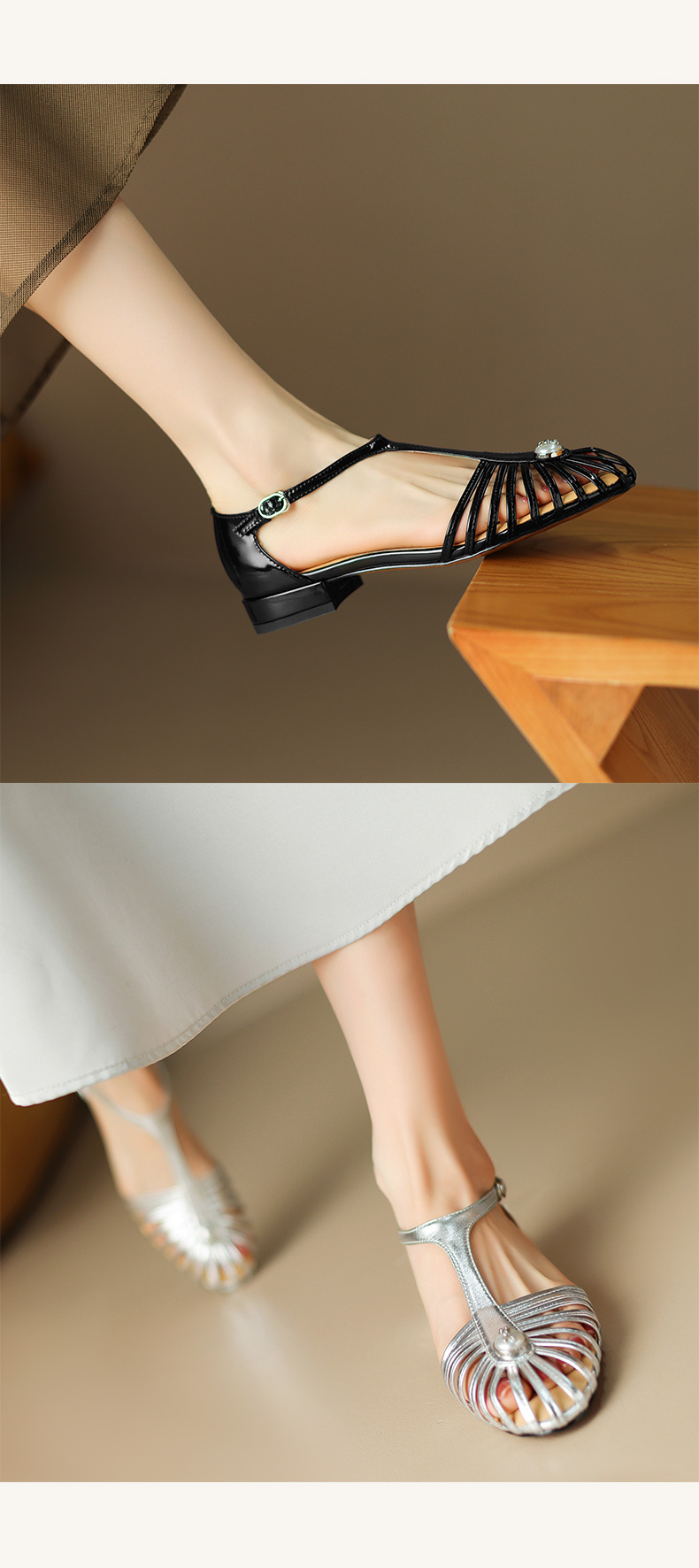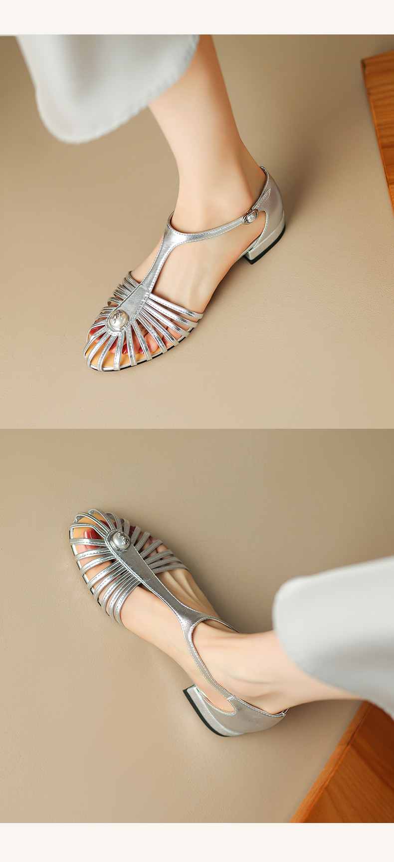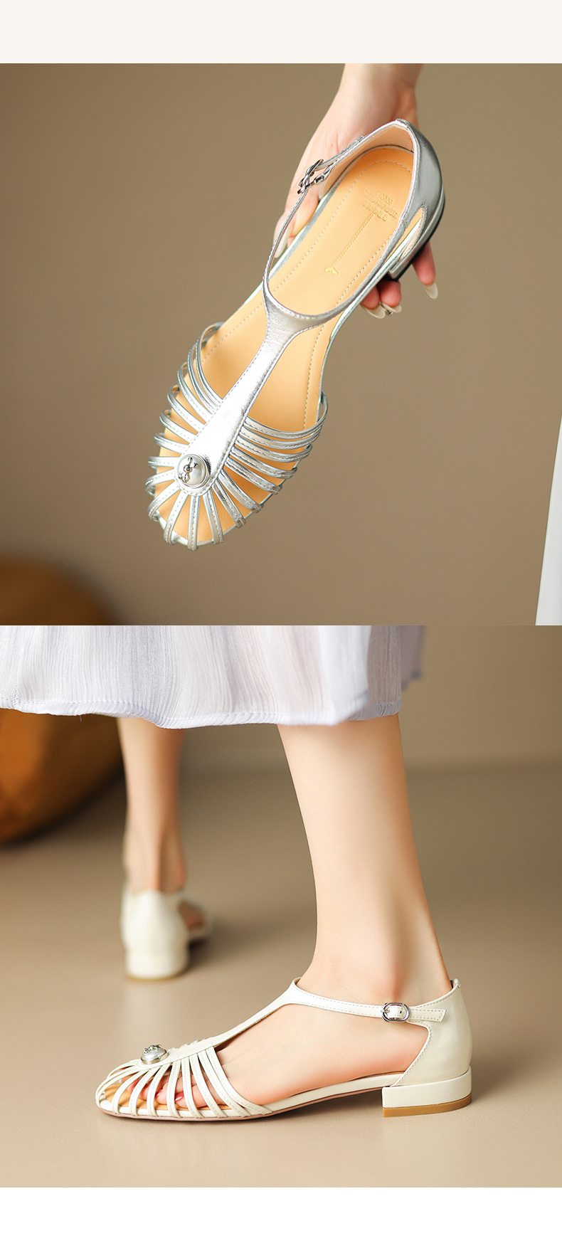 夏季新款,里外全皮低跟凉鞋HCY-3529