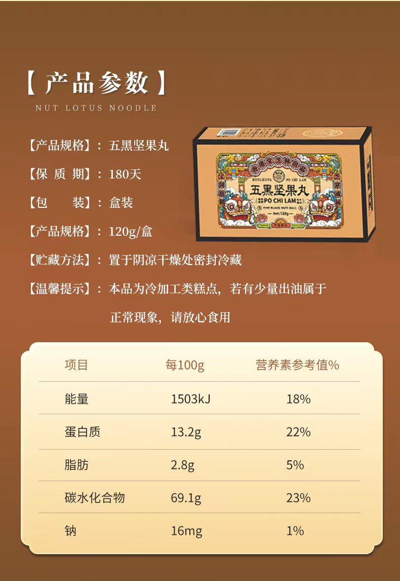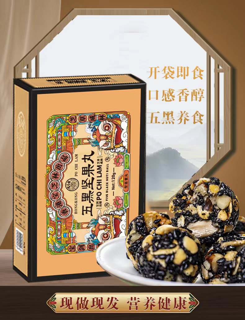 【百年品牌香港宝芝林】五黑坚果丸以黑养黑传统古法制作酥脆口感营养加倍更懂你的养生小零食一盒约20颗