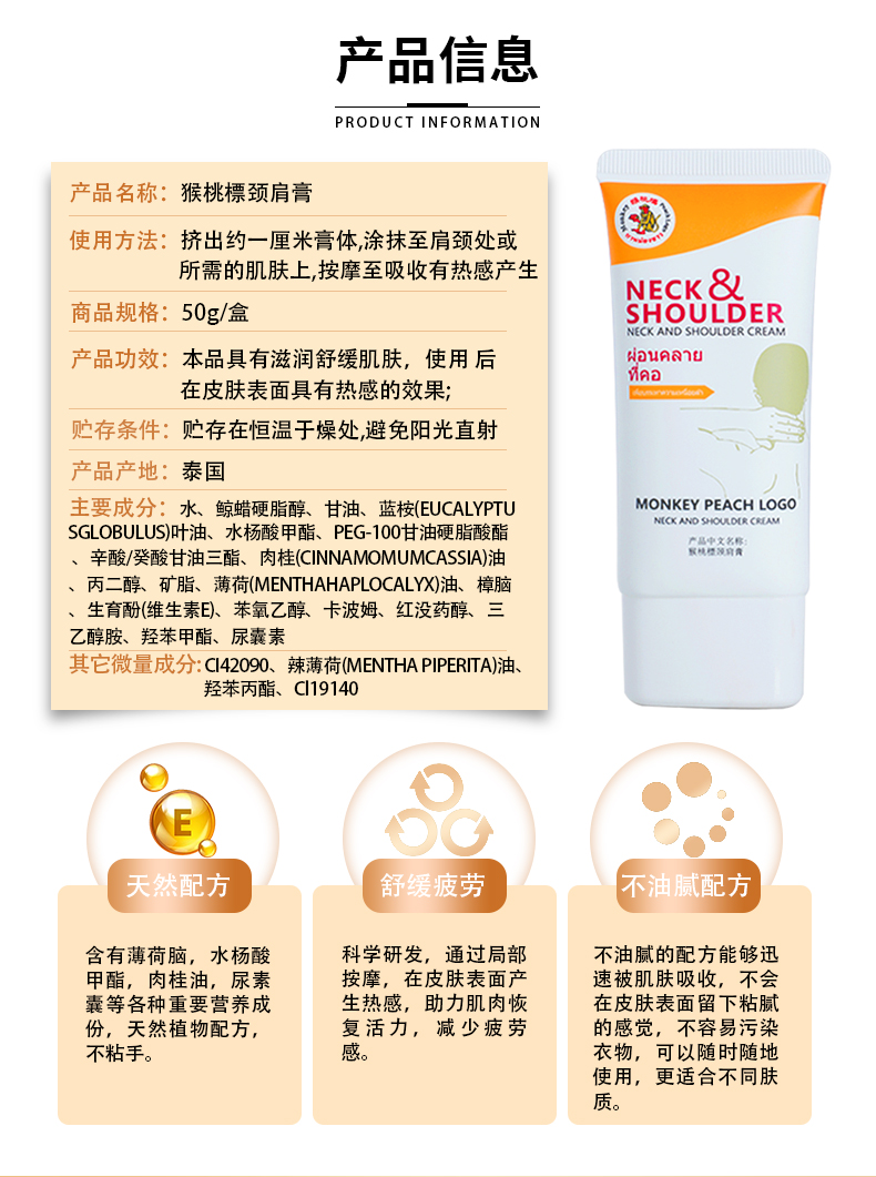 【舒缓颈肩酸痛的秘密武器】买一送一 泰国进口猴桃標颈肩膏50g