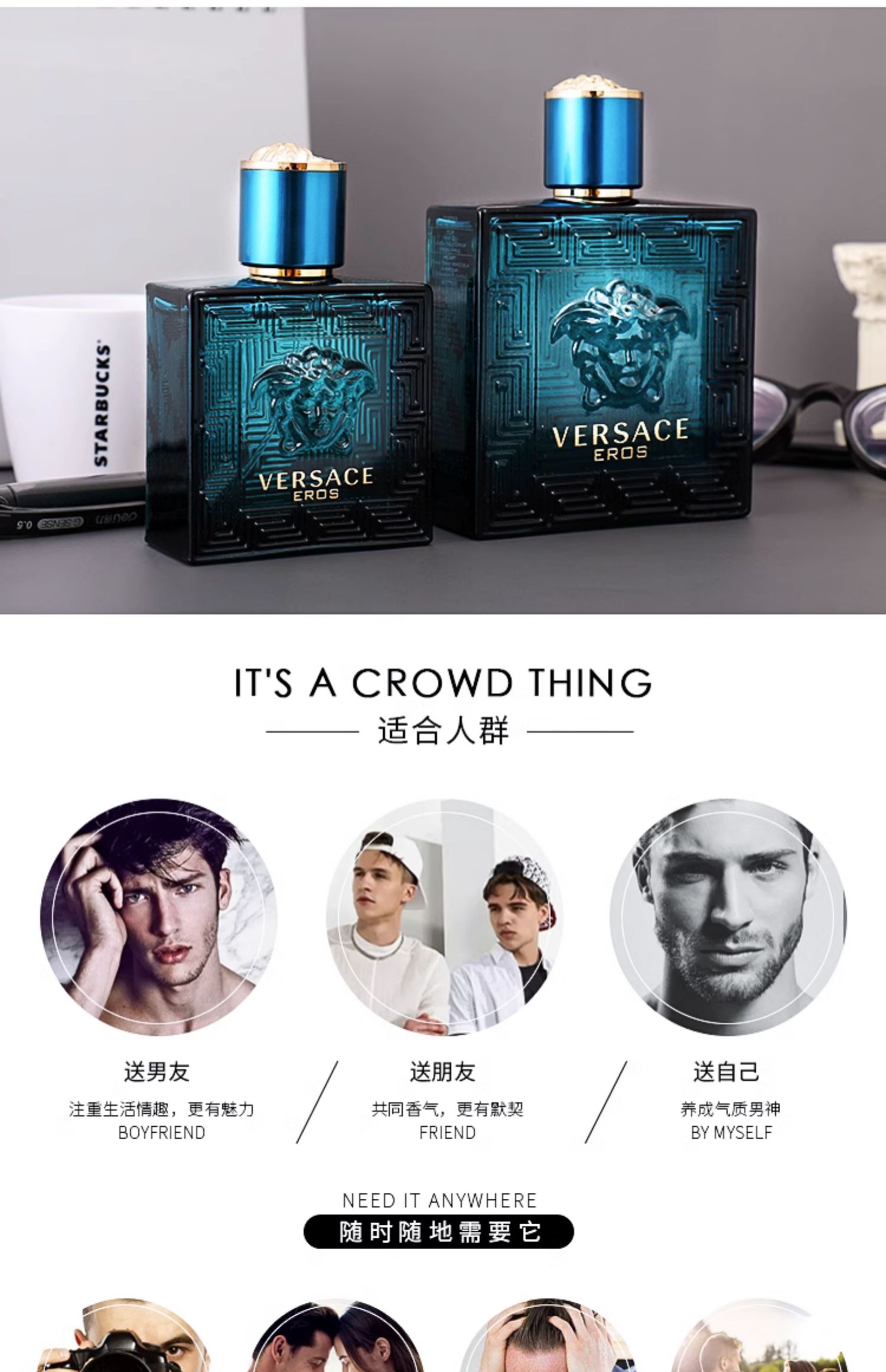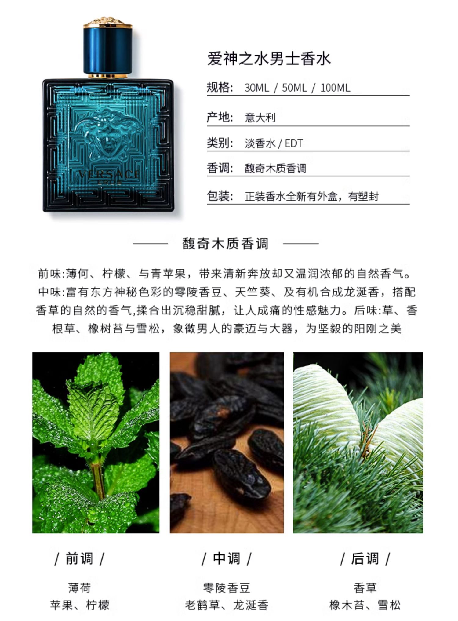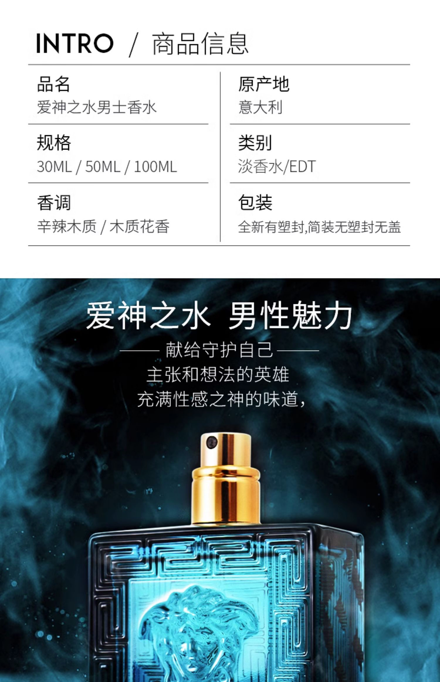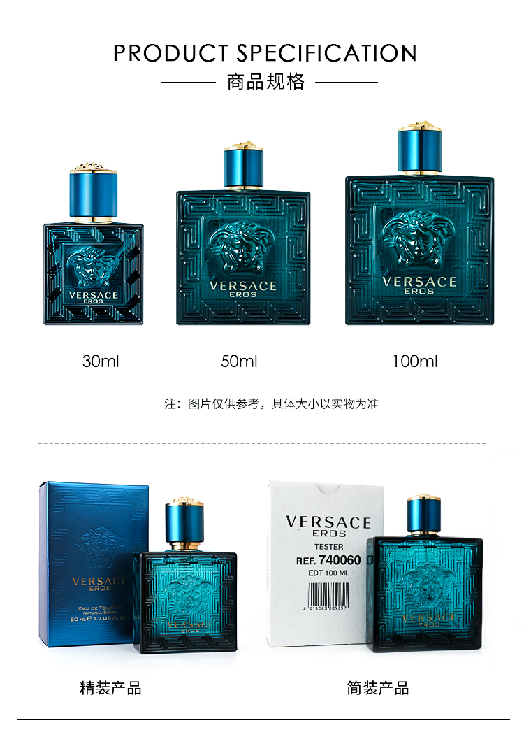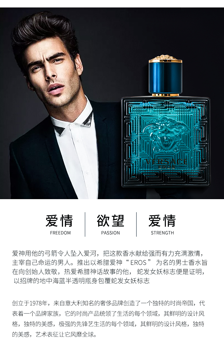 【保税直邮 福州海关】VERSACE/范思哲爱罗斯爱神男士淡香水EDT 100ml简装