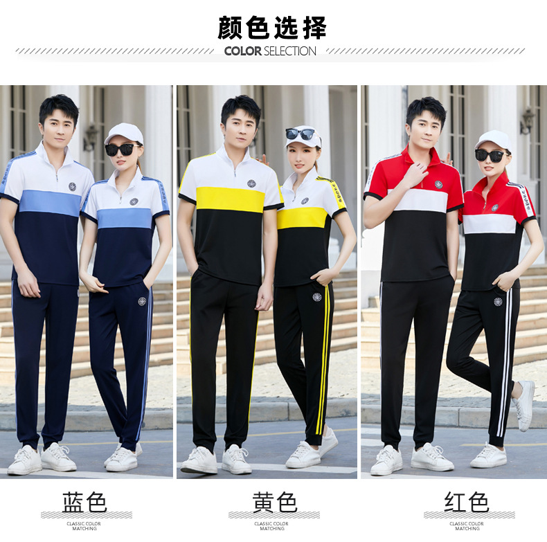 SP142-3551 运动套装男士休闲服夏季情侣运动服短袖长裤两件套夏天跑步套装女