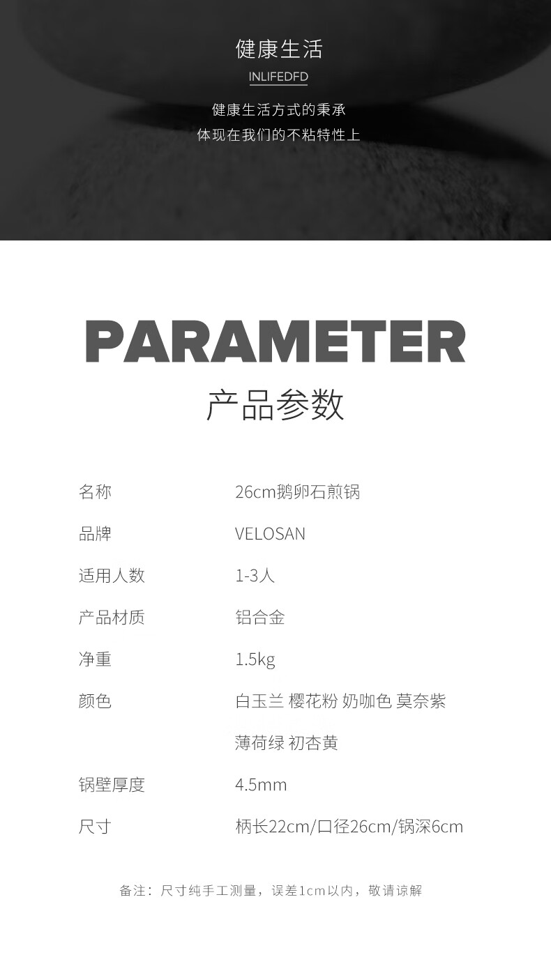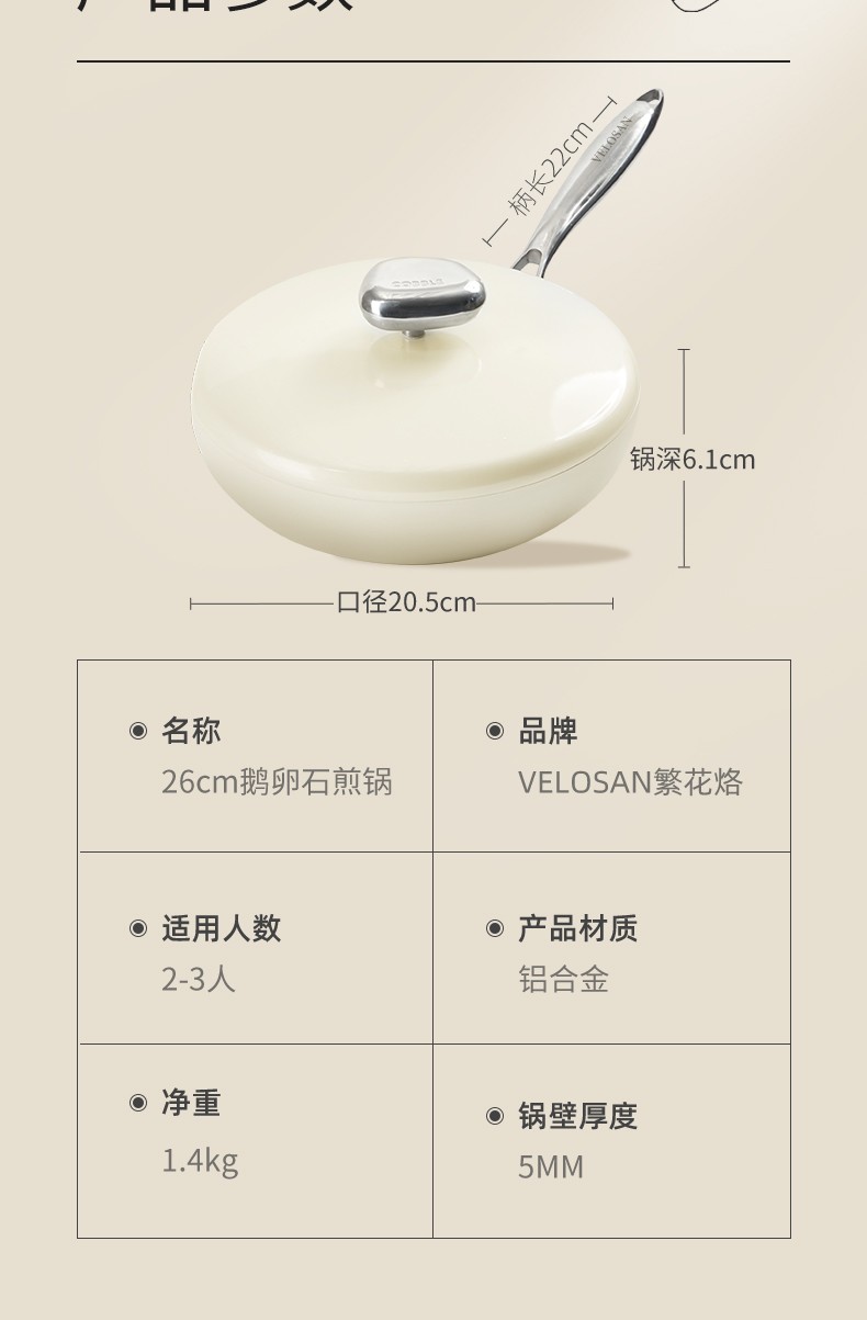 【安达联帮&仅限快递】VELOSAN温仑山煎锅不粘锅26cm鹅卵石平底煎炒锅VE1110(厂家直发)