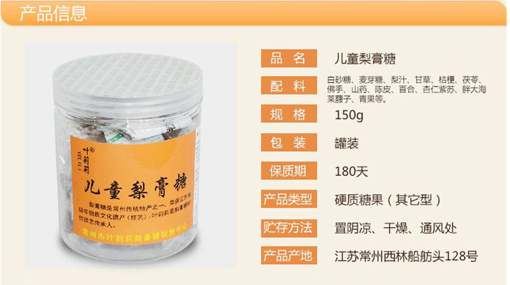 【常州馆】叶莉莉 儿童梨膏糖150g 精选常州特产