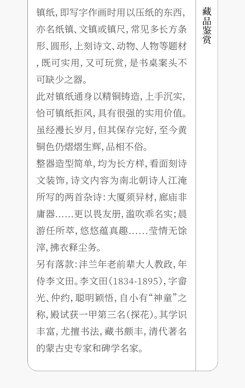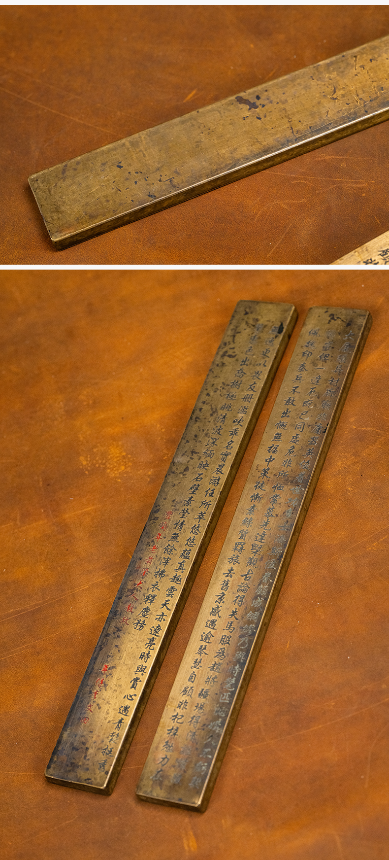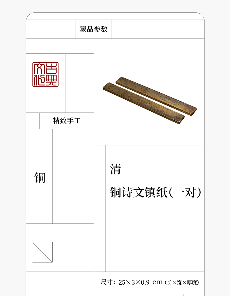 清 铜诗文镇纸(一对)