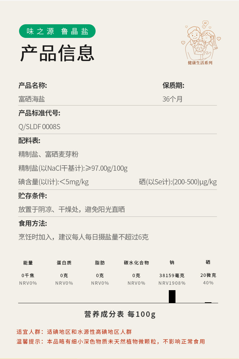 鲁晶(LUJING) 鲁晶未加碘富硒海盐252g无抗结剂无碘海盐补硒富硒盐