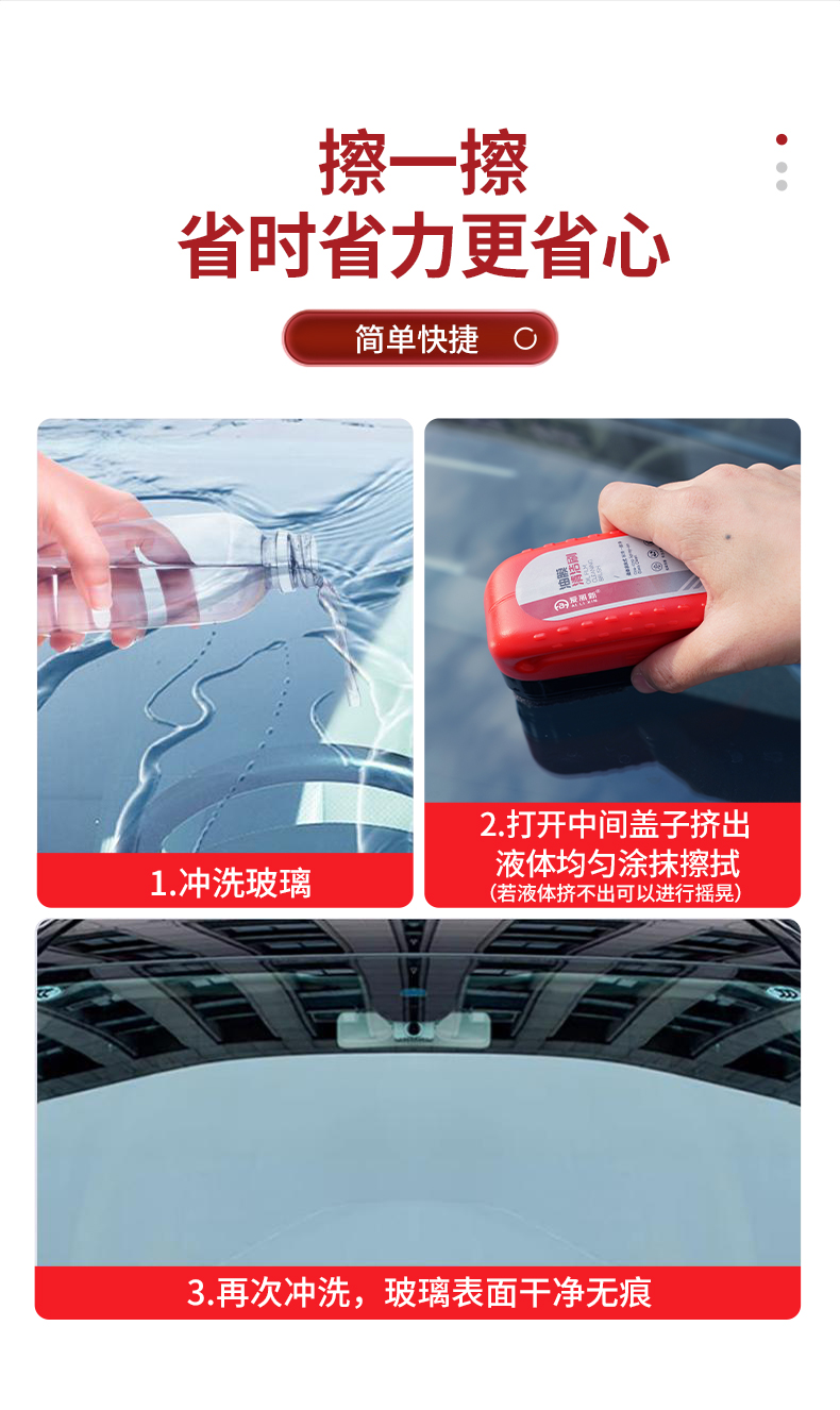 爱丽新汽车玻璃油膜擦去除强力去污净前挡后视镜镀膜剂清洁刷去油