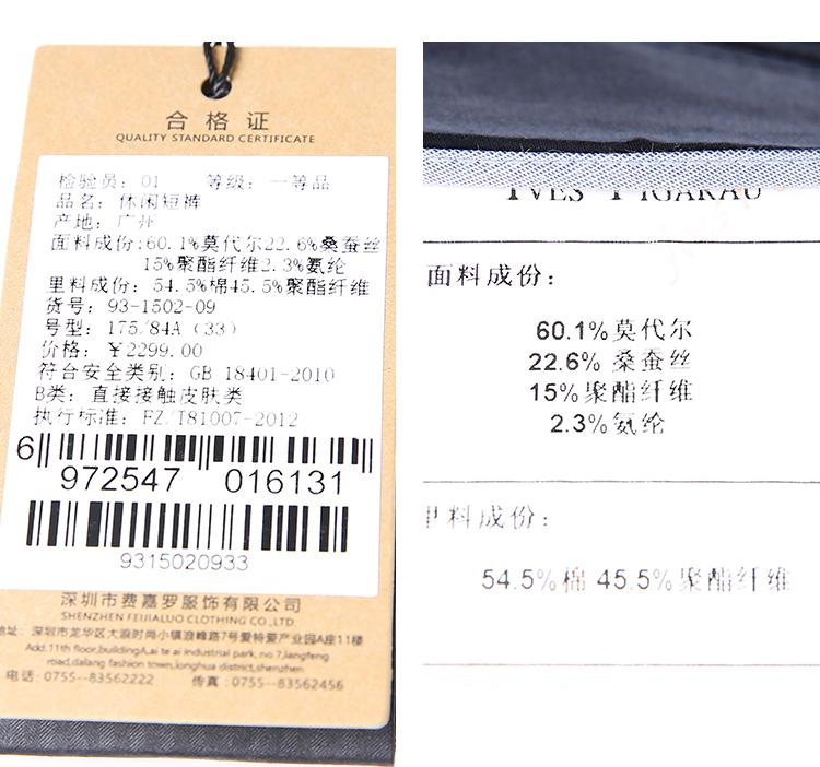 YvesFigarau伊夫·费嘉罗新品休闲短裤931502