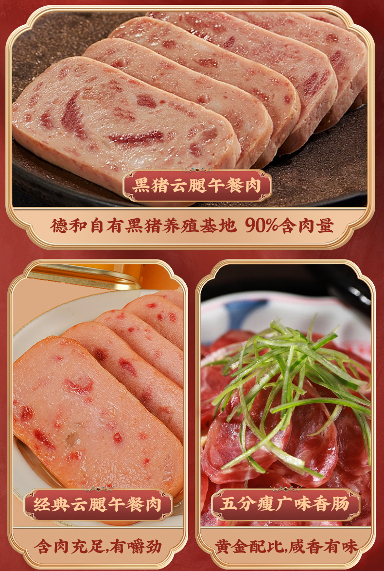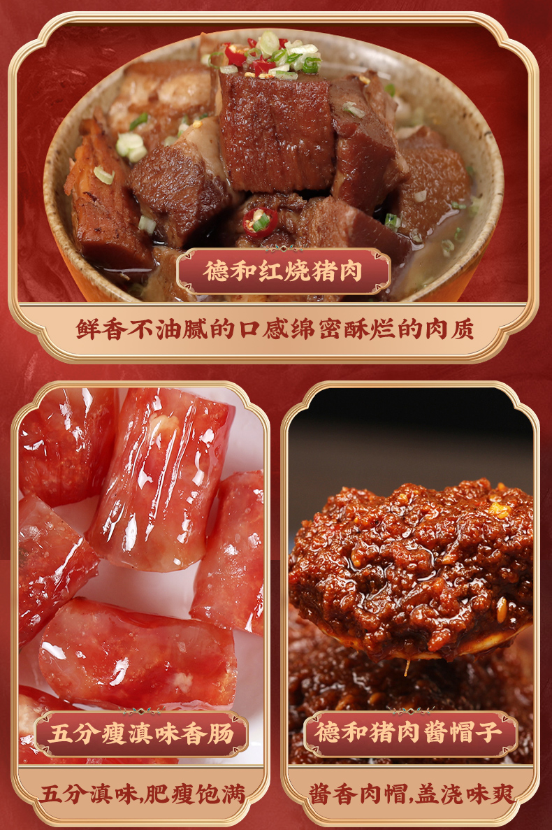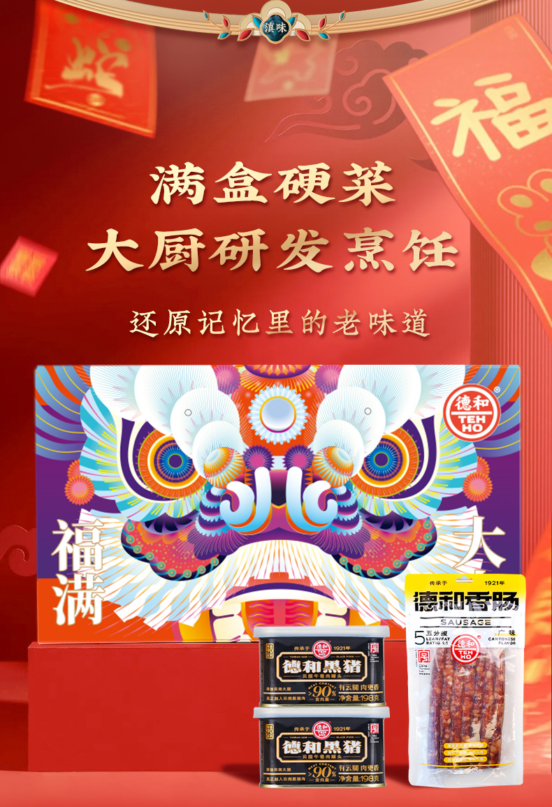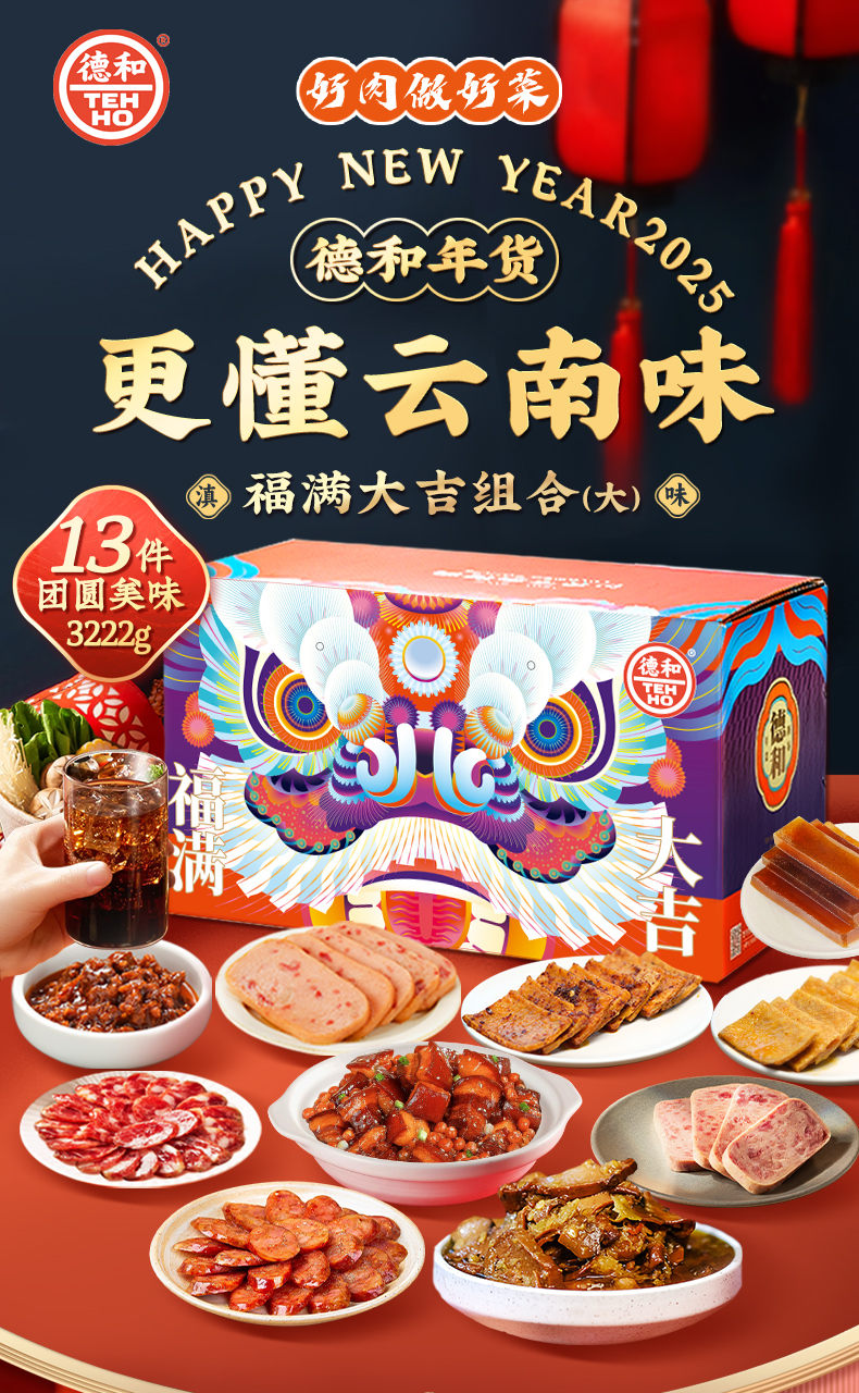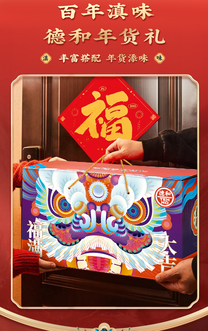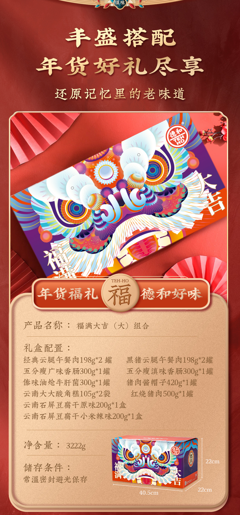 德和礼包福满大吉大礼包 8荤5素 团圆饭年货大礼包午餐肉腊肠米线零食 年货礼盒#礼包