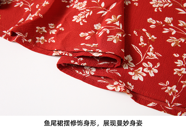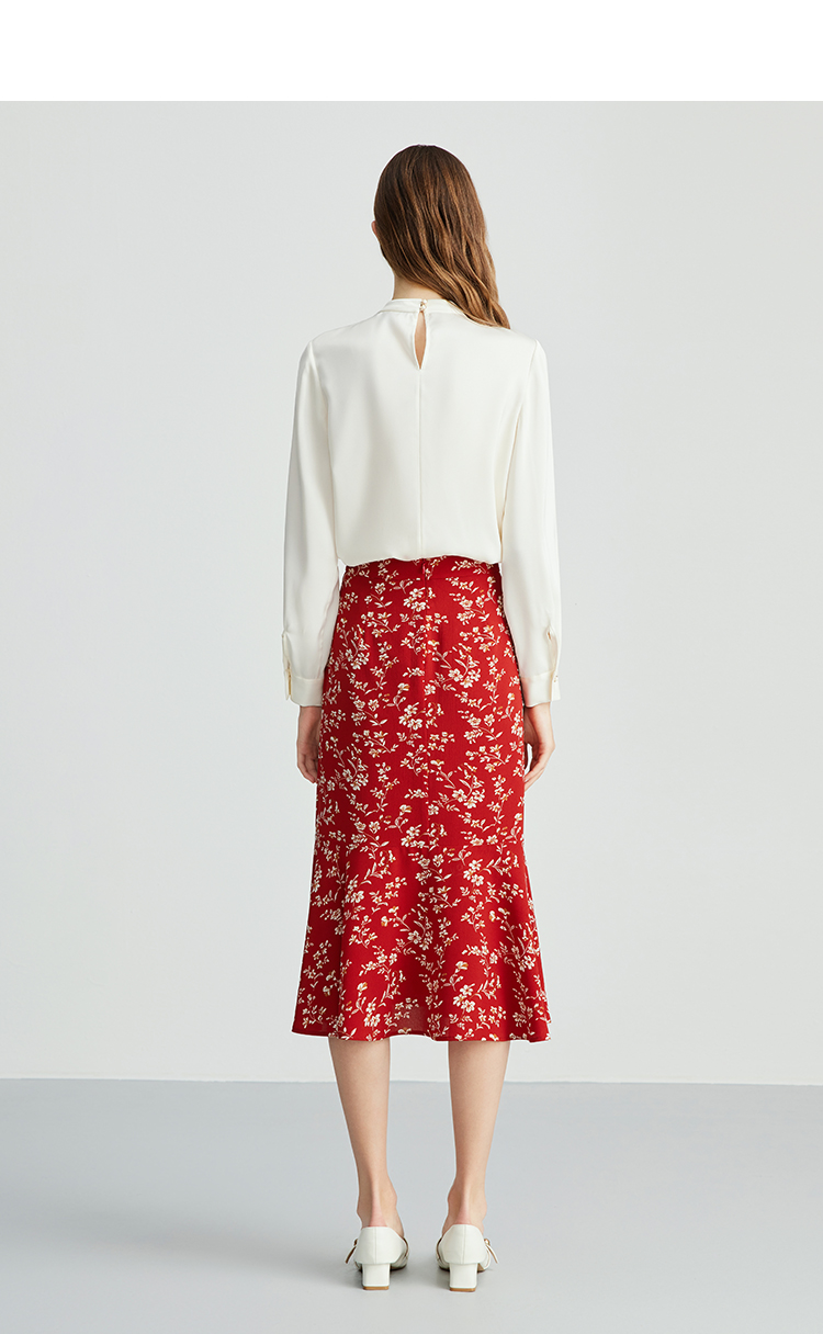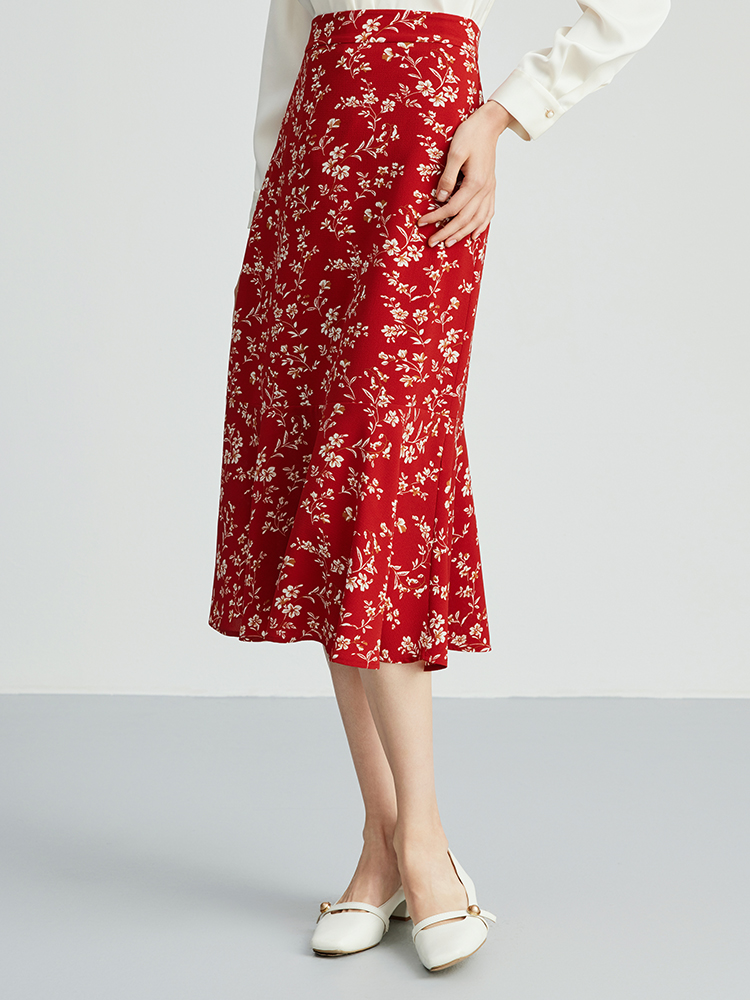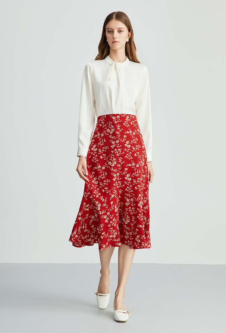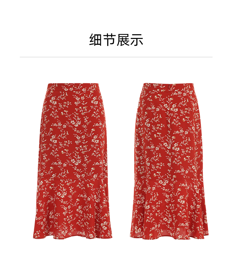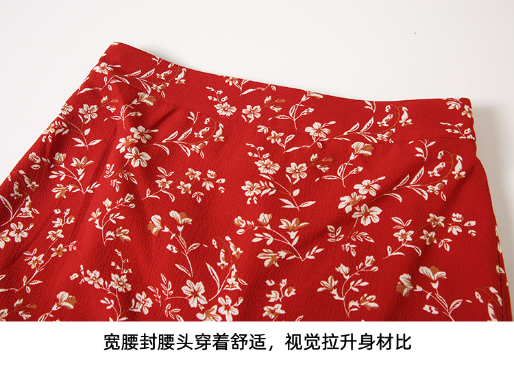 EITIE爱特爱秋季新款时尚高腰a字显瘦红色印花复古法式通勤半身裙C2406410