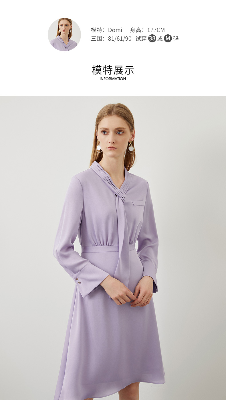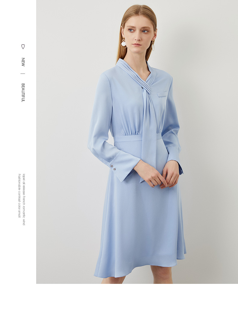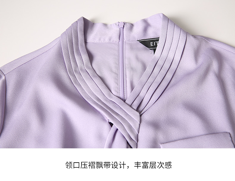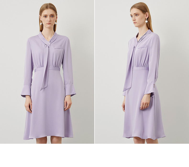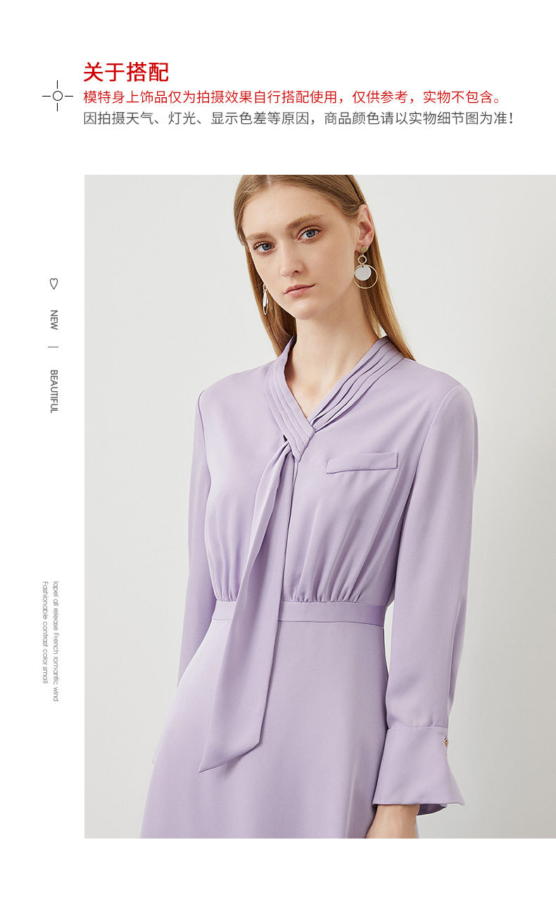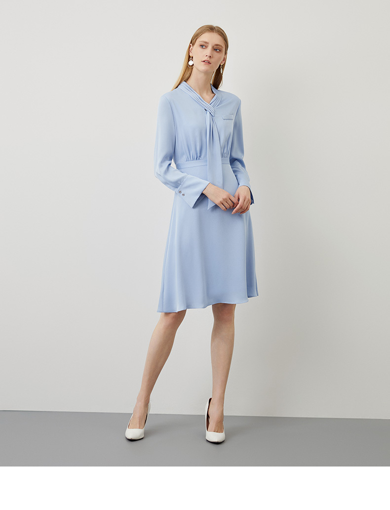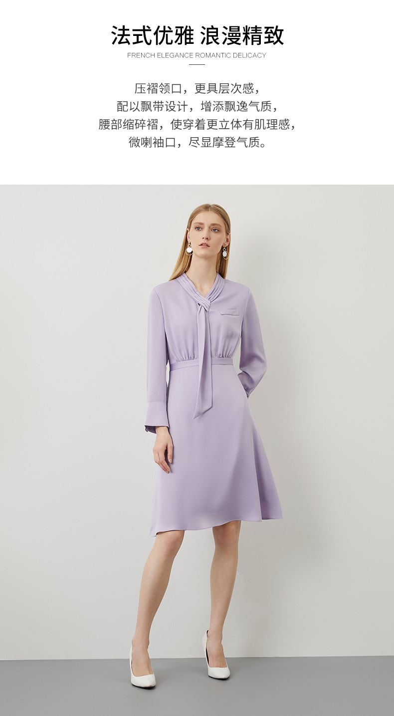 EITIE爱特爱秋冬新款气质飘带收腰显瘦A字中袖连衣裙6707402