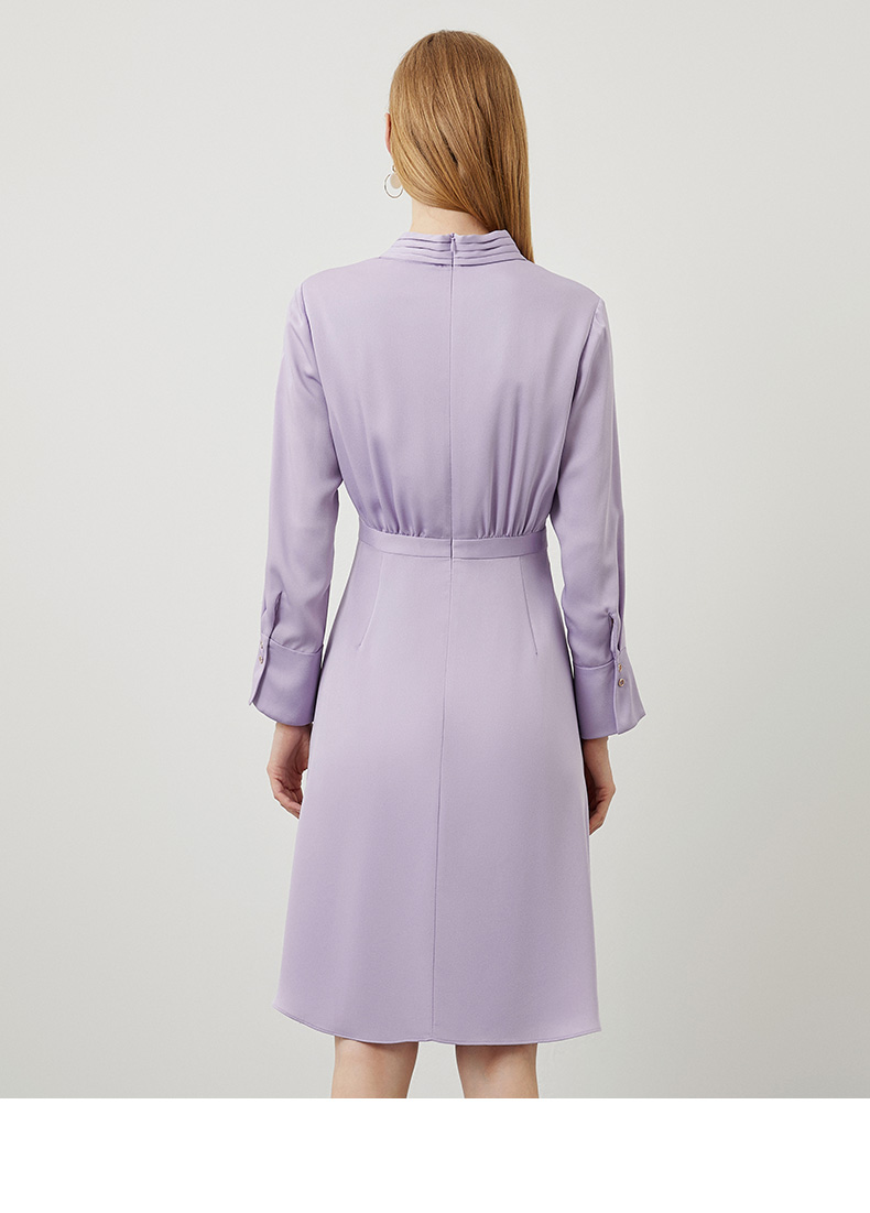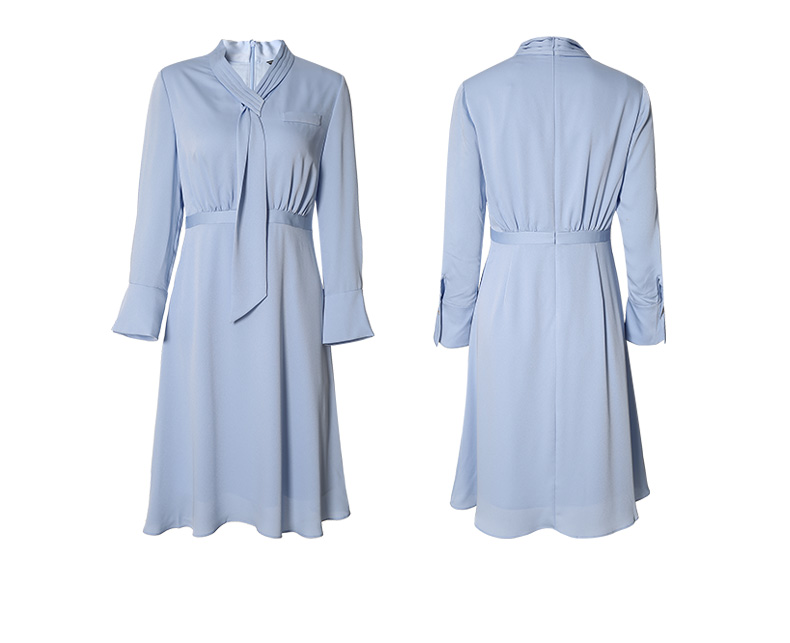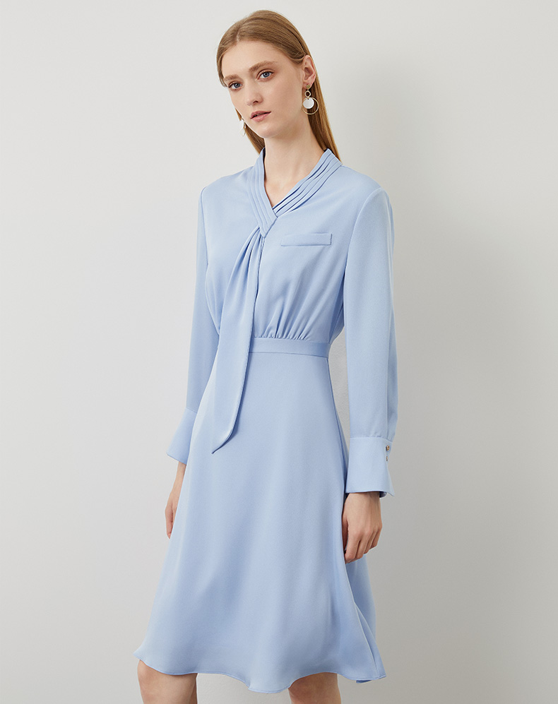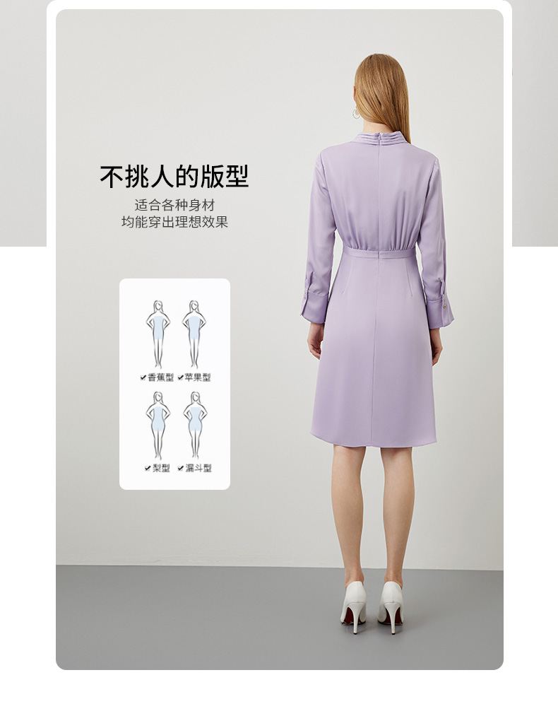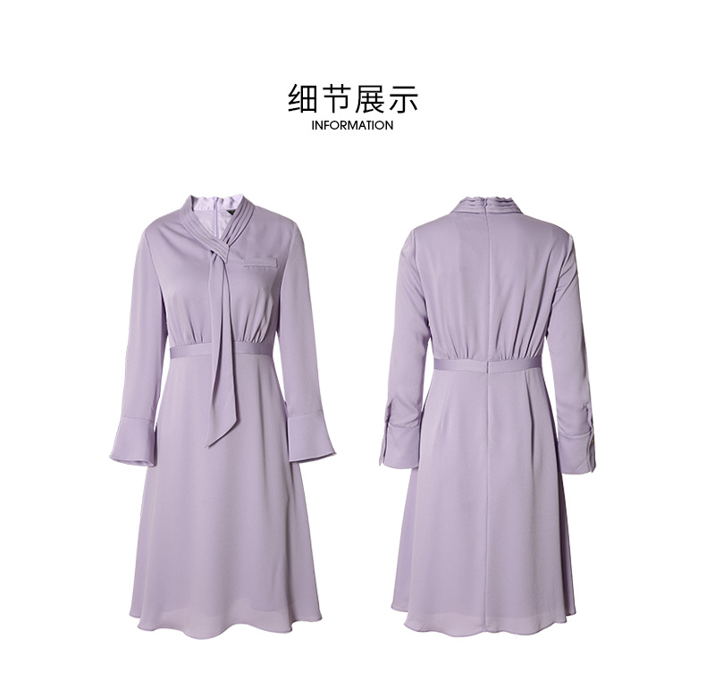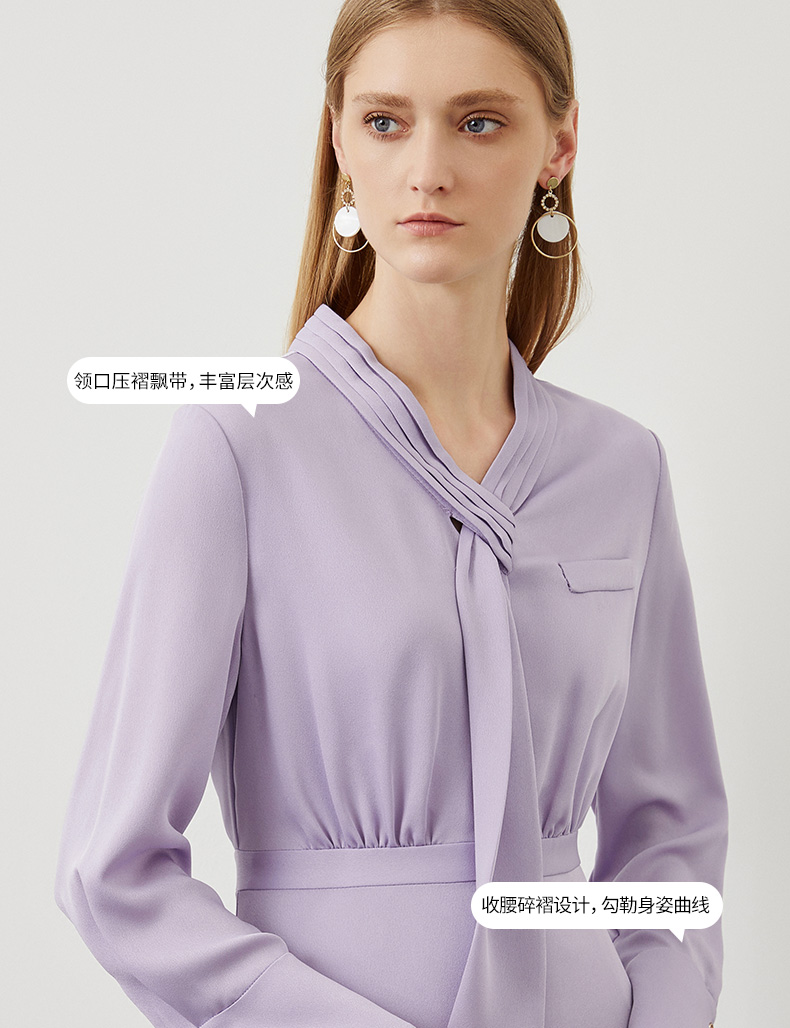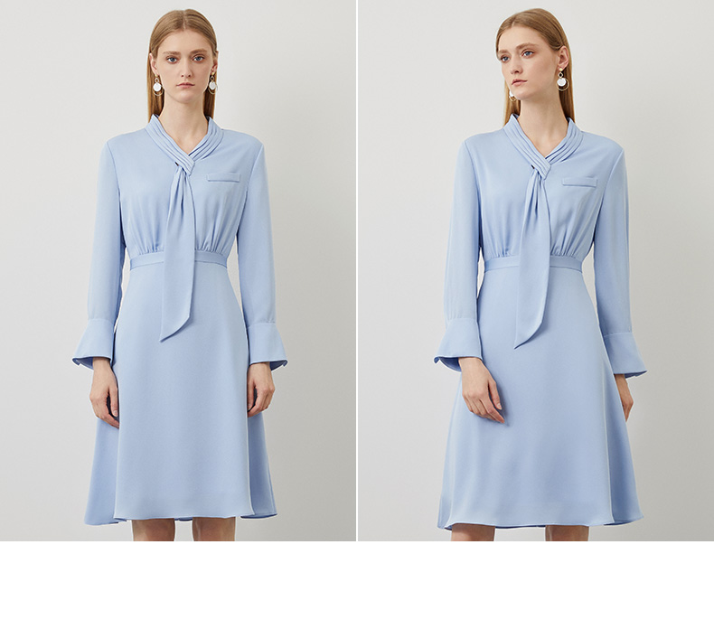 EITIE爱特爱秋冬新款气质飘带收腰显瘦A字中袖连衣裙6707402