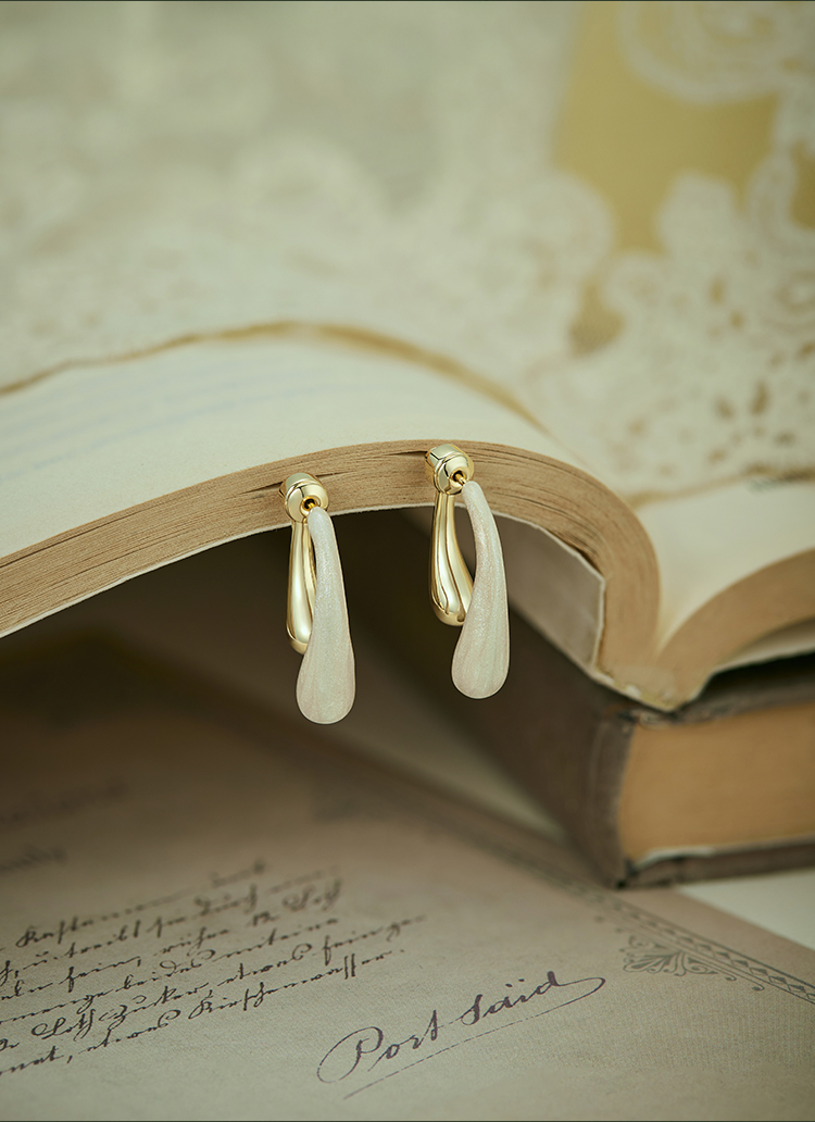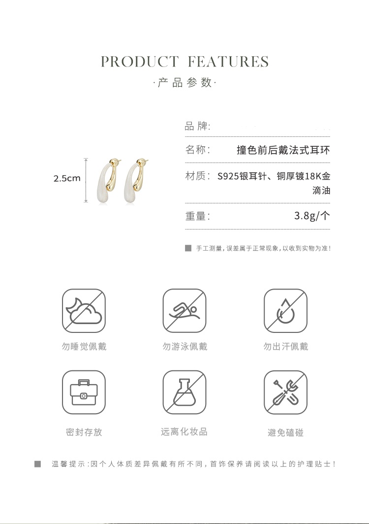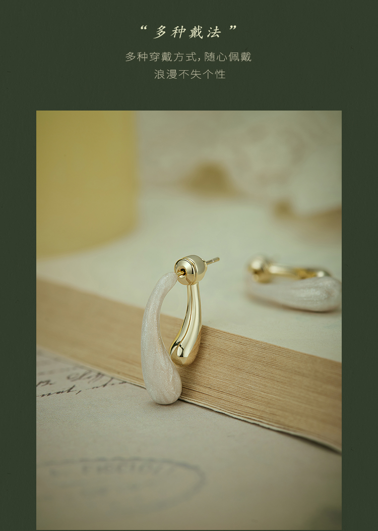 Oflye潮流饰品 撞色水滴法式耳环女新款小众独特耳钉气质耳饰女