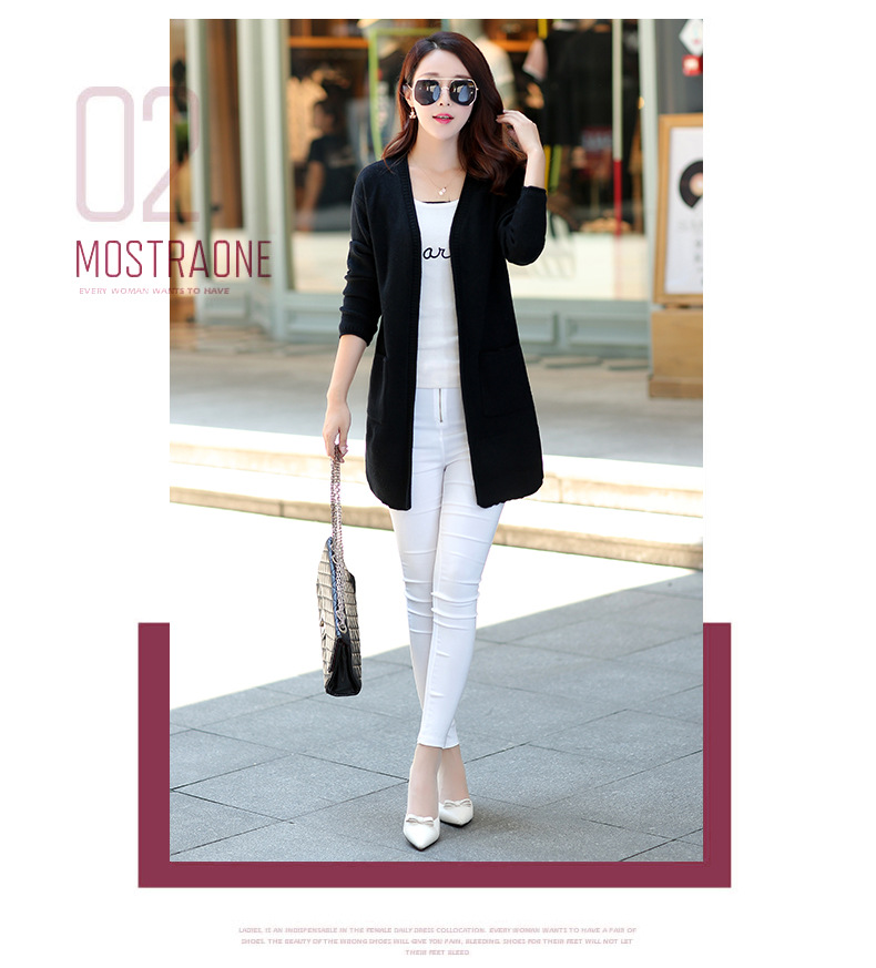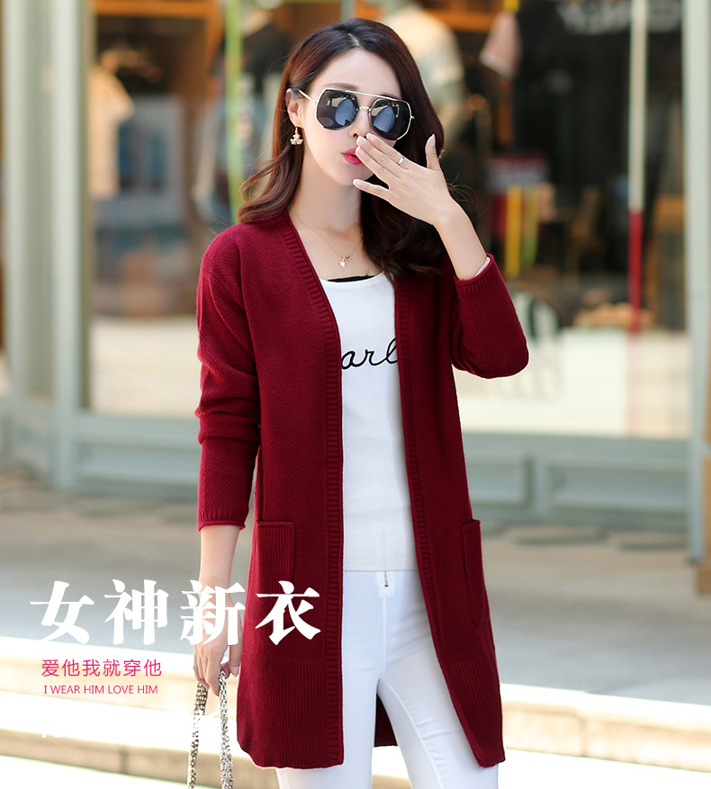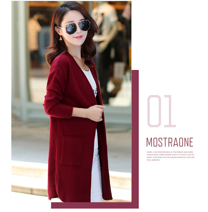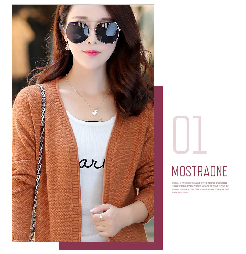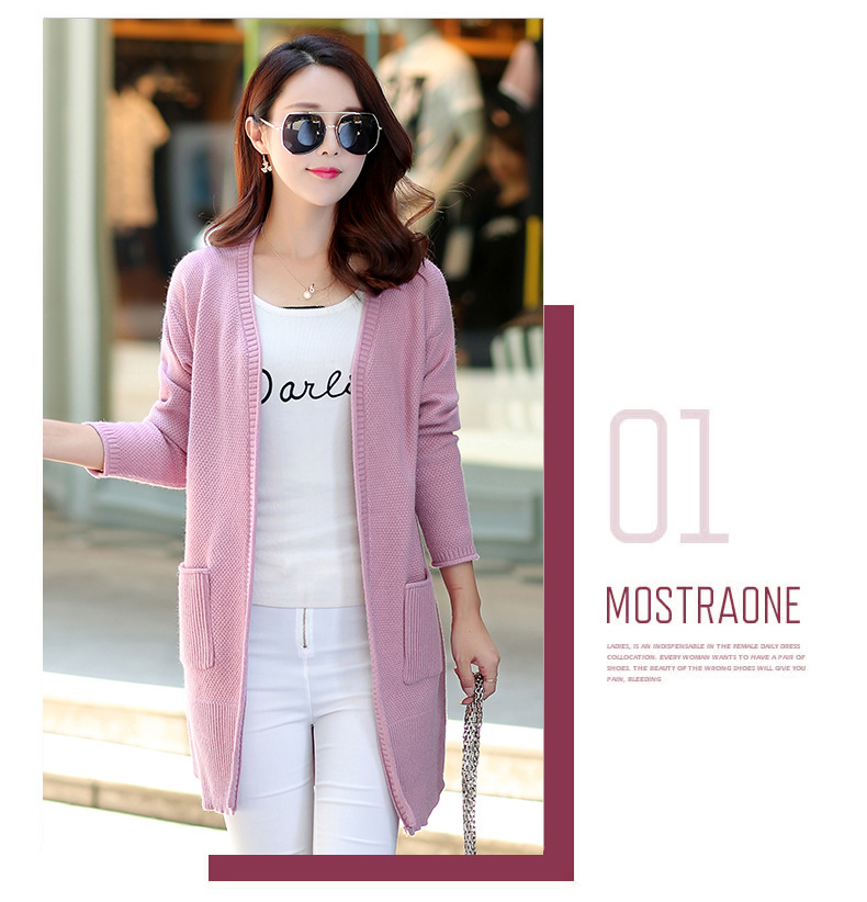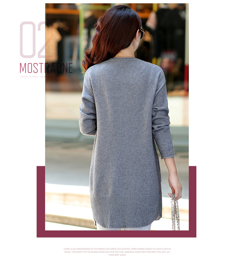 LL-181004秋季新款韩版中长款纯色宽松毛衣外套