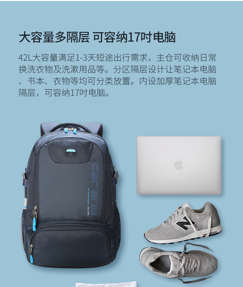 【商超同款】卡拉羊42L超大超轻17吋电脑背包通勤出差背包CX5566
