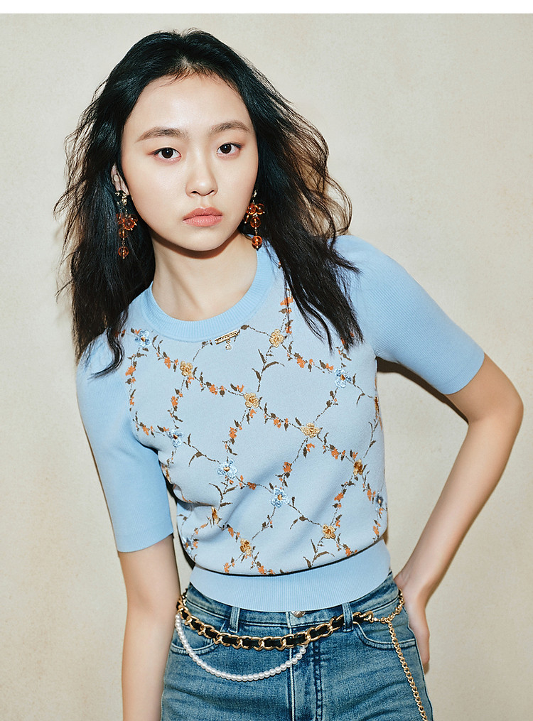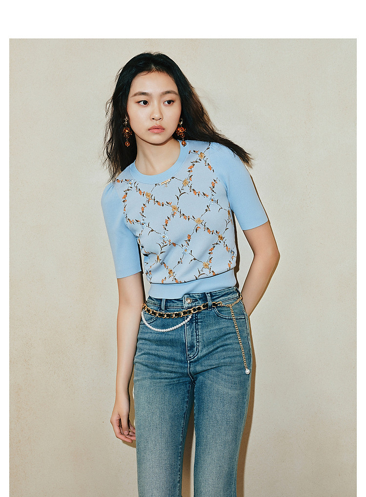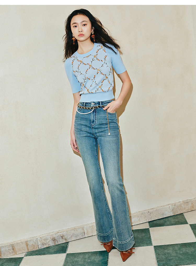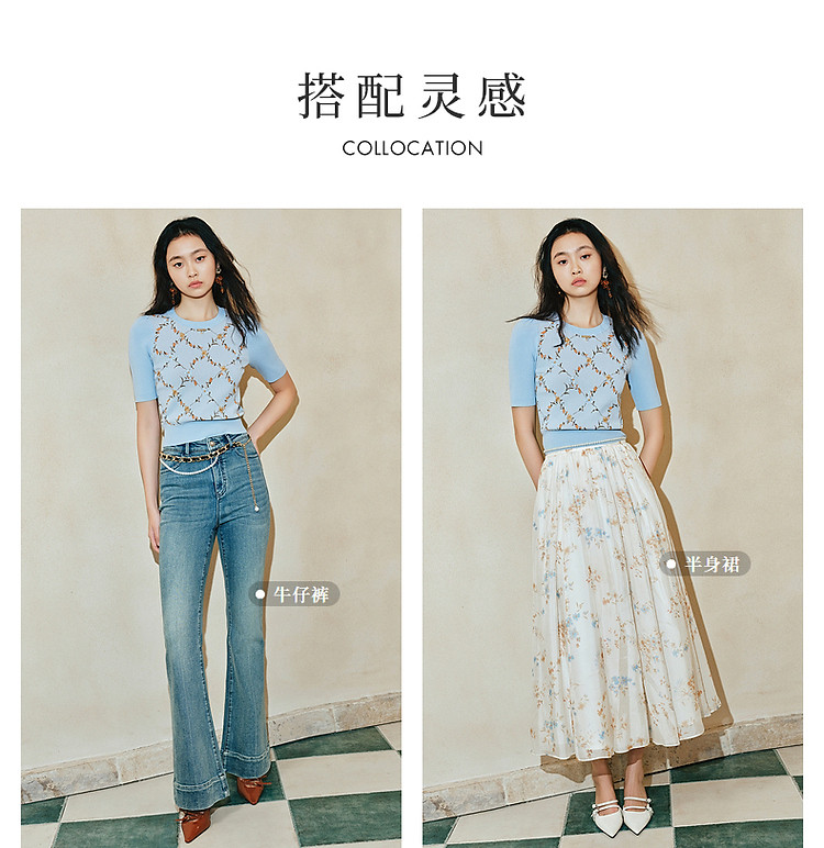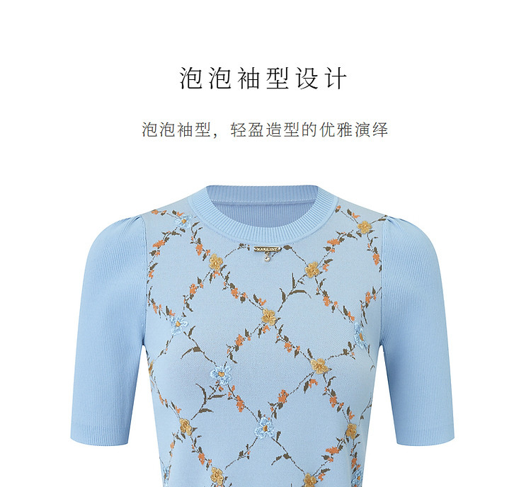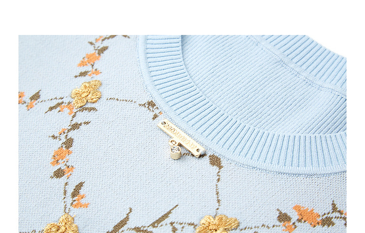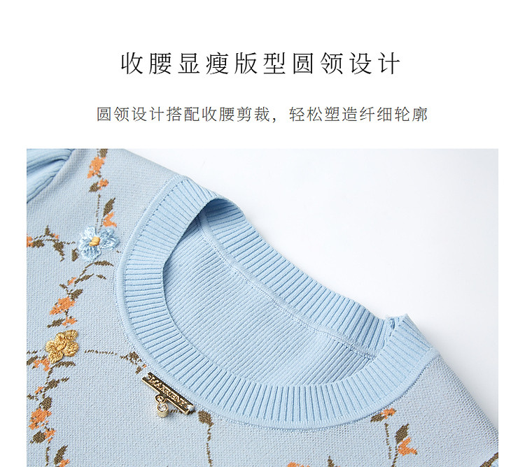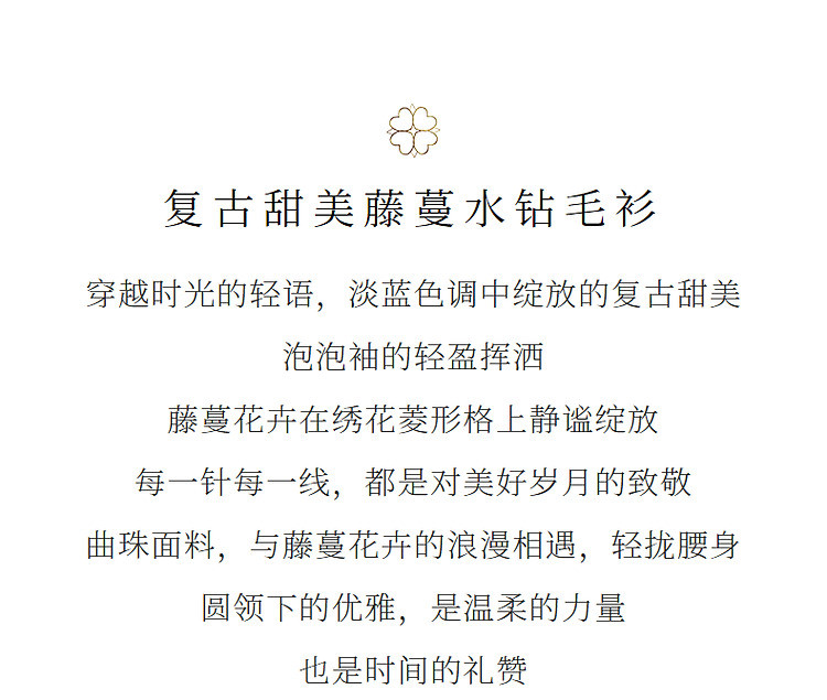 甜美复古感藤蔓菱形格水钻套头毛衫女(货号:MC85SW024B2001)
