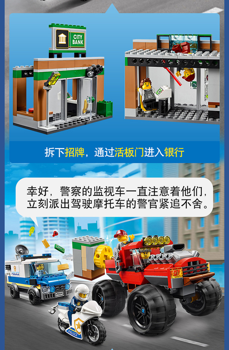 乐高LEGO 城市系列60245 巨轮越野车大劫案拼搭积木玩具