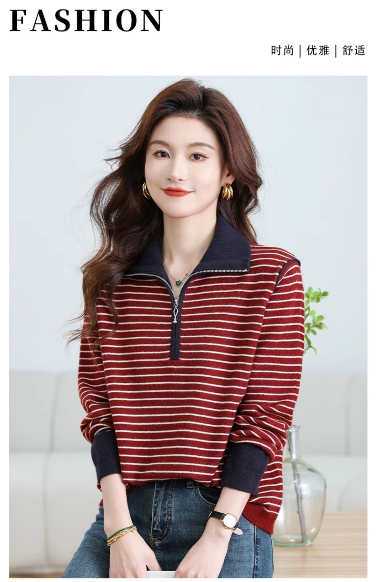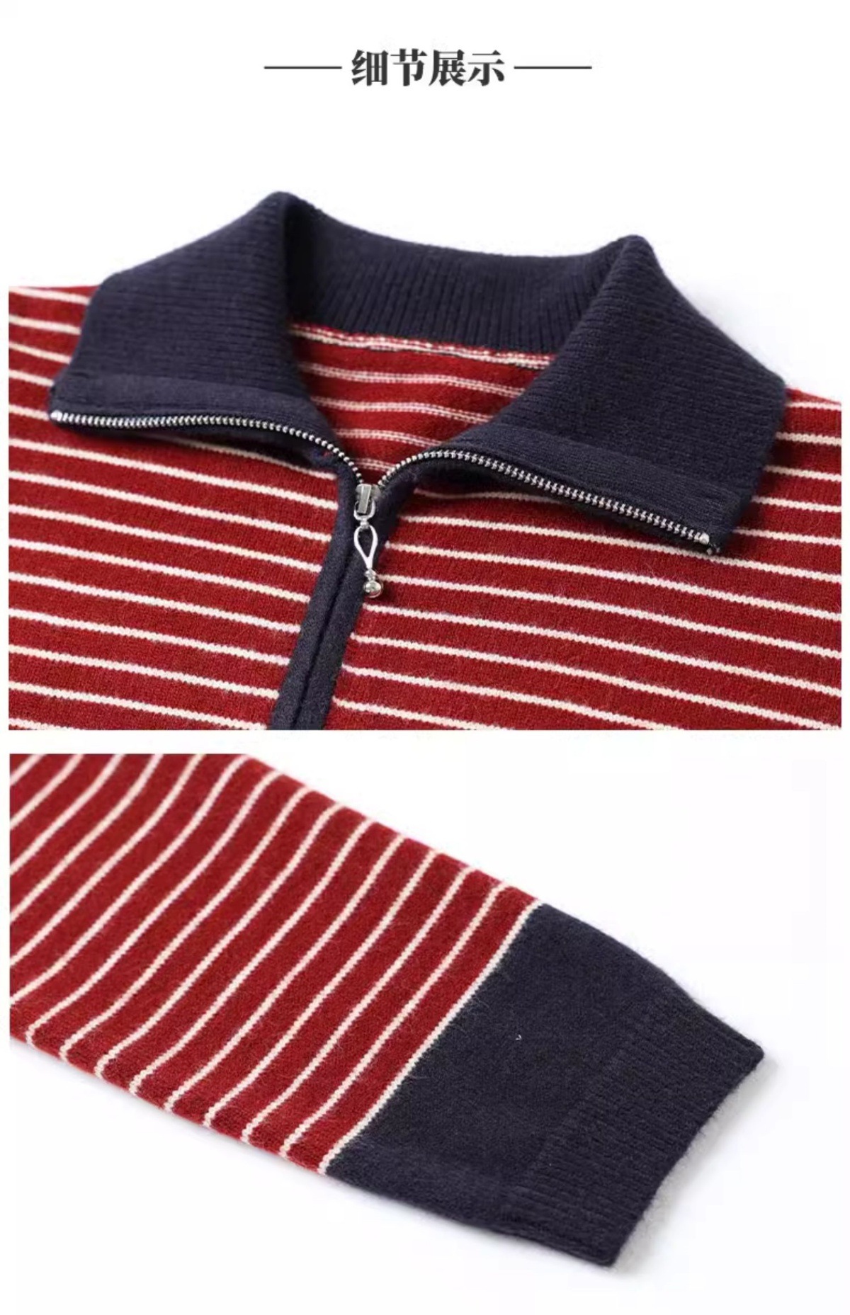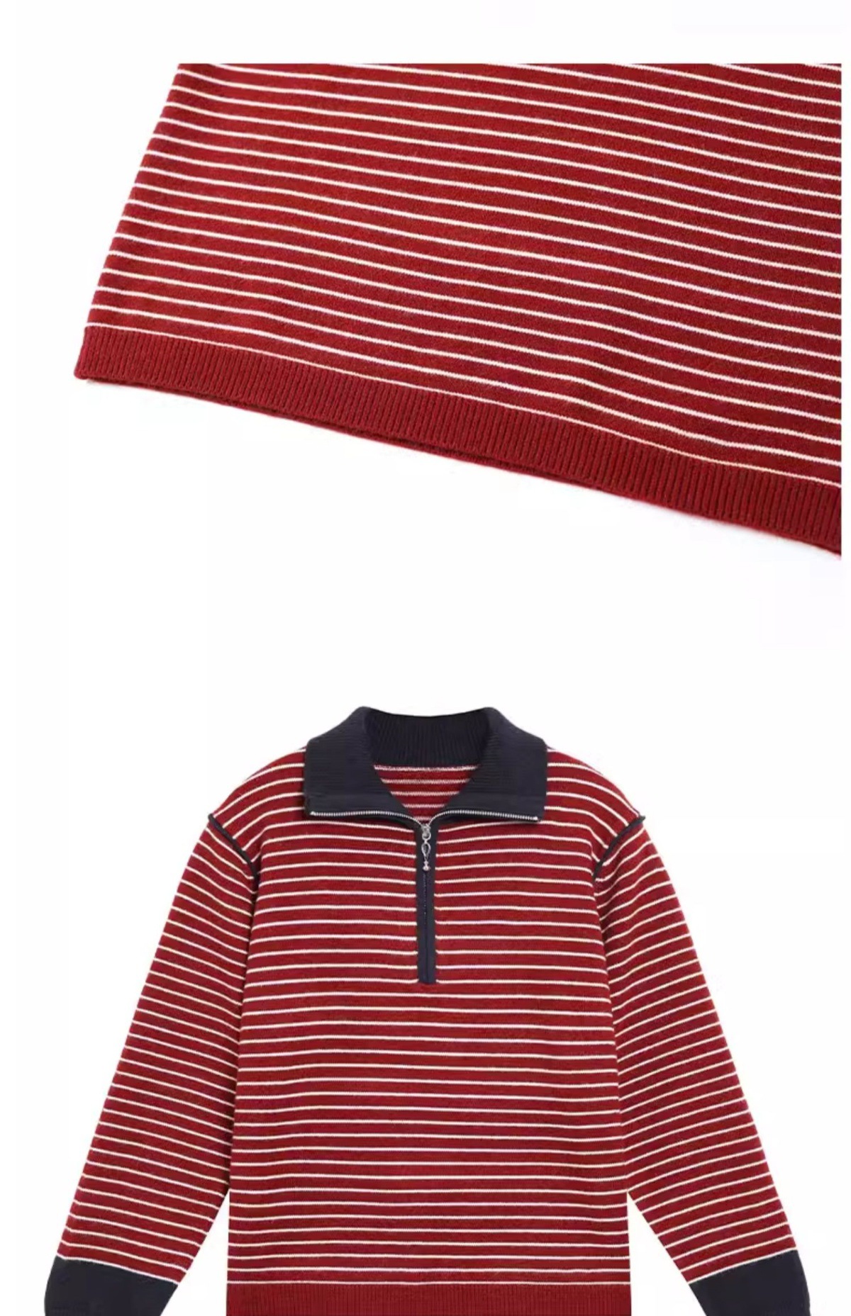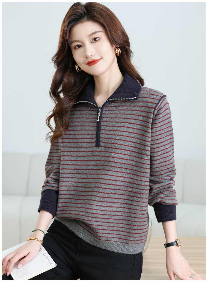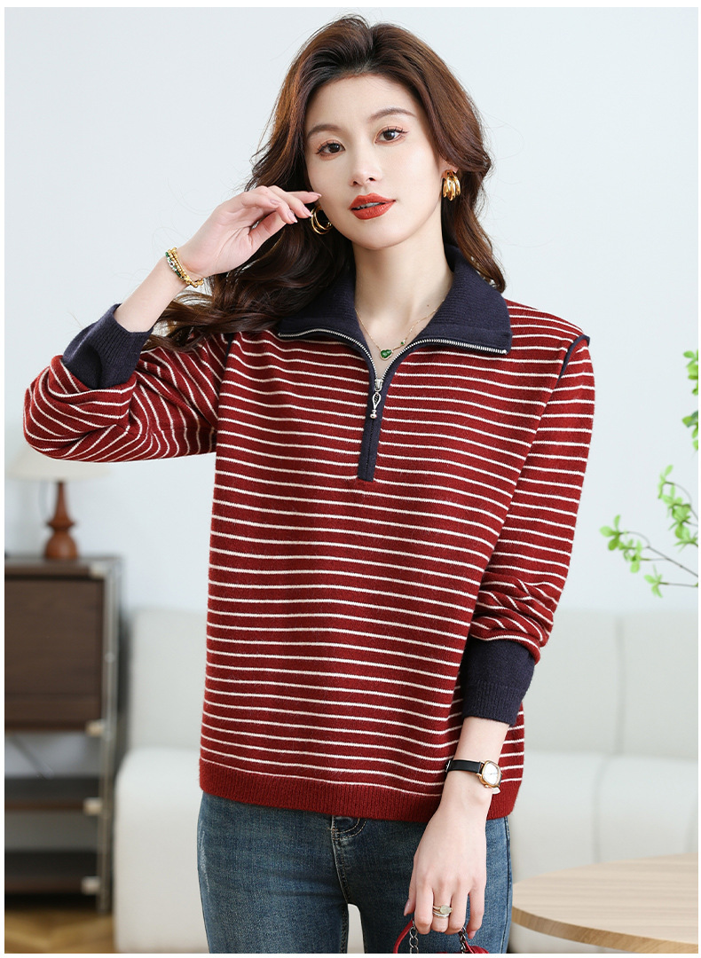 CC-17-6765小个子半拉链立领毛衣女士2024新款秋冬季洋气条纹显瘦厚款打底衫