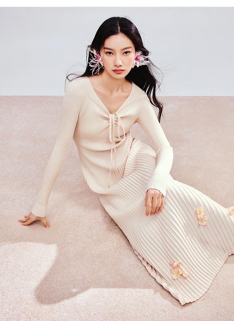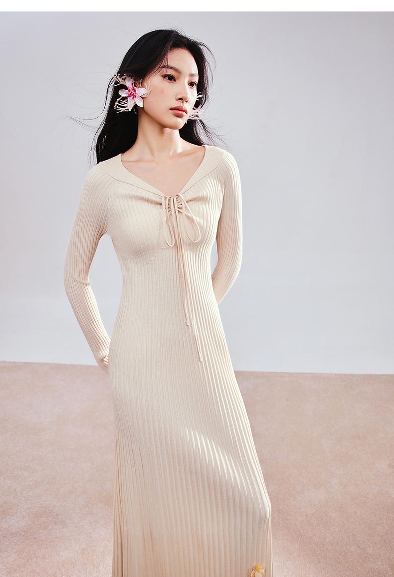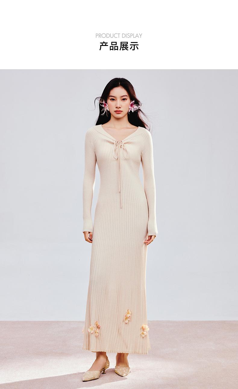 MAXRIENY精致优雅感毛针织连衣裙2025年秋季新款温柔风长裙(货号:MS85DR778)