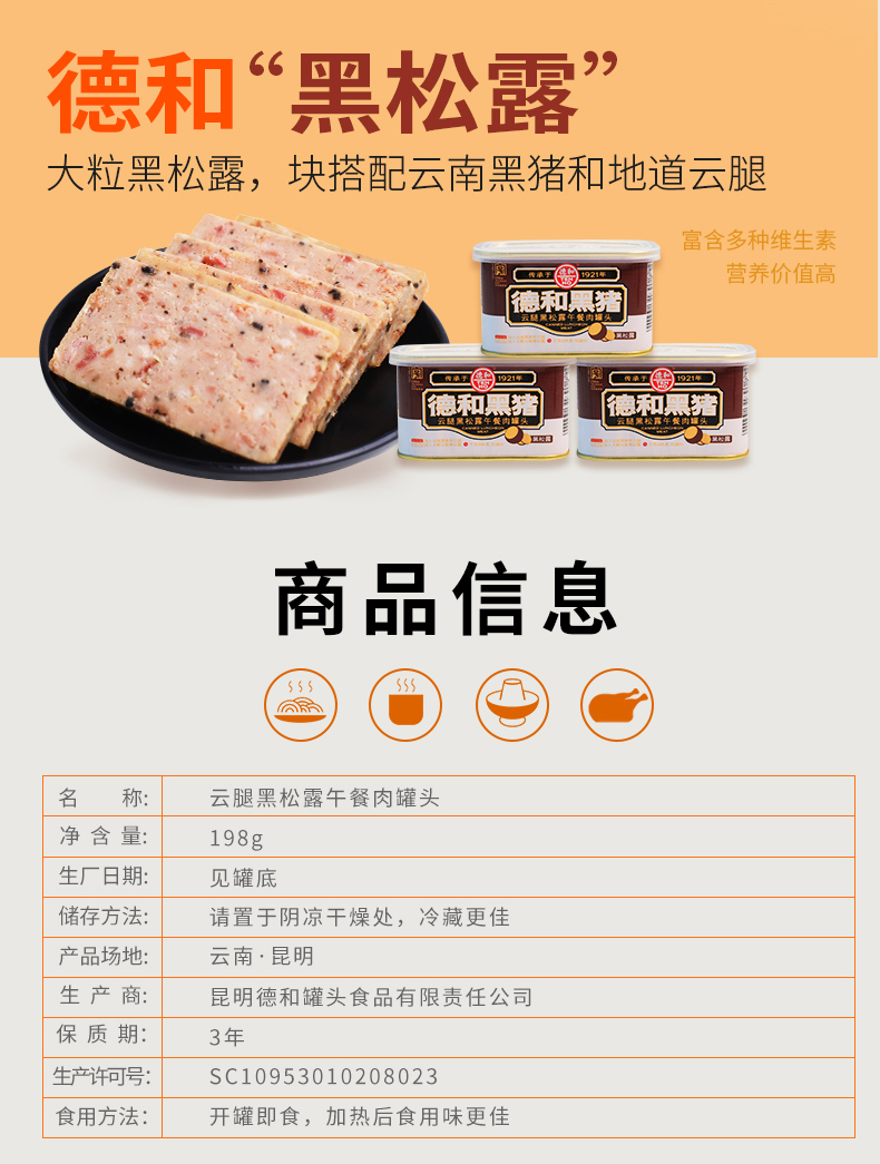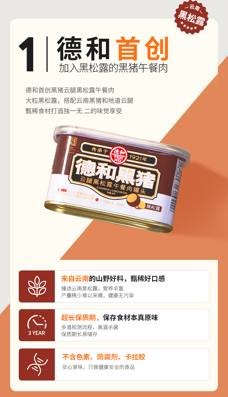 云南德和黑猪 云腿黑松露午餐肉罐头