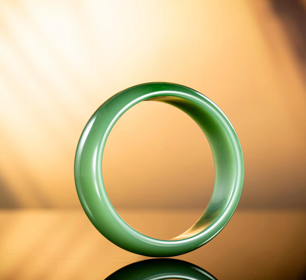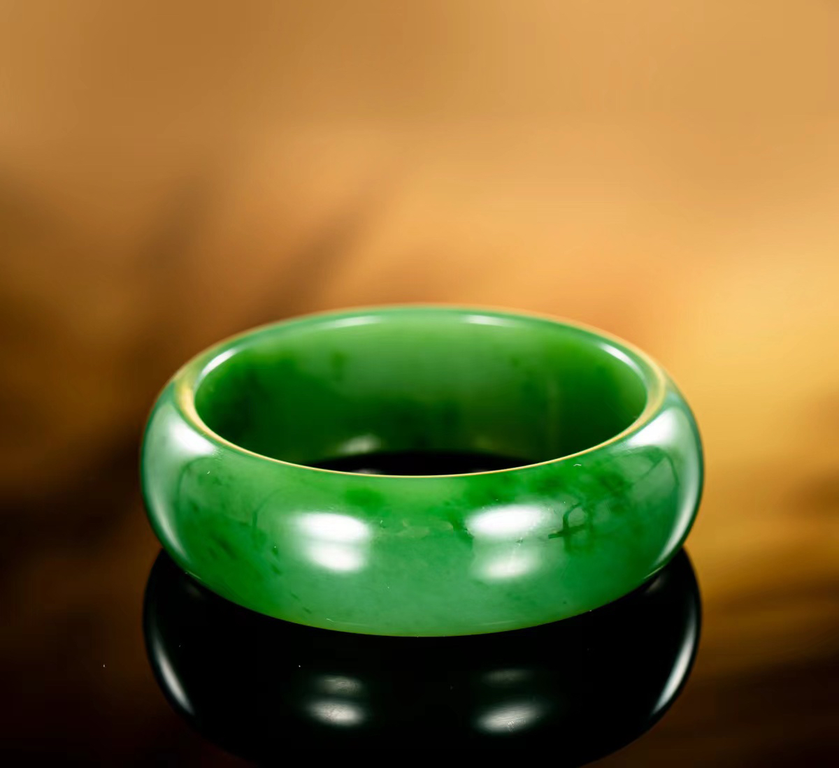 和田玉(碧玉)手镯--7号坑宽版平安镯/58#