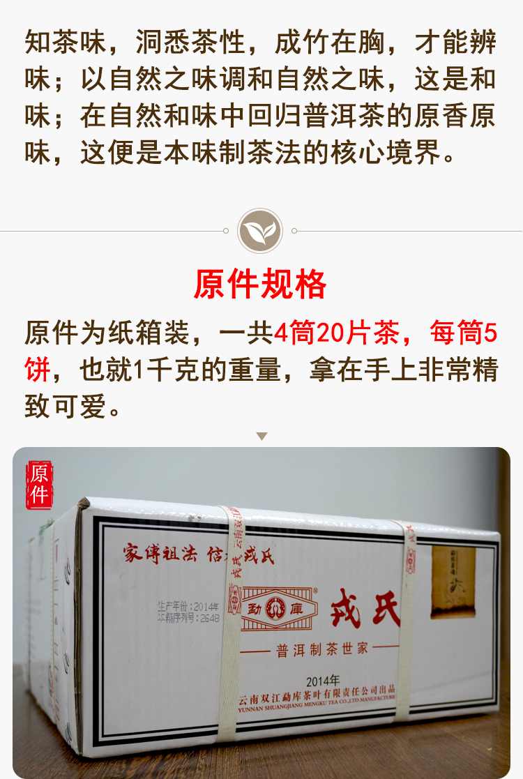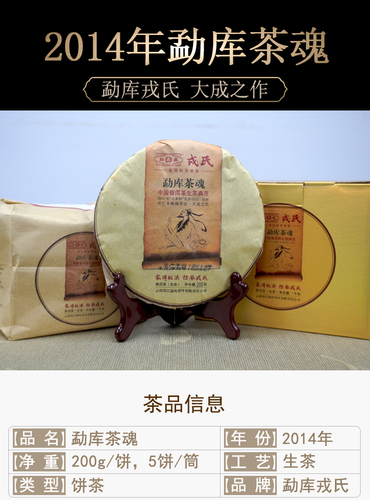 2014年勐库戎氏本味大成茶魂系列经典普洱茶生茶 一片200克一提5片 单片标价