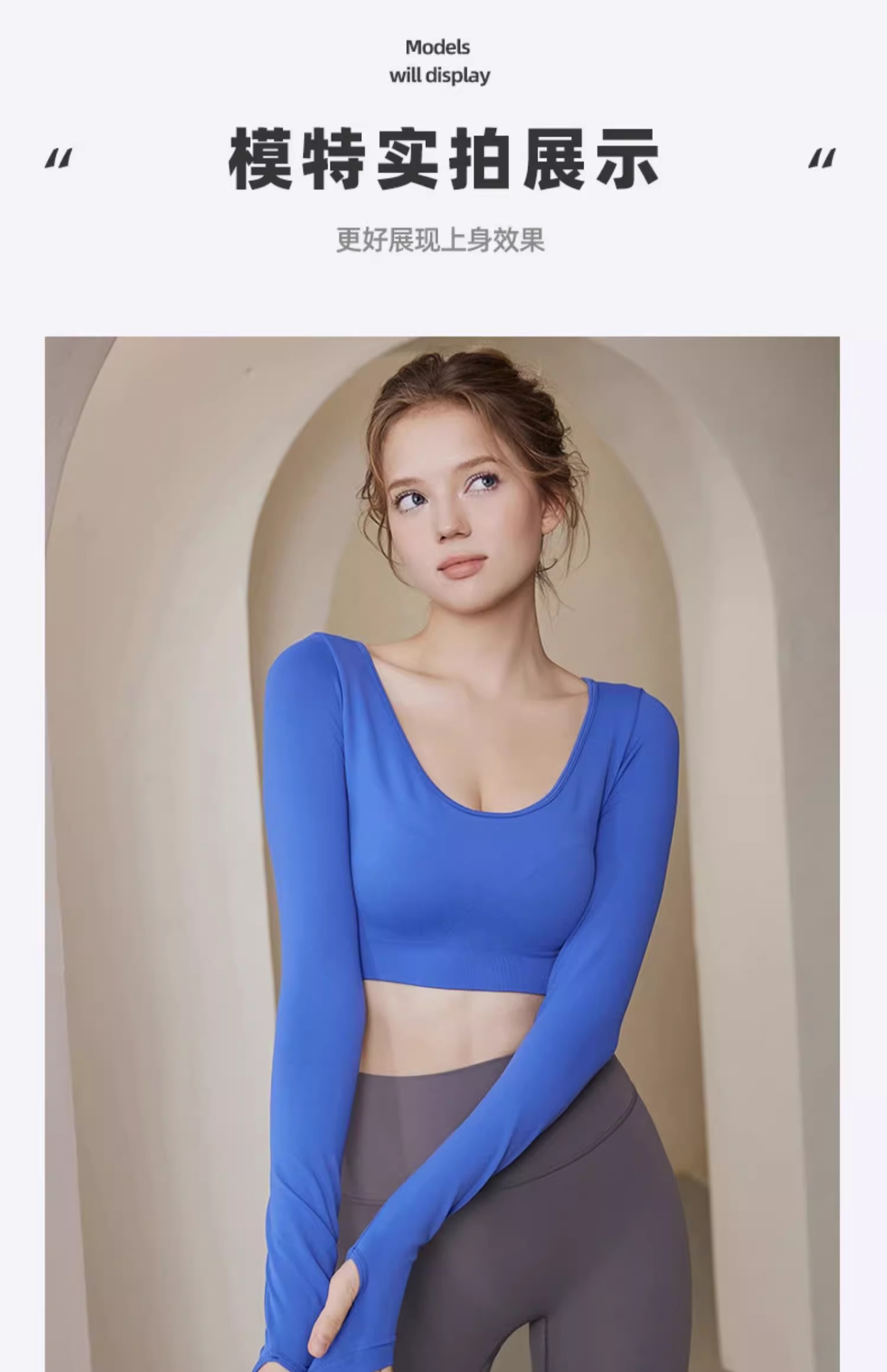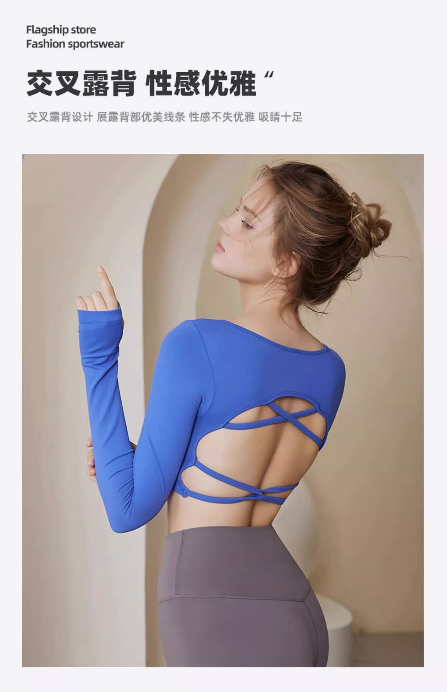 跃牌【化蝶双飞】系列 裸感跑步普拉提显瘦运动上衣长袖 MS1065(带胸垫)