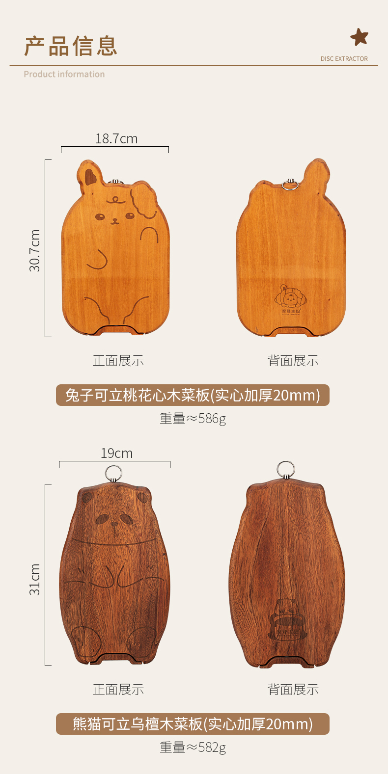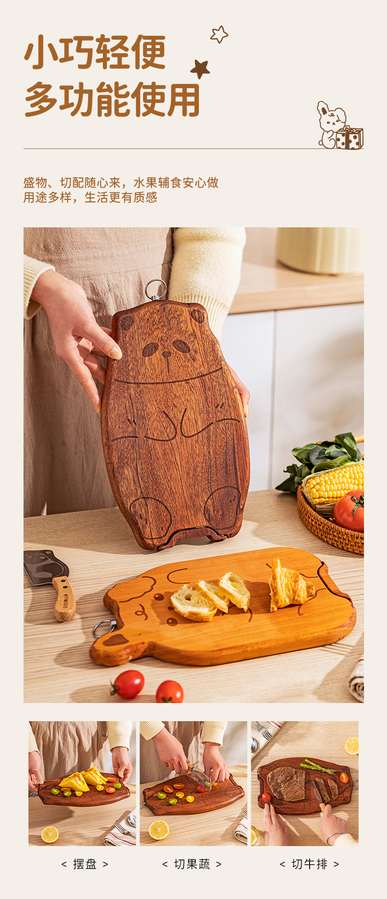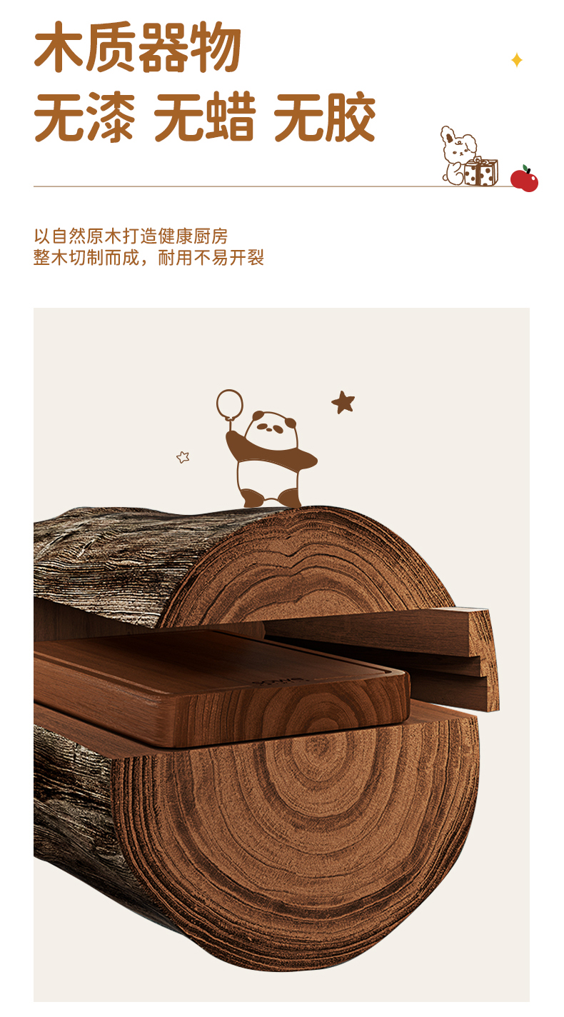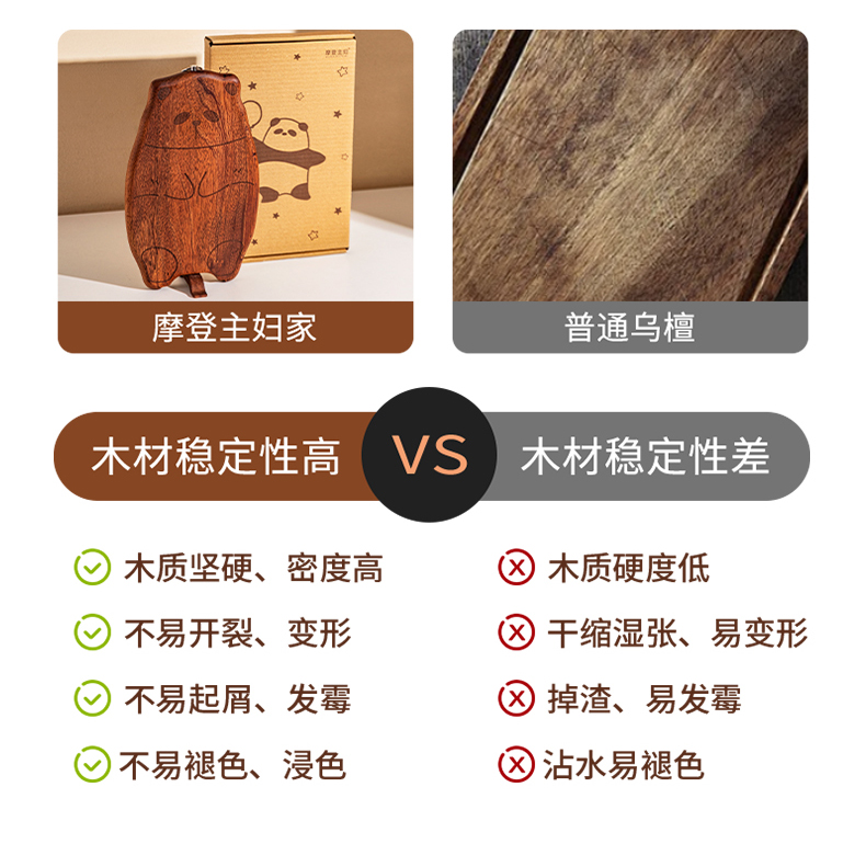 摩登主妇mototo熊猫乌檀木菜板防霉抗菌家用实木切菜水果砧板案板