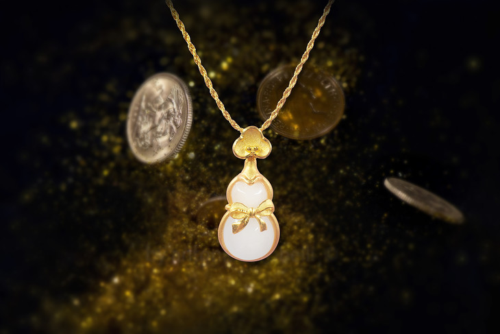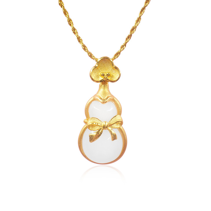 足金镶嵌和田玉(白玉)葫芦吊坠