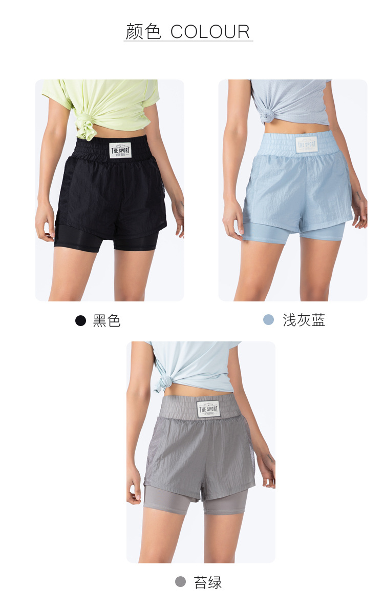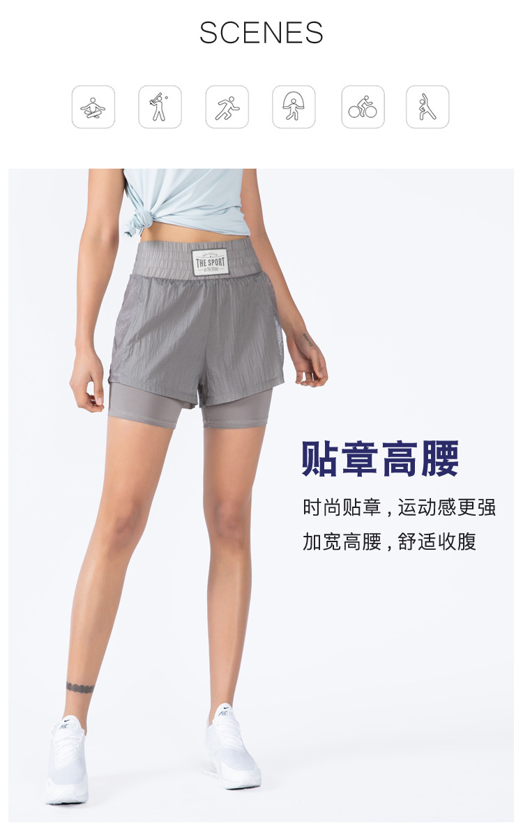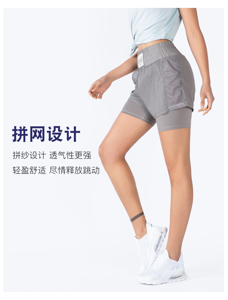 跃牌【明丽逸动】系列 高腰收腹假两件运动短裤女夏瑜伽训练跑步防走光速干透气健身热裤AL7977