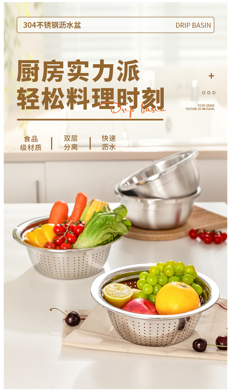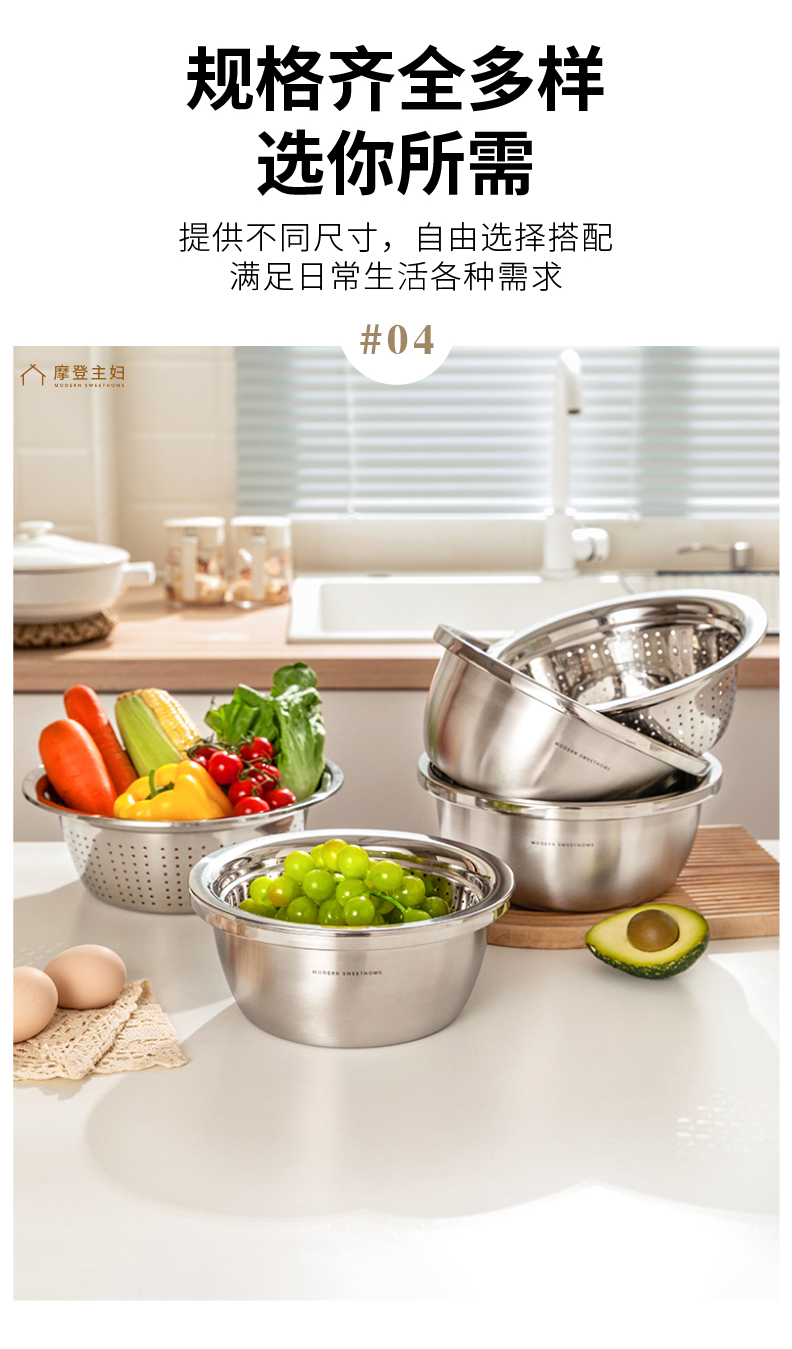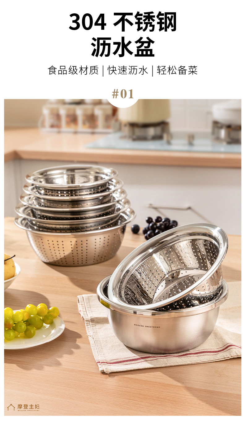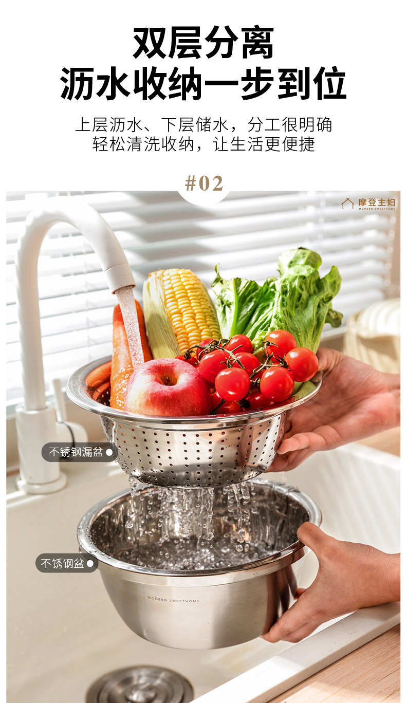 摩登主妇洗菜盆沥水篮304不锈钢盆新款水果篮淘米神器洗菜滤水篮