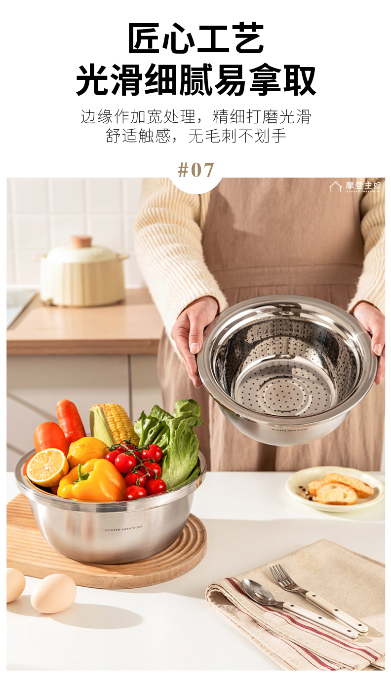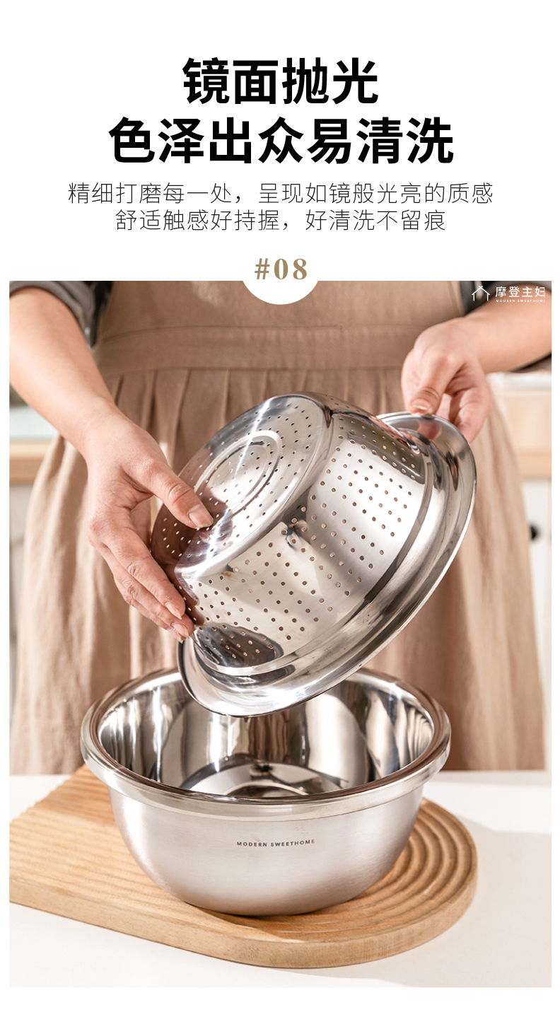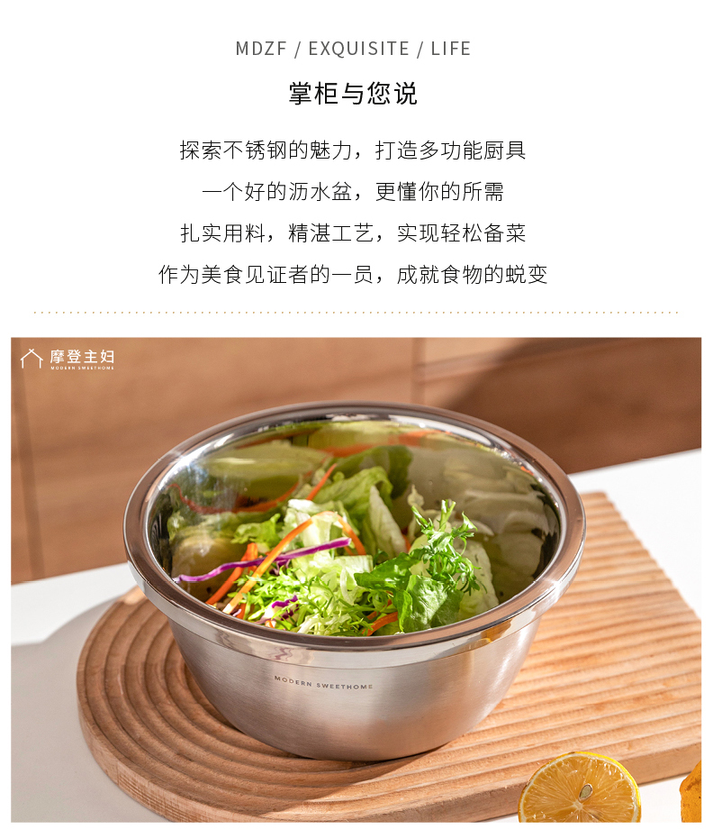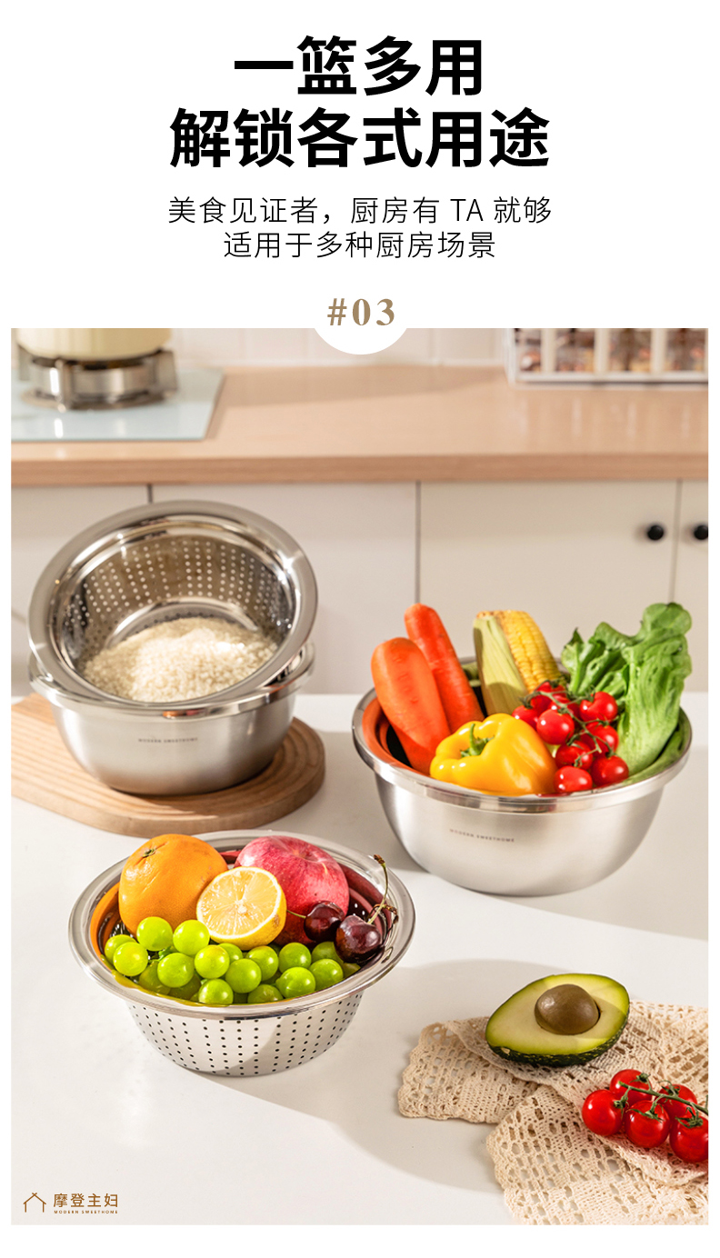 摩登主妇洗菜盆沥水篮304不锈钢盆新款水果篮淘米神器洗菜滤水篮