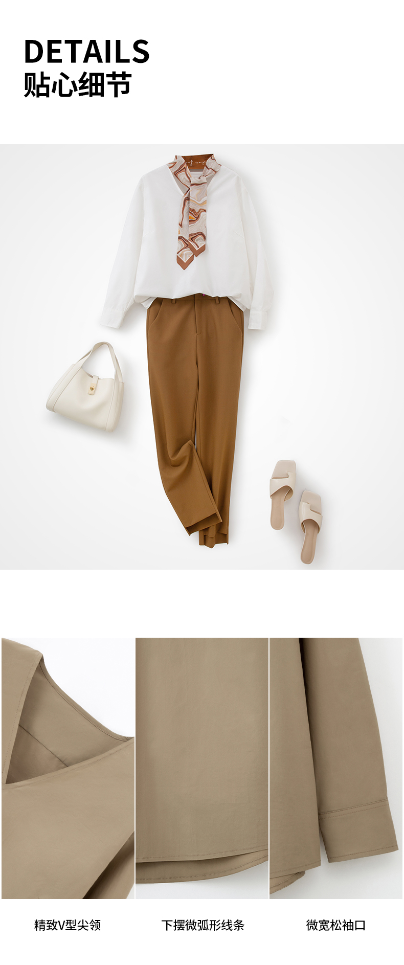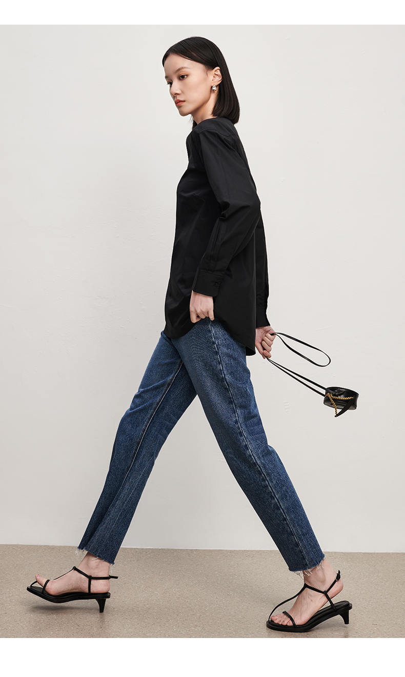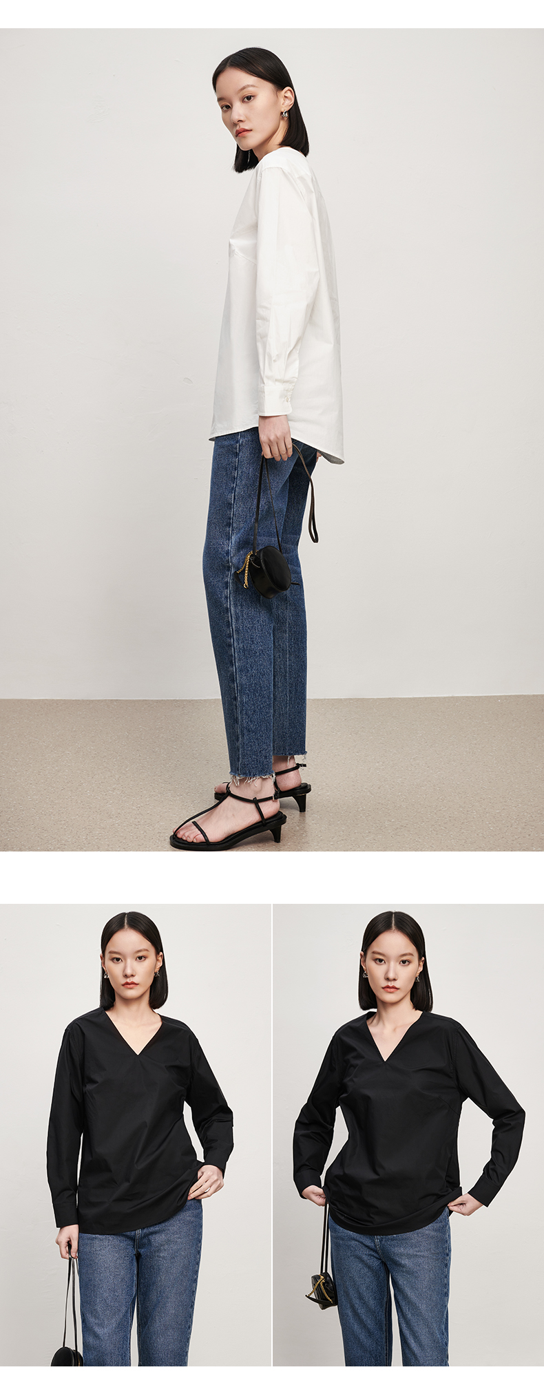 IN AND ON 春秋新款衬衫女纯棉纯色简约质感百搭宽松V领上衣