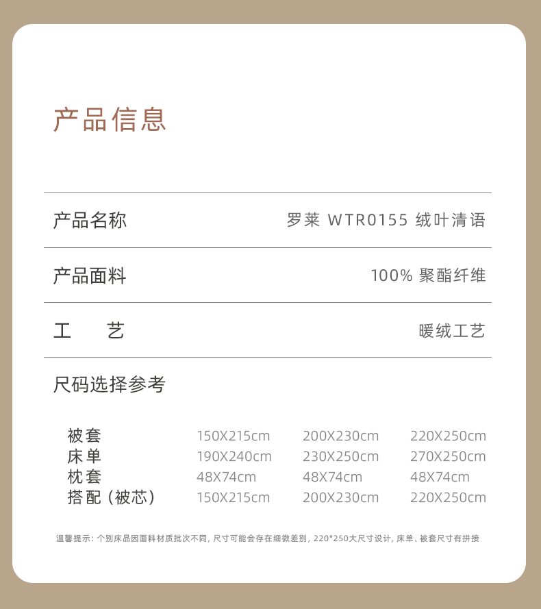 罗莱智家绒叶清语慕斯绒套(WTR0155-3)