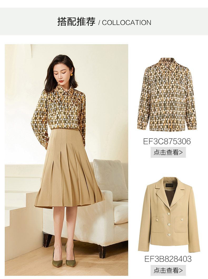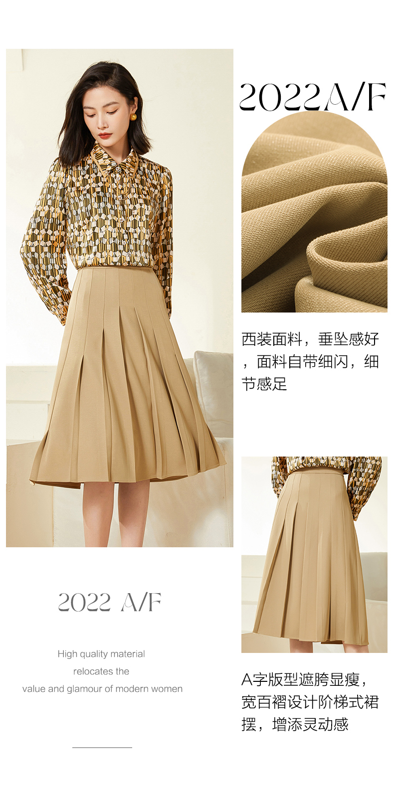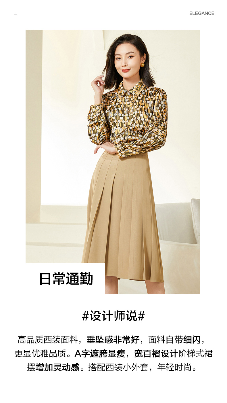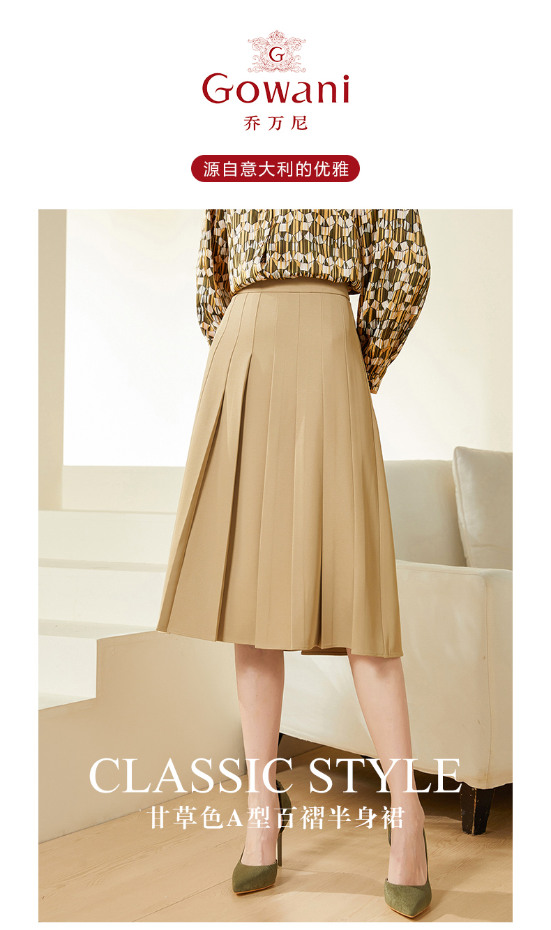 乔万尼半身裙女新款高腰卡其色御姐轻熟风显瘦半裙EF3D887