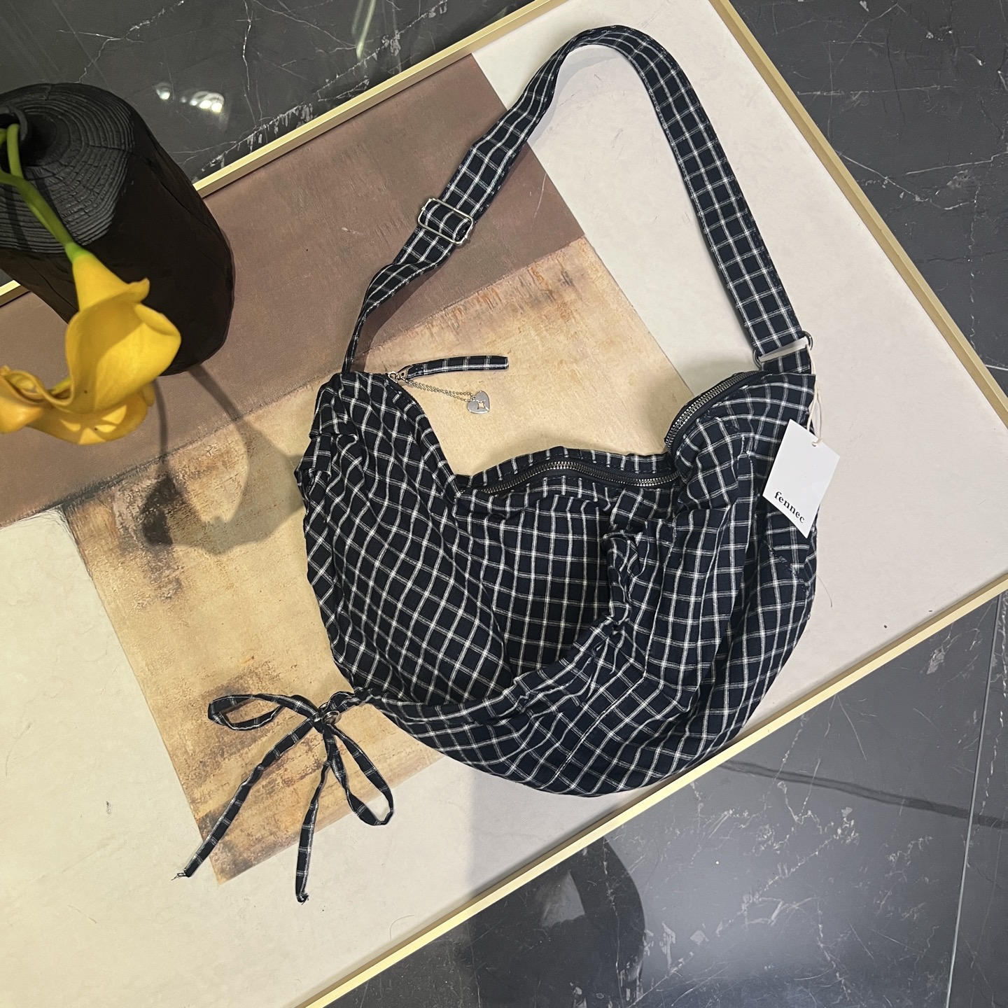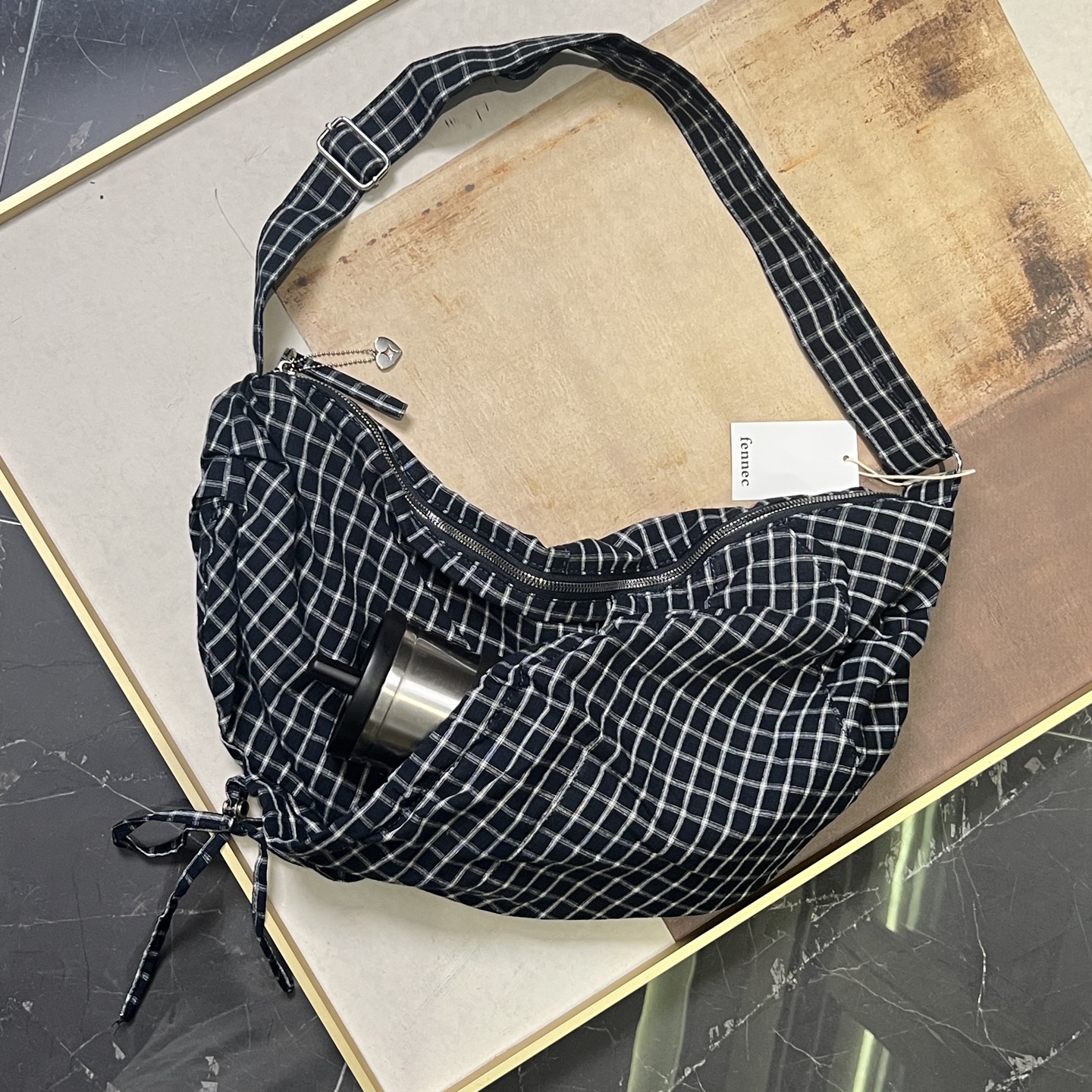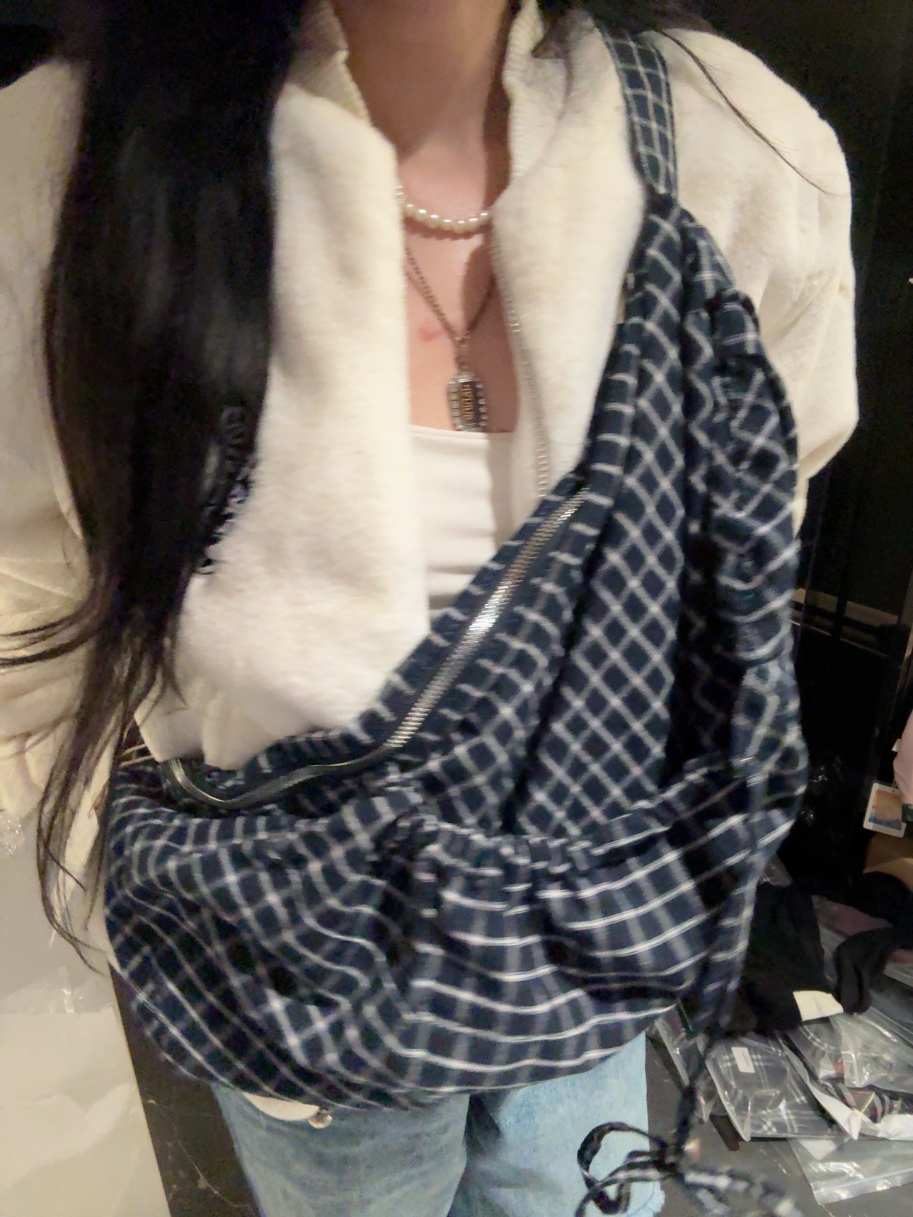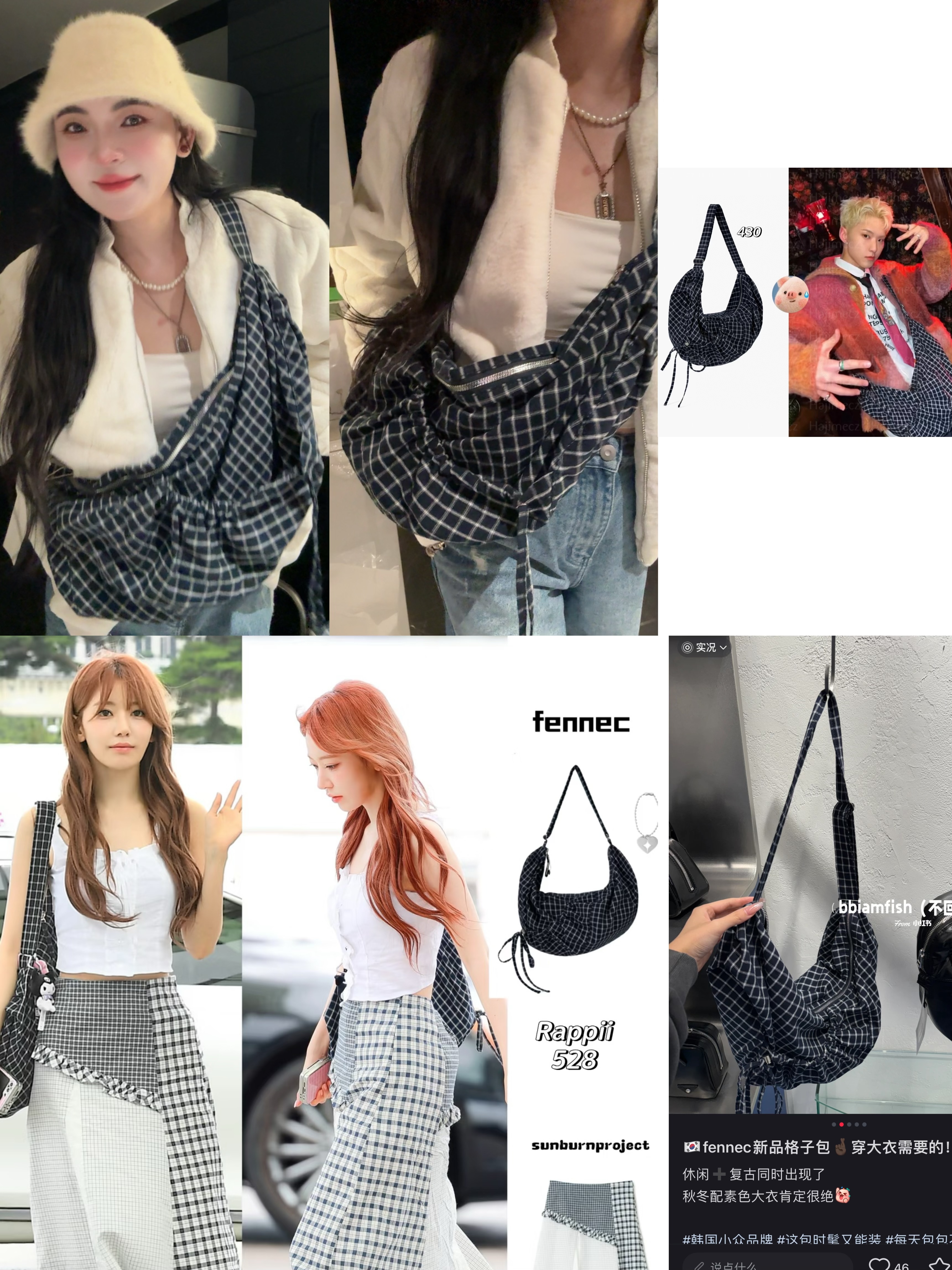 小白菜🥬好物分享!💯ZP‼️韩国🇰🇷发售价发售价 98000韩元🇰🇷 折合人名币¥528 左右!💫权顺荣同款fen&nec格纹包|小众感与实用性的双向奔赴 谁懂啊!次叔权顺荣同款的fen&nec格纹包也太戳我了😻 经典格纹自带复古滤镜,帆布材质软乎乎的,背起来随性又慵懒~ 细节控狂喜。金属爱心拉链配饰精致到骨子里,侧边抽绳设计可以自由调节包型,腋下、斜挎切换毫无压力~大容量内里能装下手机、化妆品、小本本,日常出街完全够用👏。背上它,时髦有品!小众不撞款,韩系氛围感直接拉满,谁背谁好看系列,冲就完事儿✅ 仓库现货发✈️ 纯原白菜🥬 可以装小宠物。或者妈咪包 学生包都很实用!