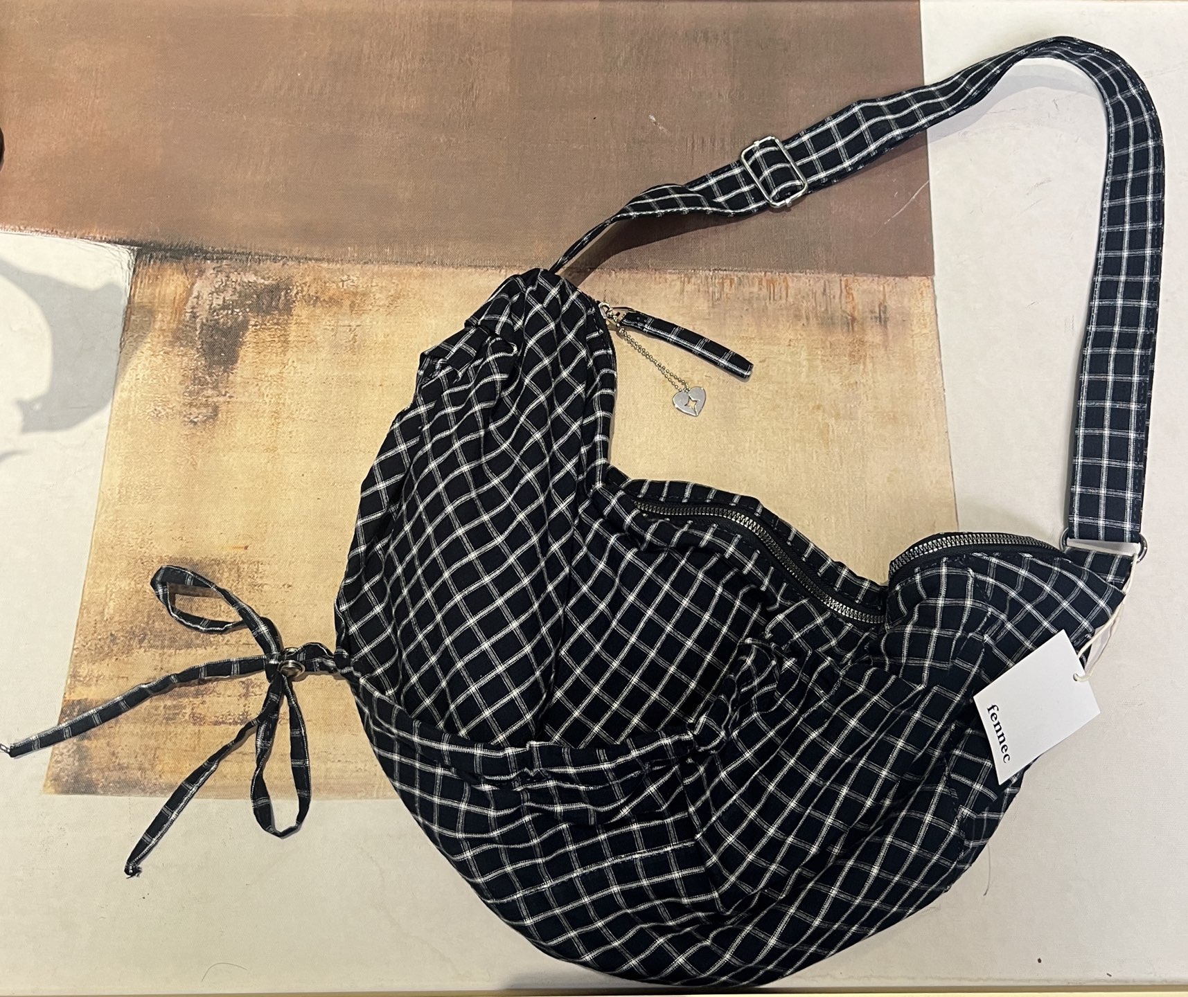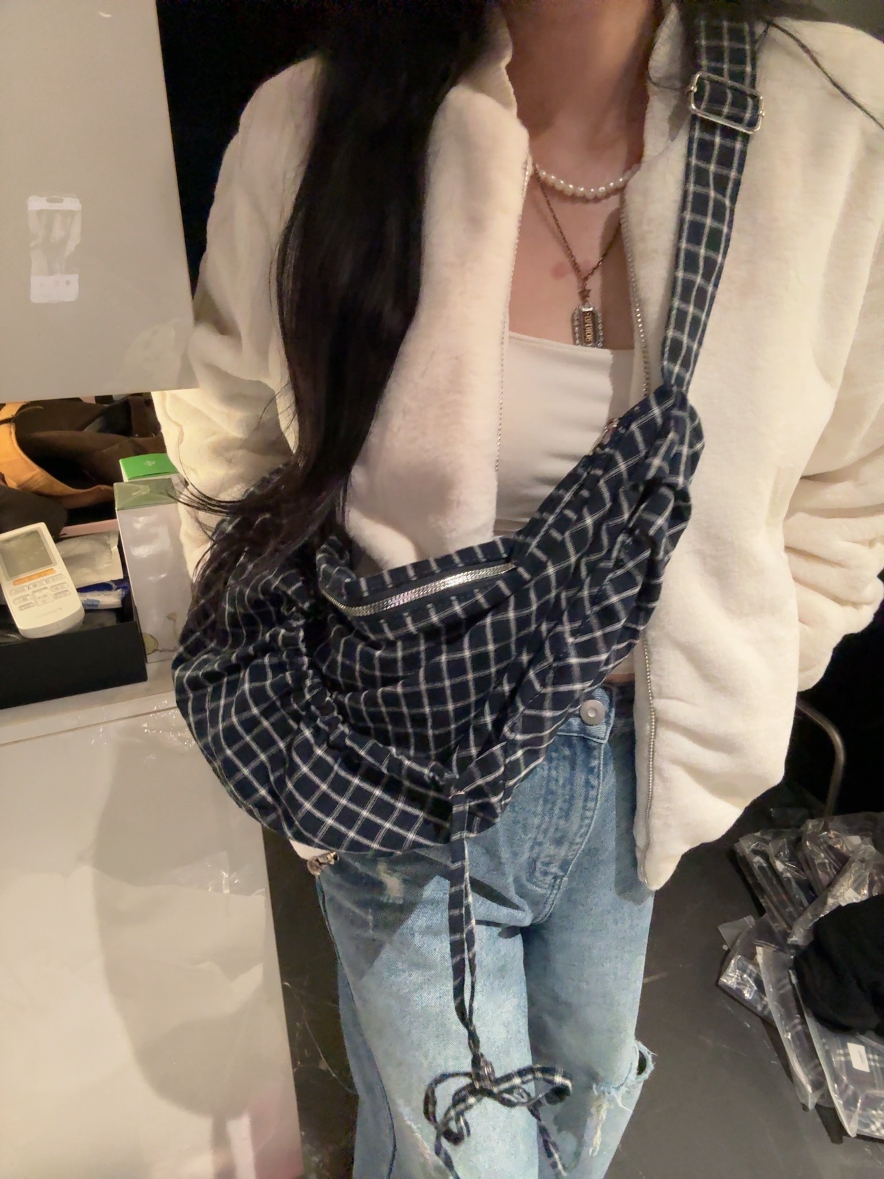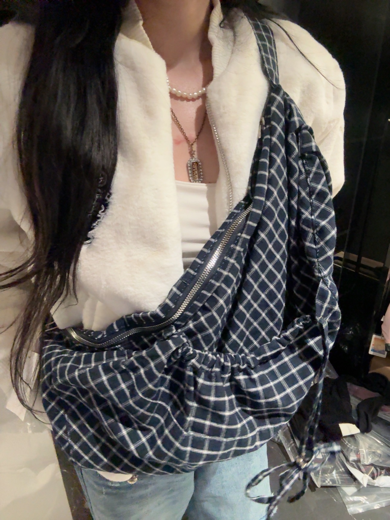 小白菜🥬好物分享!💯ZP‼️韩国🇰🇷发售价发售价 98000韩元🇰🇷 折合人名币¥528 左右!💫权顺荣同款fen&nec格纹包|小众感与实用性的双向奔赴 谁懂啊!次叔权顺荣同款的fen&nec格纹包也太戳我了😻 经典格纹自带复古滤镜,帆布材质软乎乎的,背起来随性又慵懒~ 细节控狂喜。金属爱心拉链配饰精致到骨子里,侧边抽绳设计可以自由调节包型,腋下、斜挎切换毫无压力~大容量内里能装下手机、化妆品、小本本,日常出街完全够用👏。背上它,时髦有品!小众不撞款,韩系氛围感直接拉满,谁背谁好看系列,冲就完事儿✅ 仓库现货发✈️ 纯原白菜🥬 可以装小宠物。或者妈咪包 学生包都很实用!