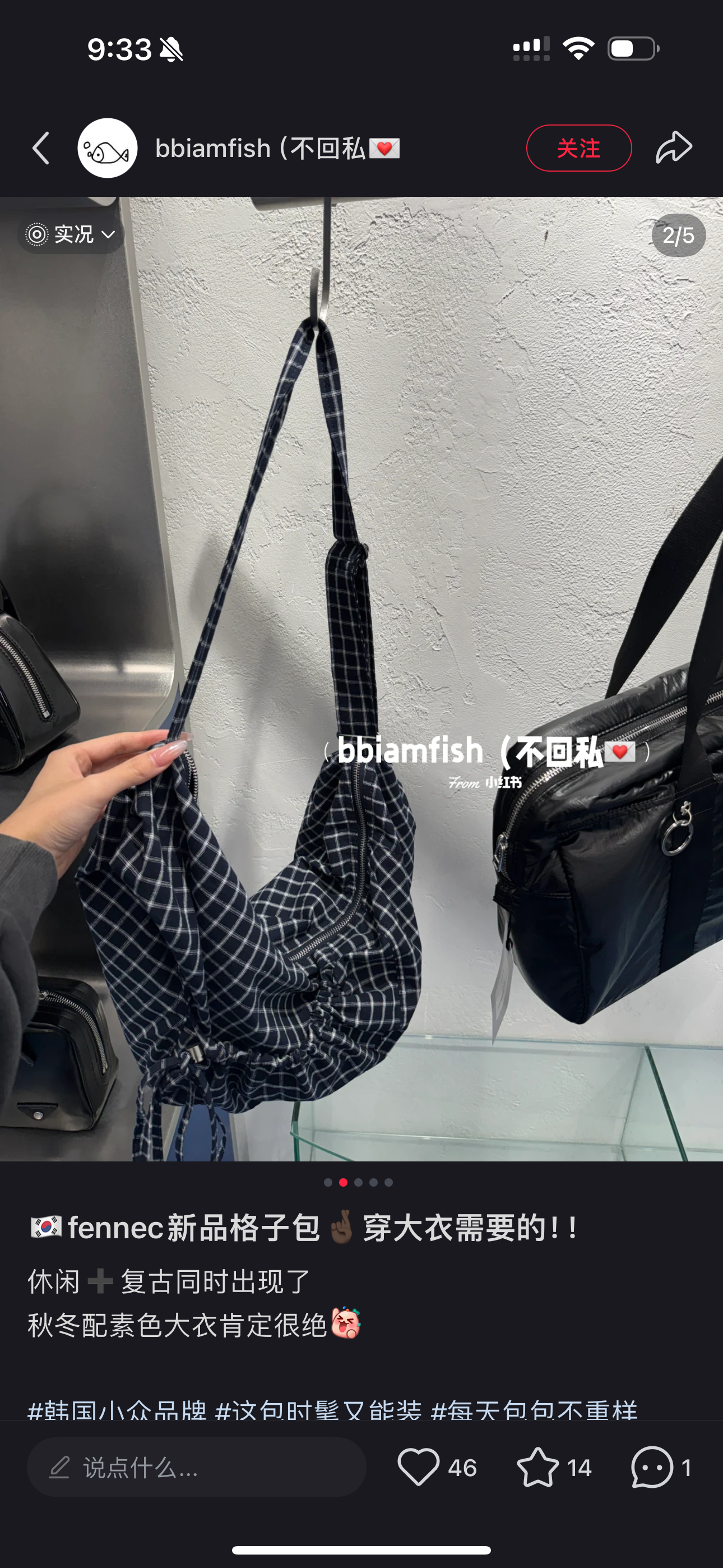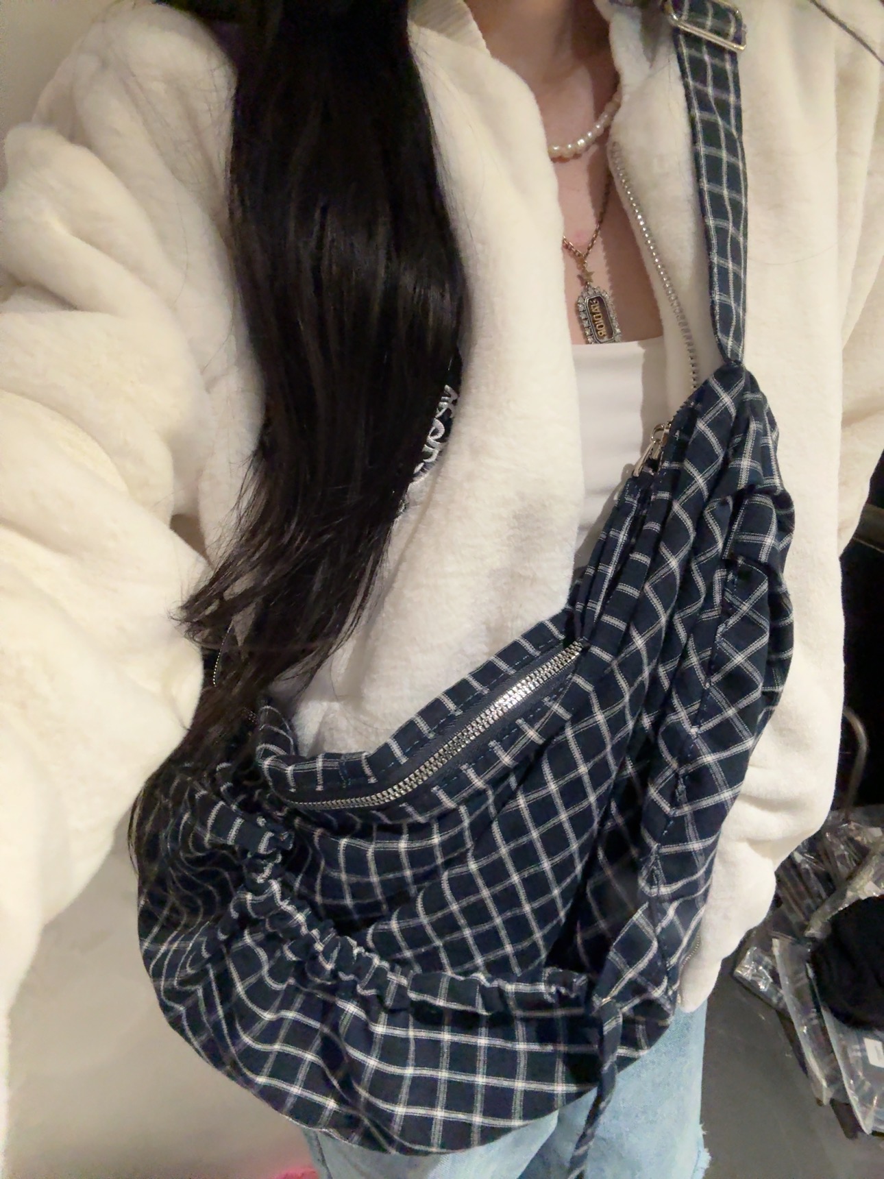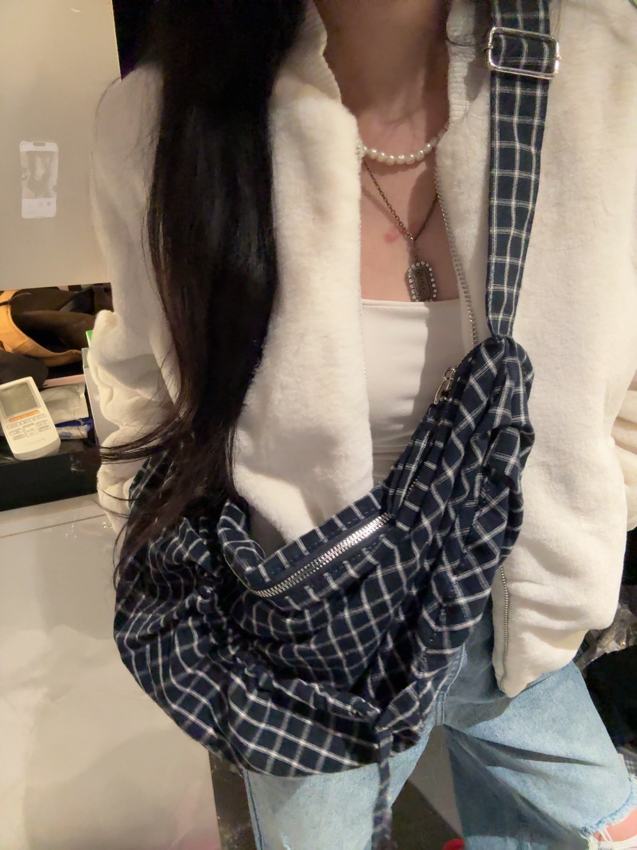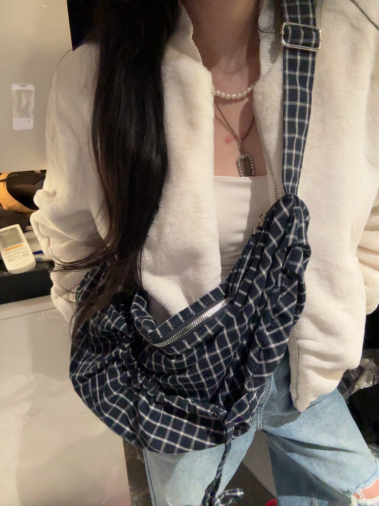 小白菜🥬好物分享!💯ZP‼️韩国🇰🇷发售价发售价 98000韩元🇰🇷 折合人名币¥528 左右!💫权顺荣同款fen&nec格纹包|小众感与实用性的双向奔赴 谁懂啊!次叔权顺荣同款的fen&nec格纹包也太戳我了😻 经典格纹自带复古滤镜,帆布材质软乎乎的,背起来随性又慵懒~ 细节控狂喜。金属爱心拉链配饰精致到骨子里,侧边抽绳设计可以自由调节包型,腋下、斜挎切换毫无压力~大容量内里能装下手机、化妆品、小本本,日常出街完全够用👏。背上它,时髦有品!小众不撞款,韩系氛围感直接拉满,谁背谁好看系列,冲就完事儿✅ 仓库现货发✈️ 纯原白菜🥬 可以装小宠物。或者妈咪包 学生包都很实用!