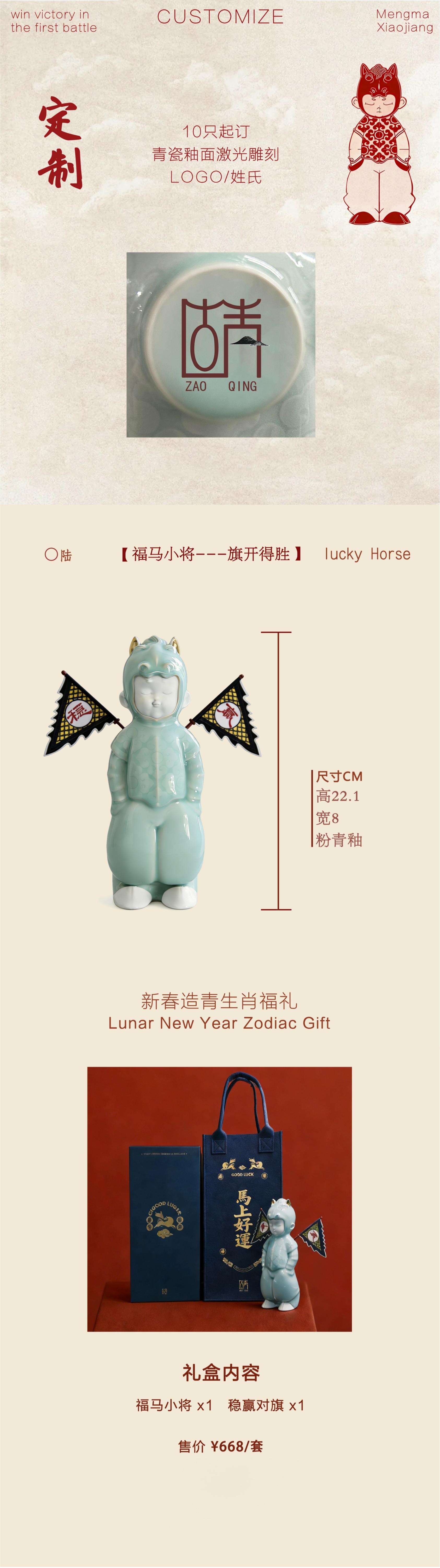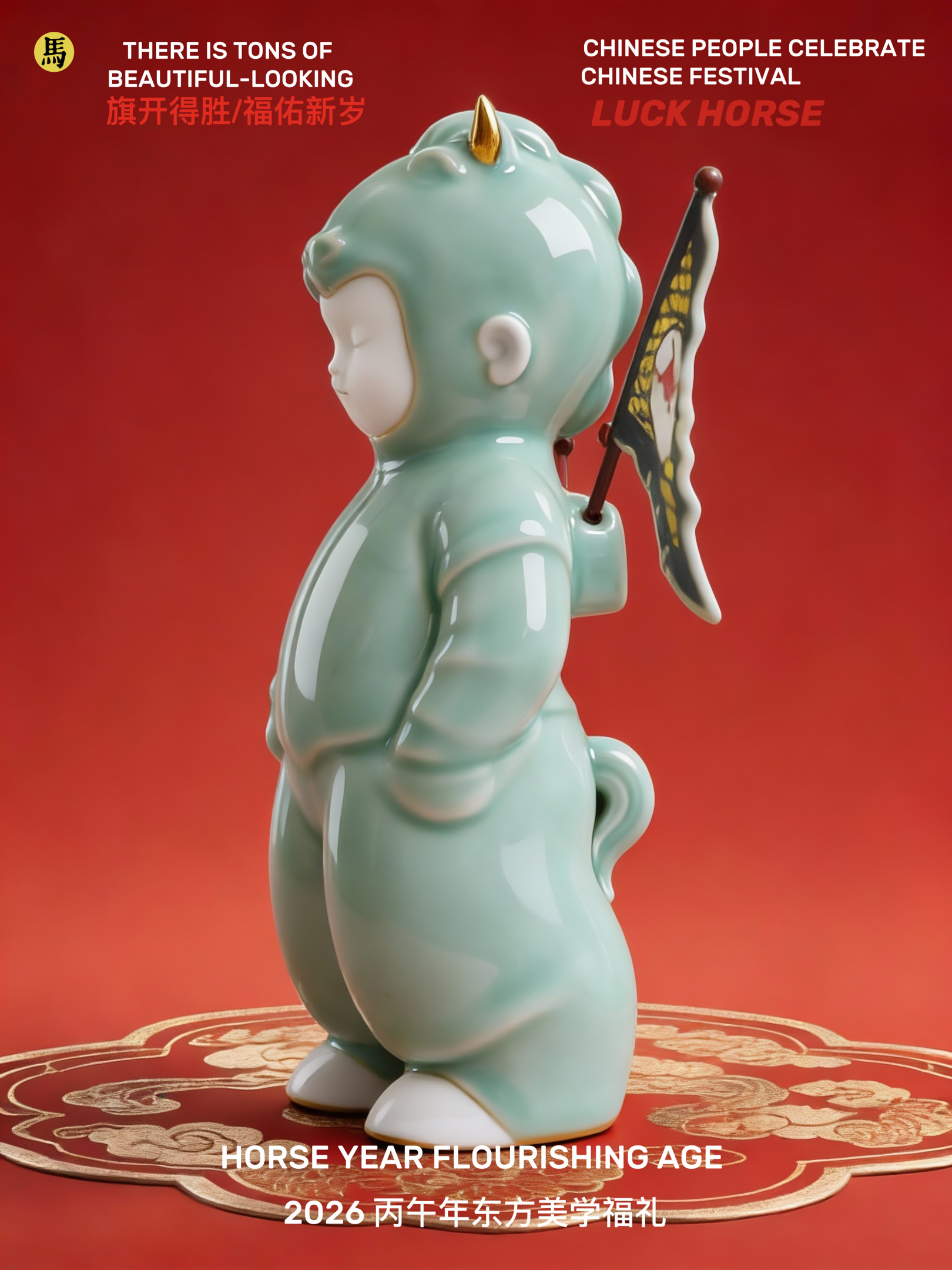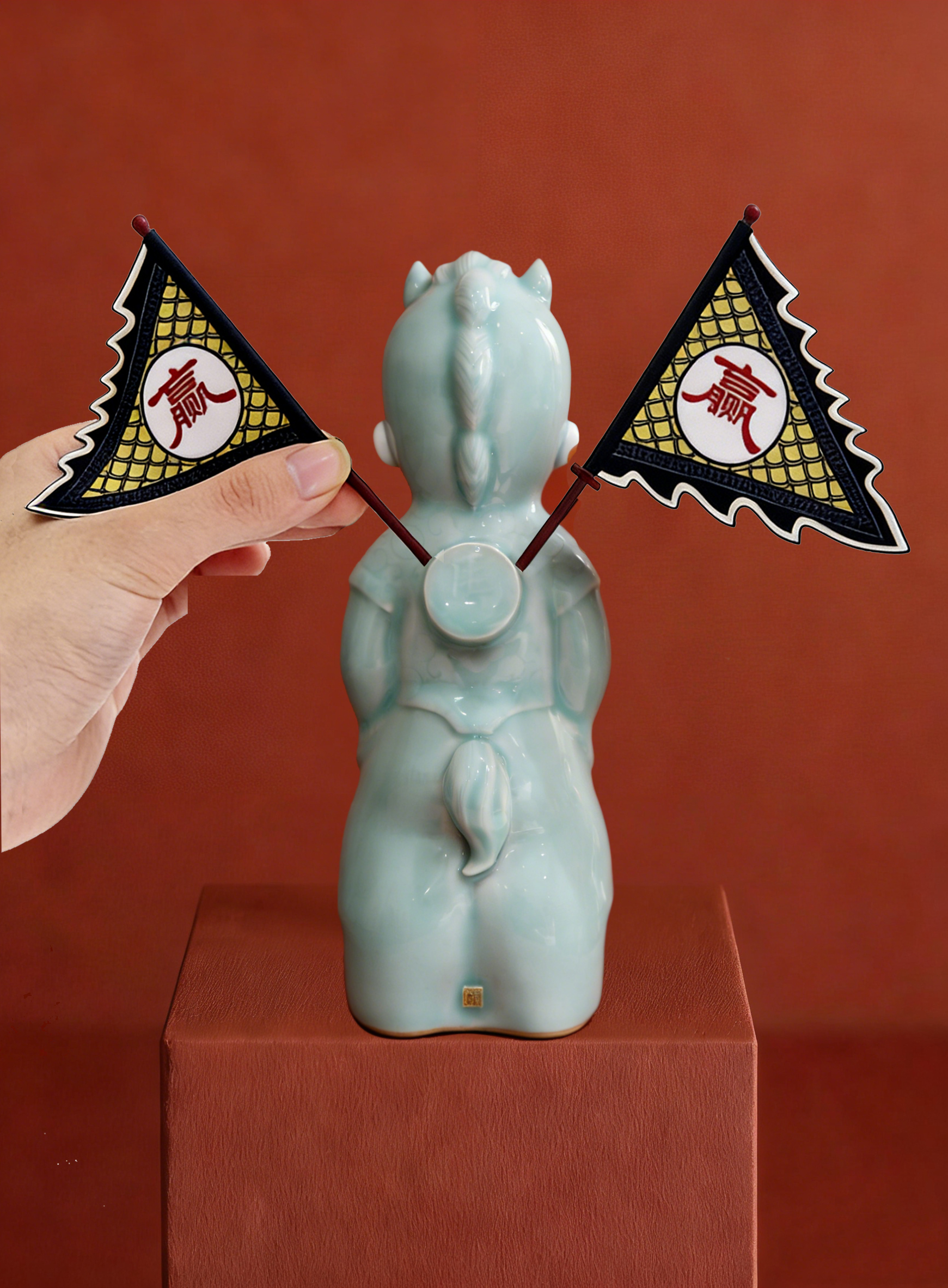 【旗开得胜】青瓷马公仔非遗传承手工马年生肖摆件 开业贺礼乔迁礼品 家居茶室装饰