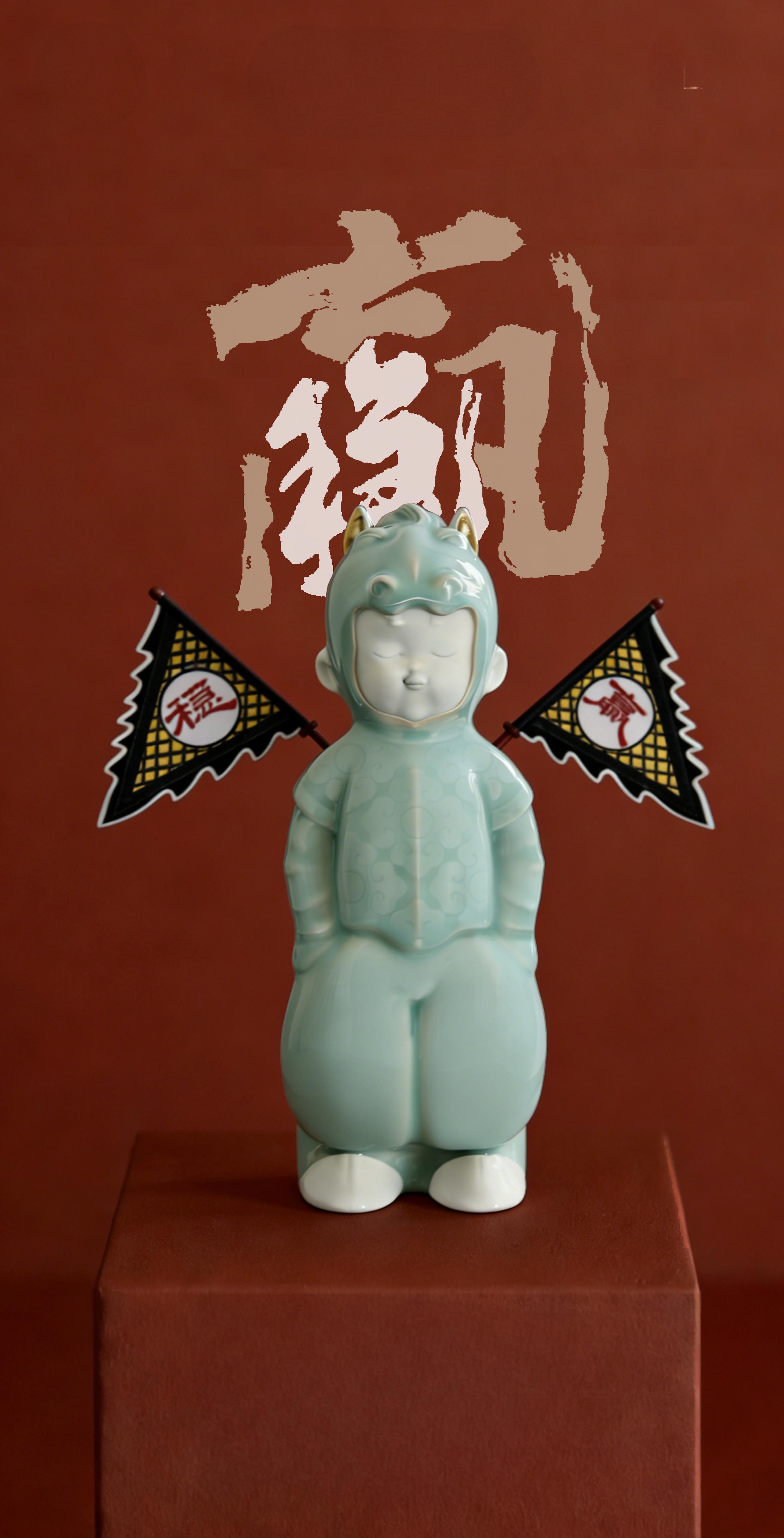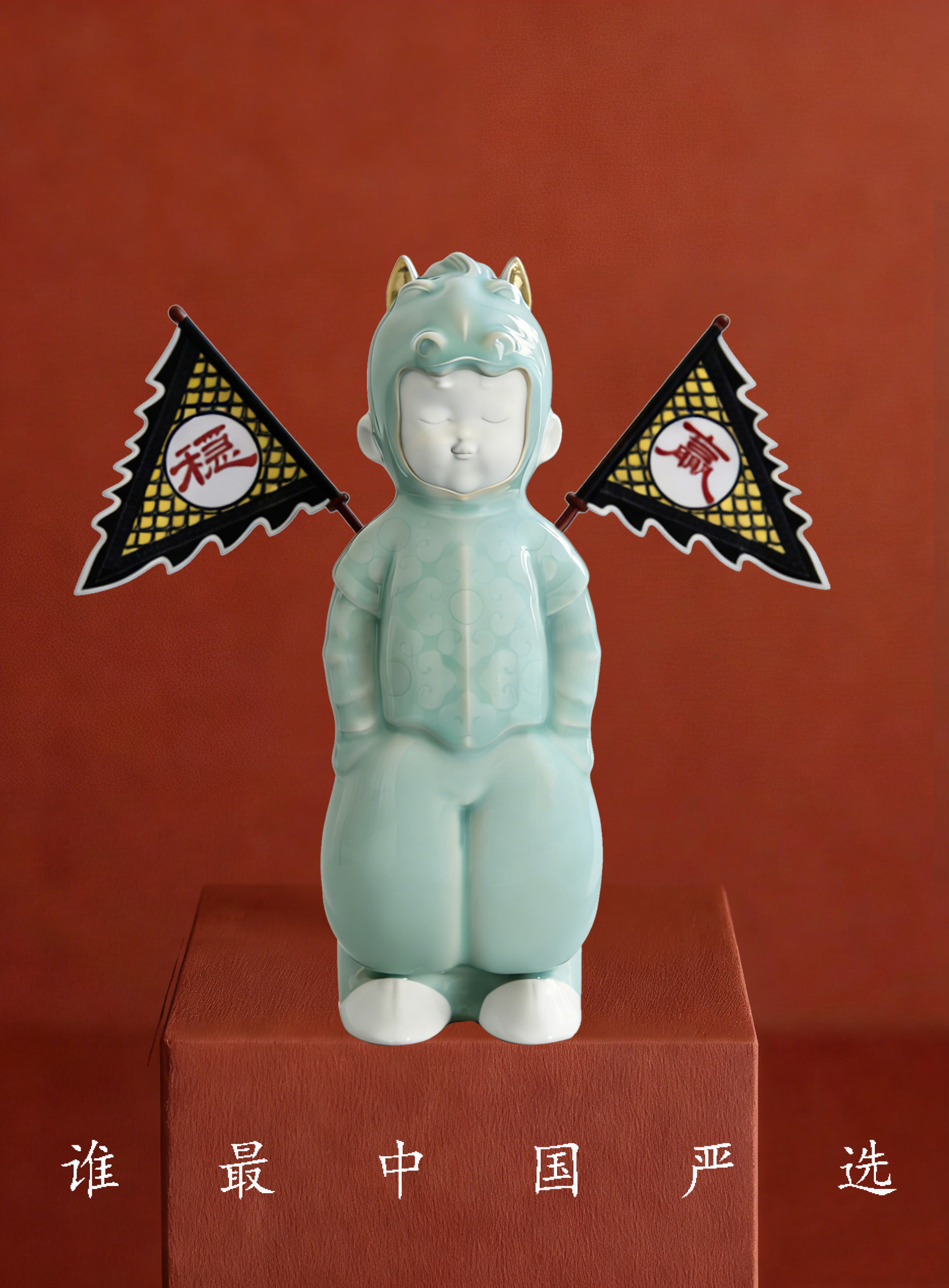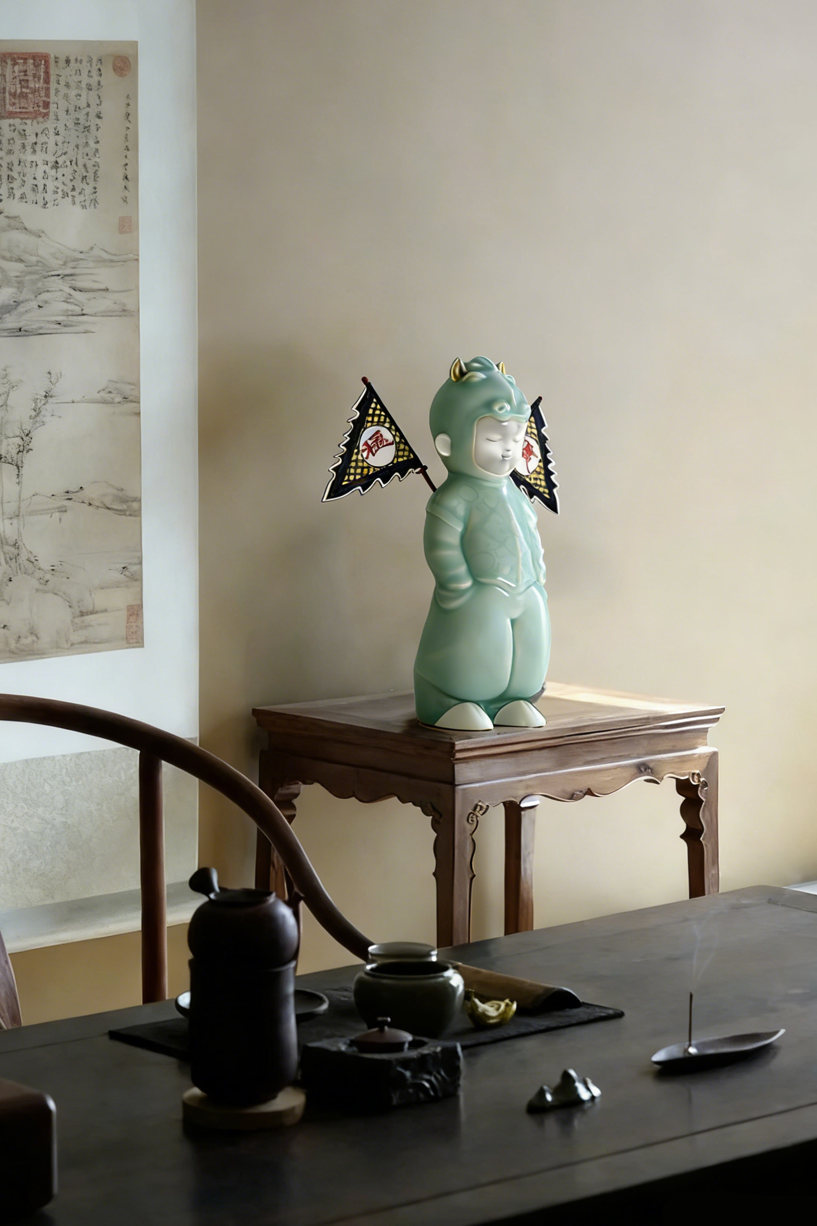 【旗开得胜】青瓷马公仔非遗传承手工马年生肖摆件 开业贺礼乔迁礼品 家居茶室装饰