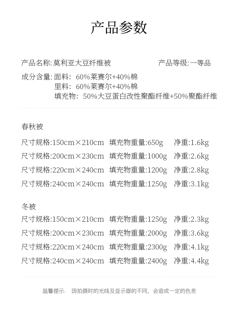 whinny/惠谊加厚保暖纤维被芯 莫利亚大豆保暖春秋被/冬被