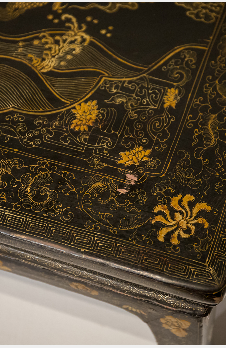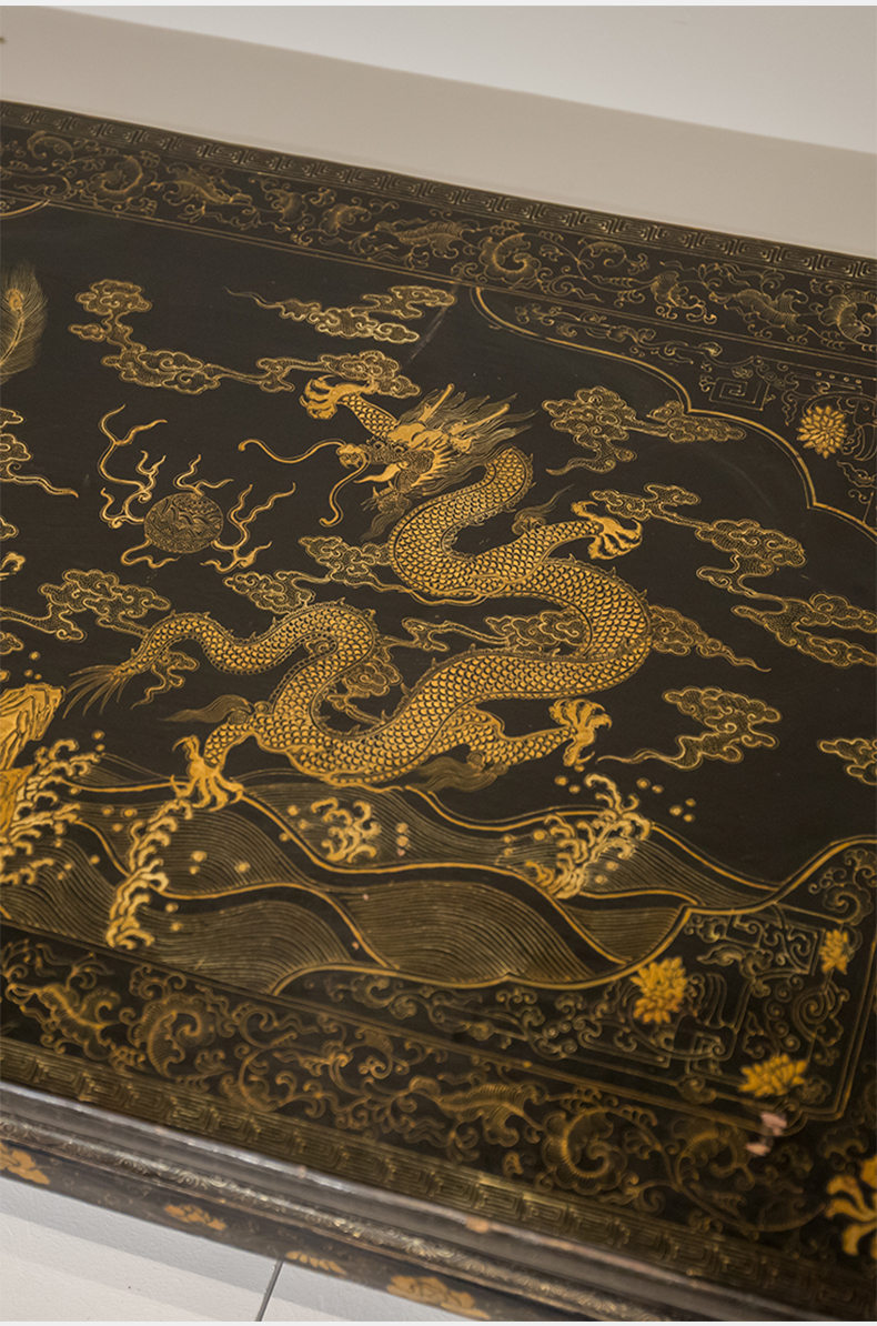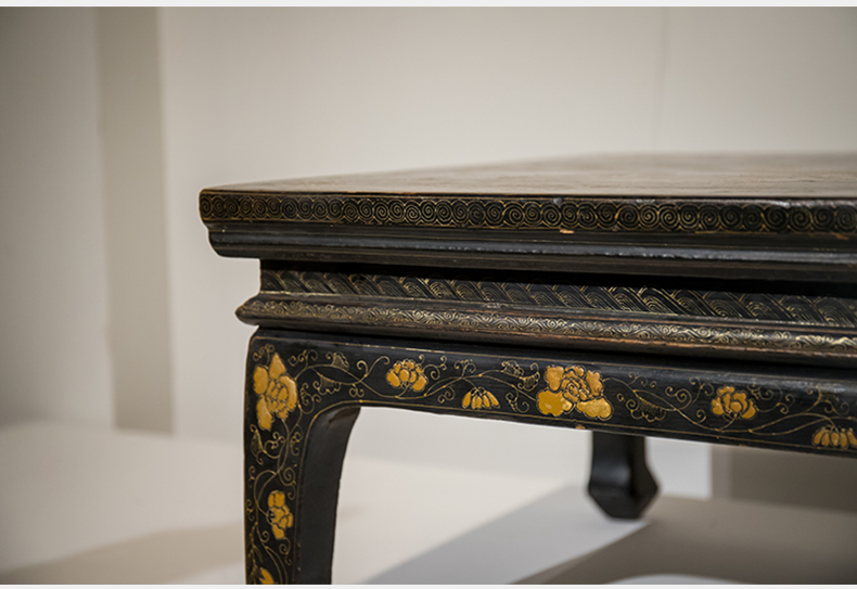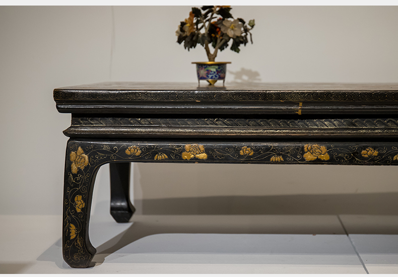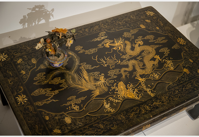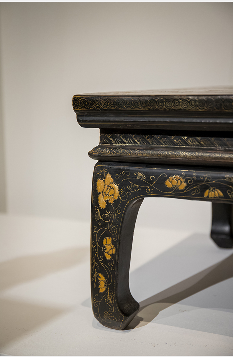 清代 大漆描金花卉纹龙凤呈祥炕桌