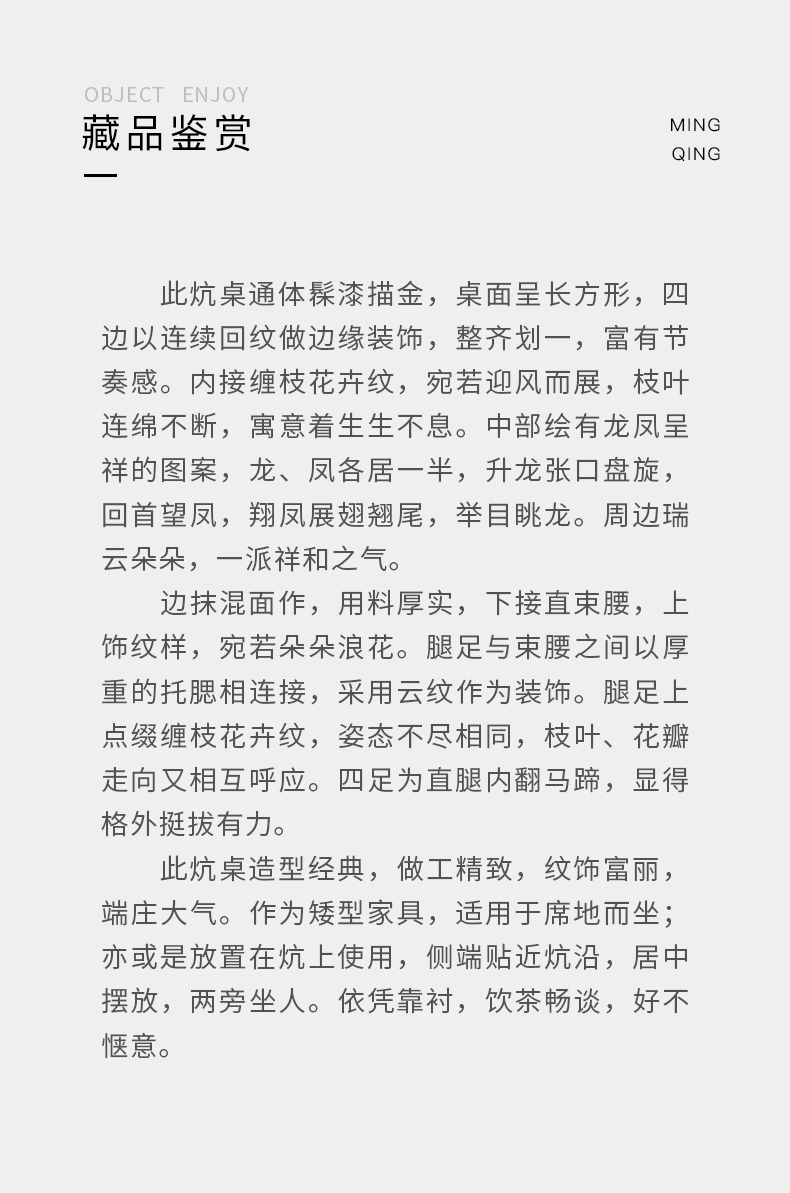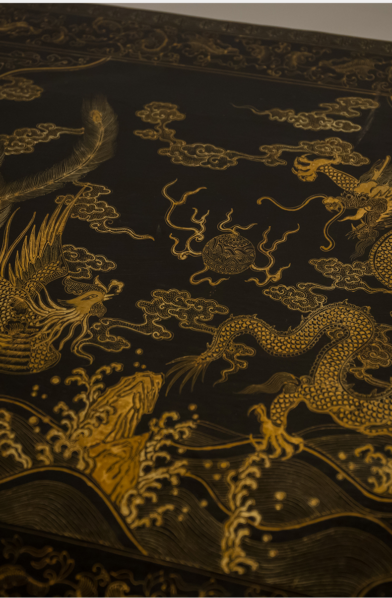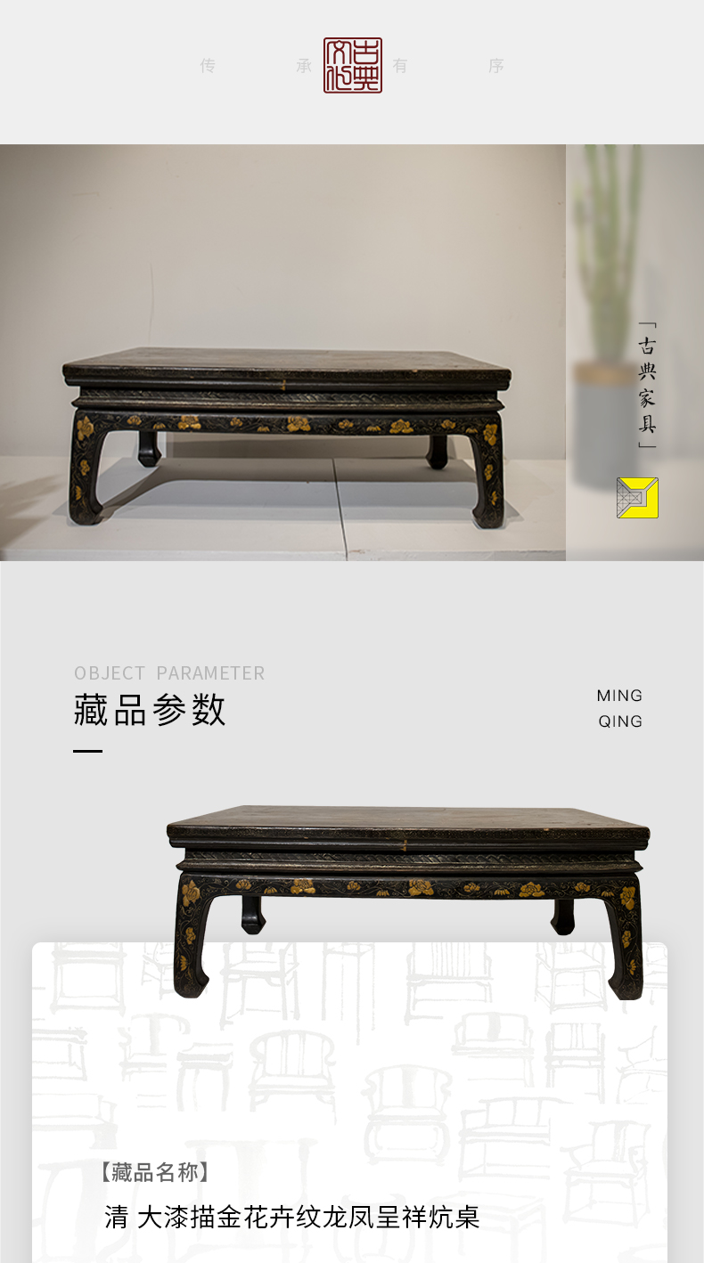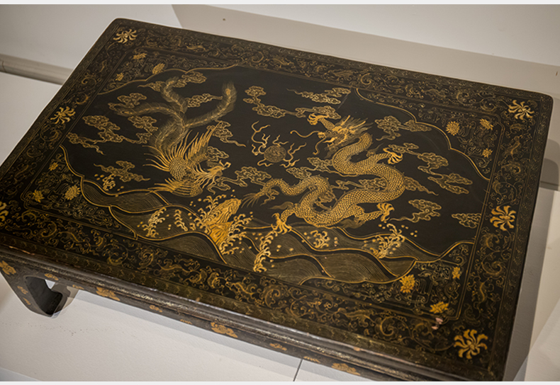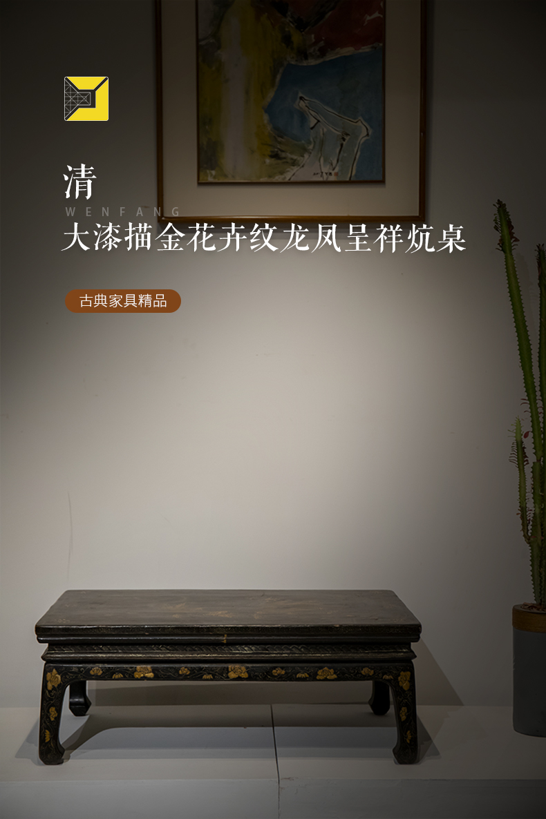 清代 大漆描金花卉纹龙凤呈祥炕桌