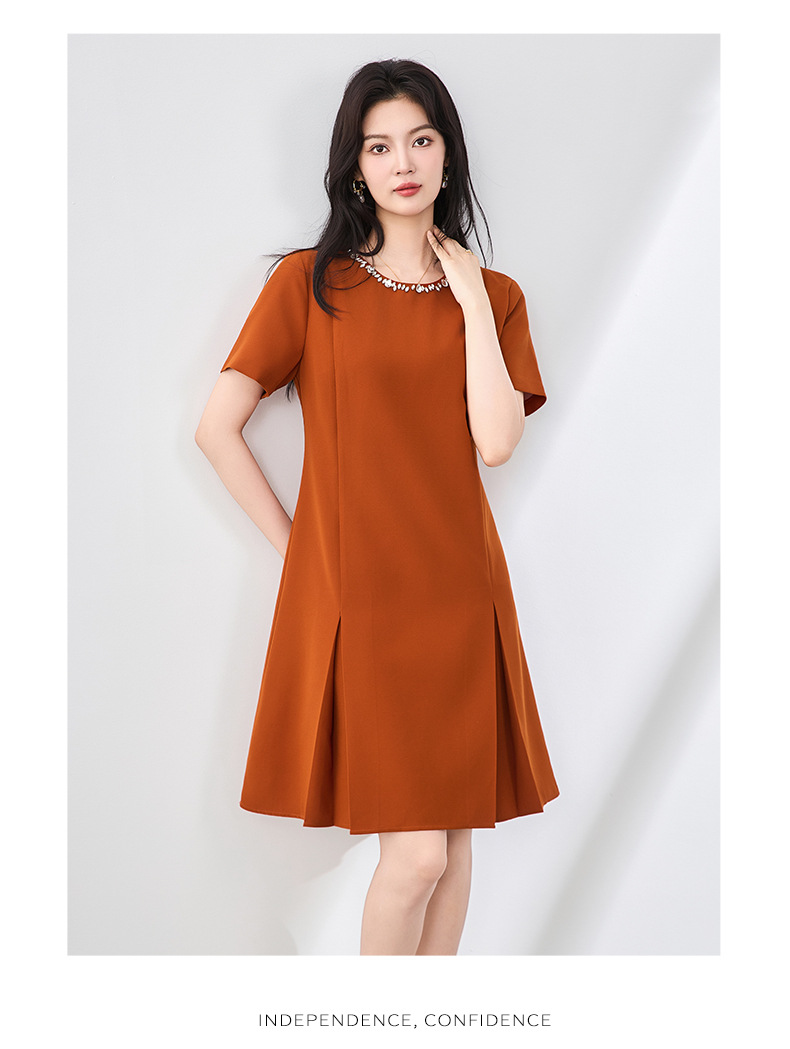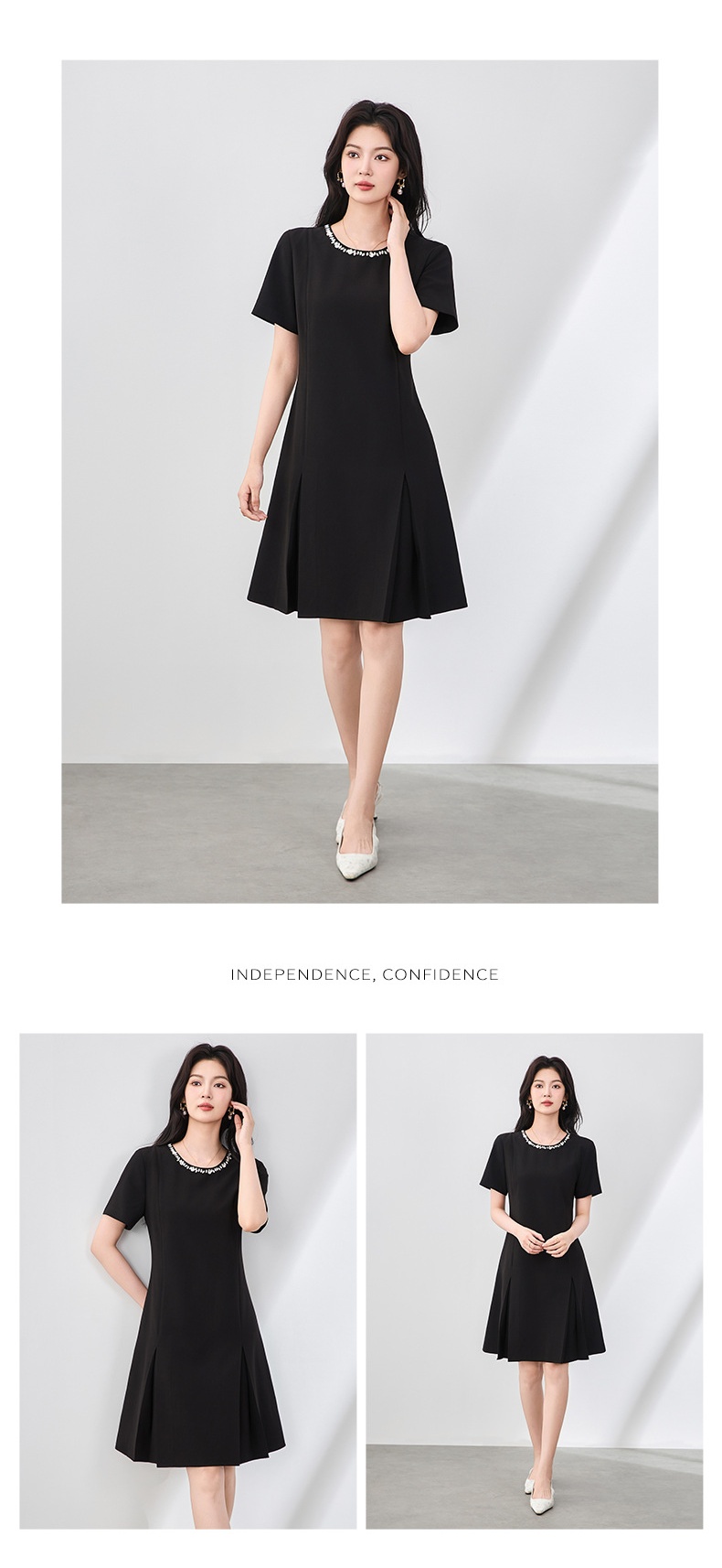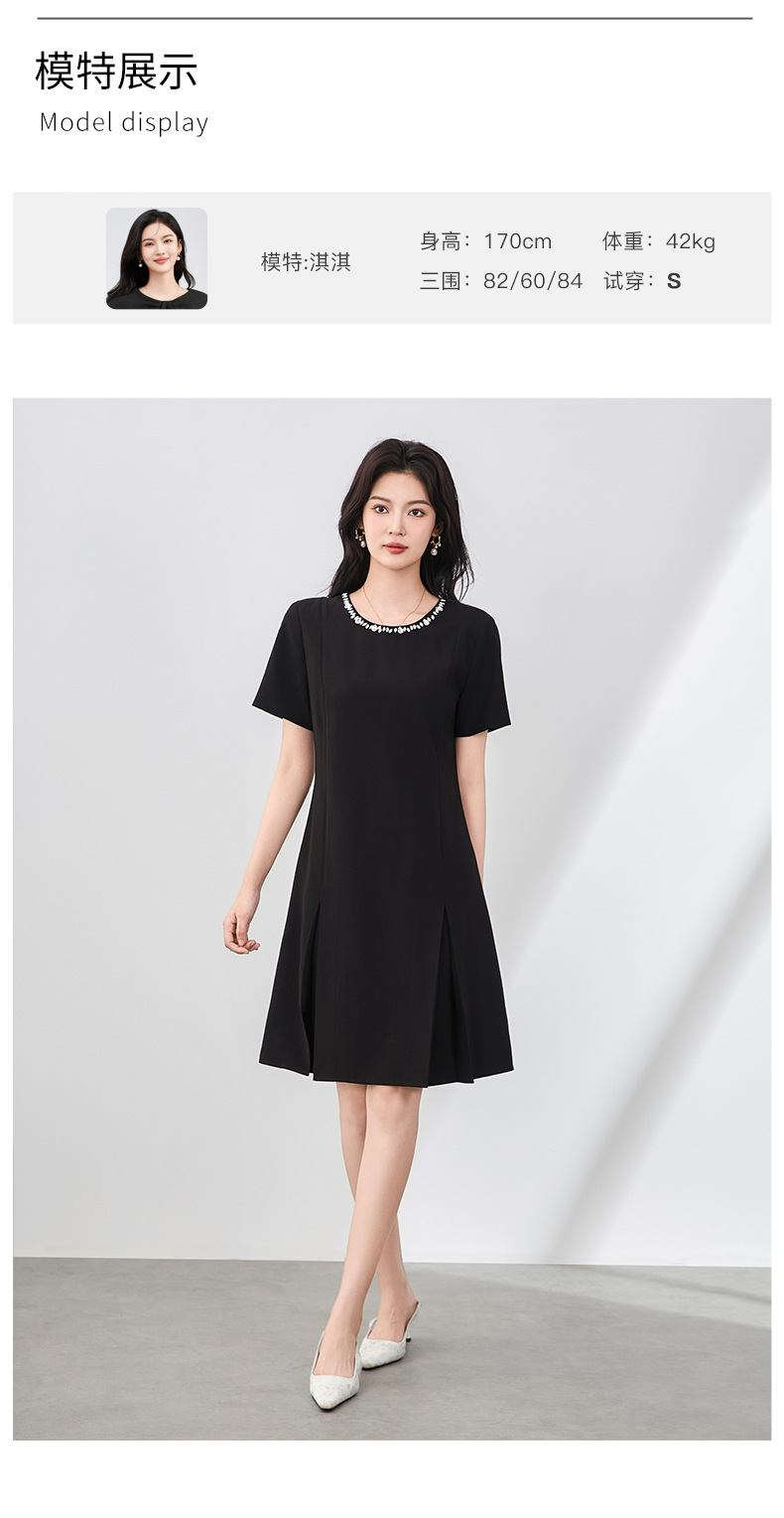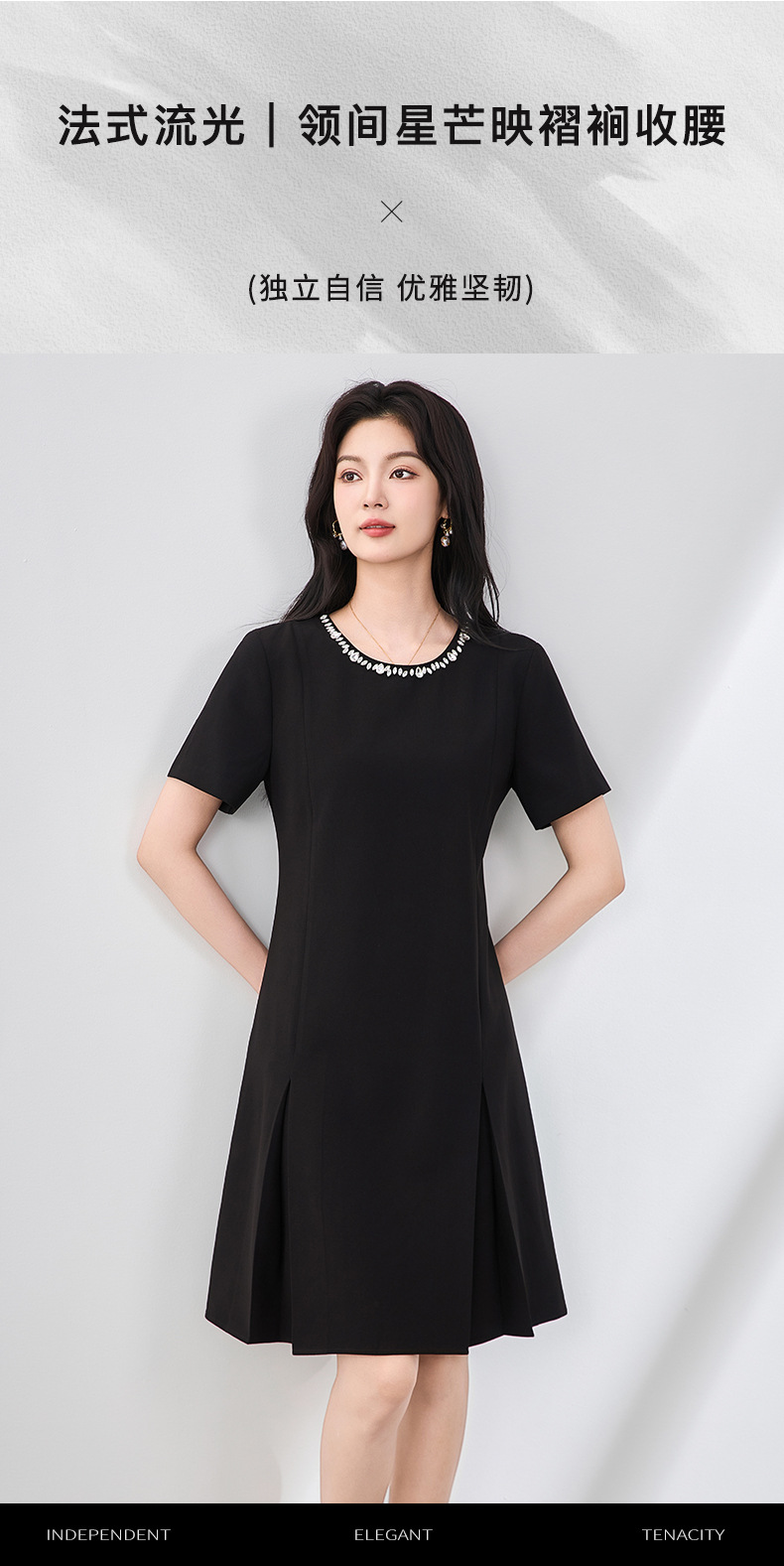 「高货wl」全新升级【铂金会员339/天猫459/差价120】(93112)洛诗琳法式气质收腰压褶连衣裙2025夏季重工钉钻轻奢A字裙