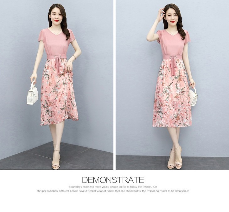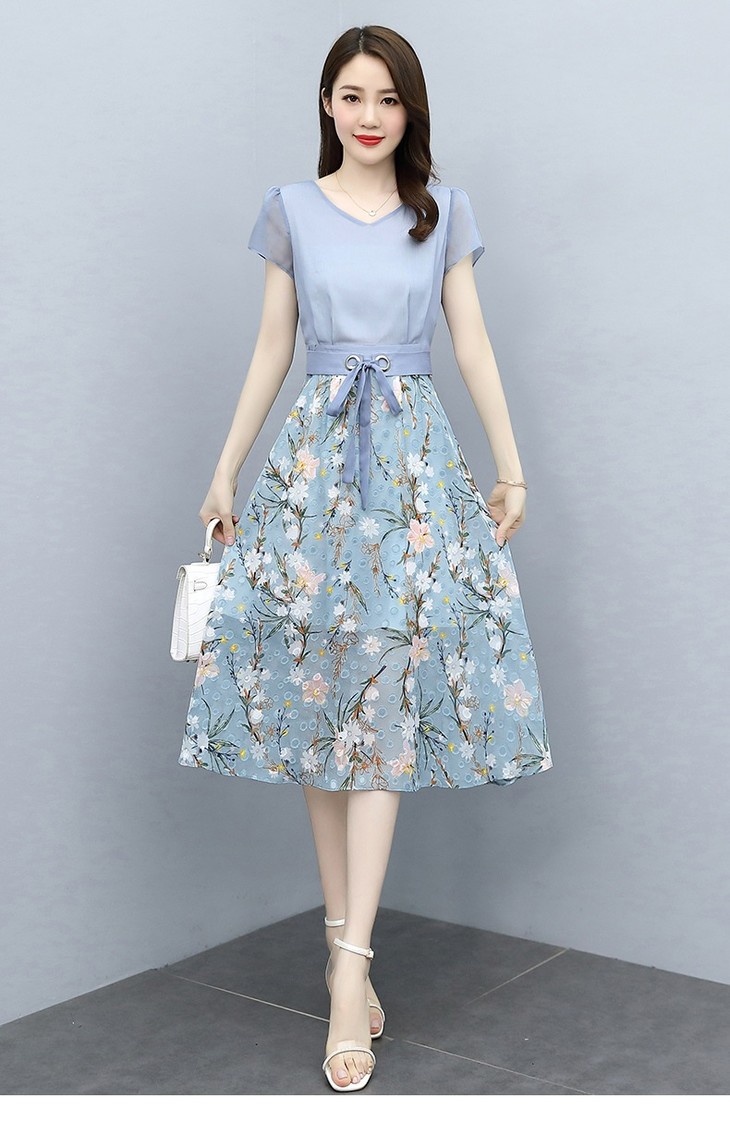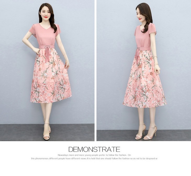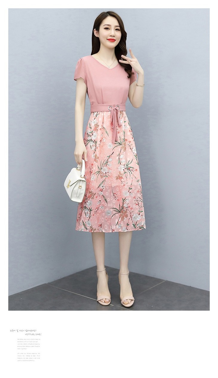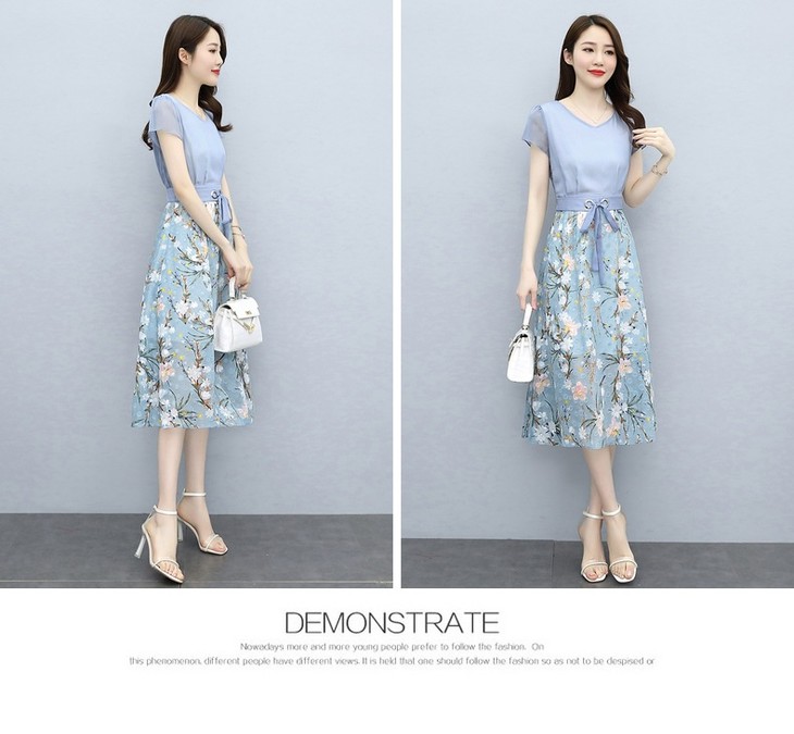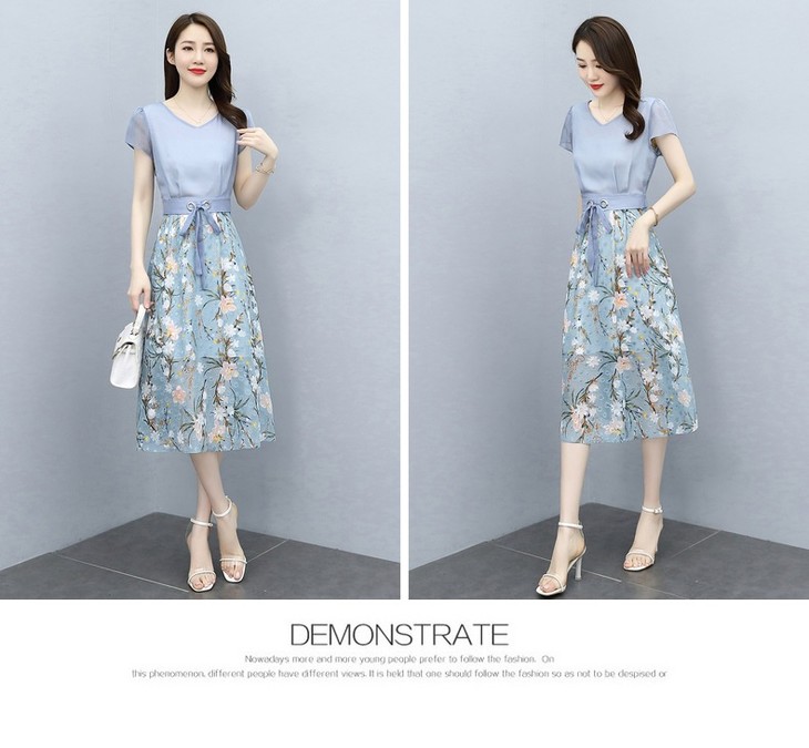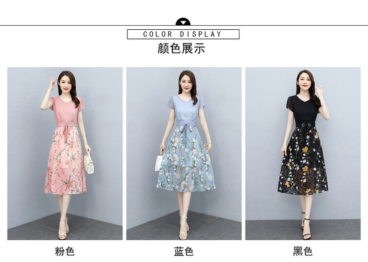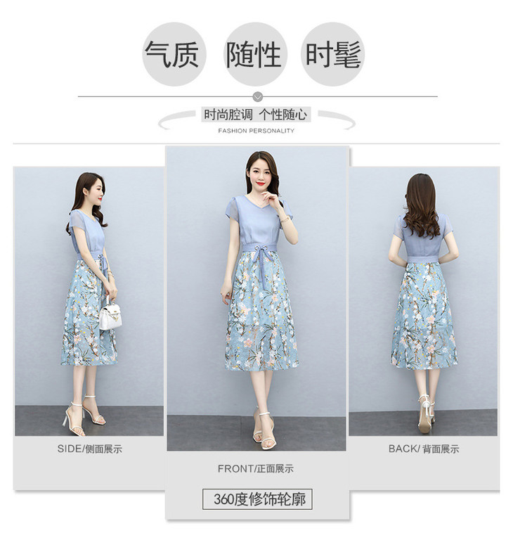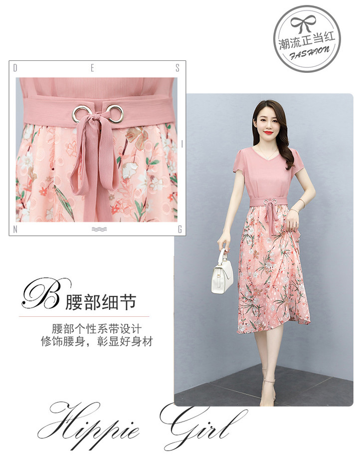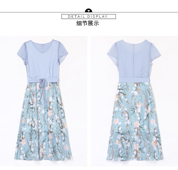 HR- WM21079 2021夏季新款时尚优雅气质腰部系带收腰显瘦修身连衣裙
