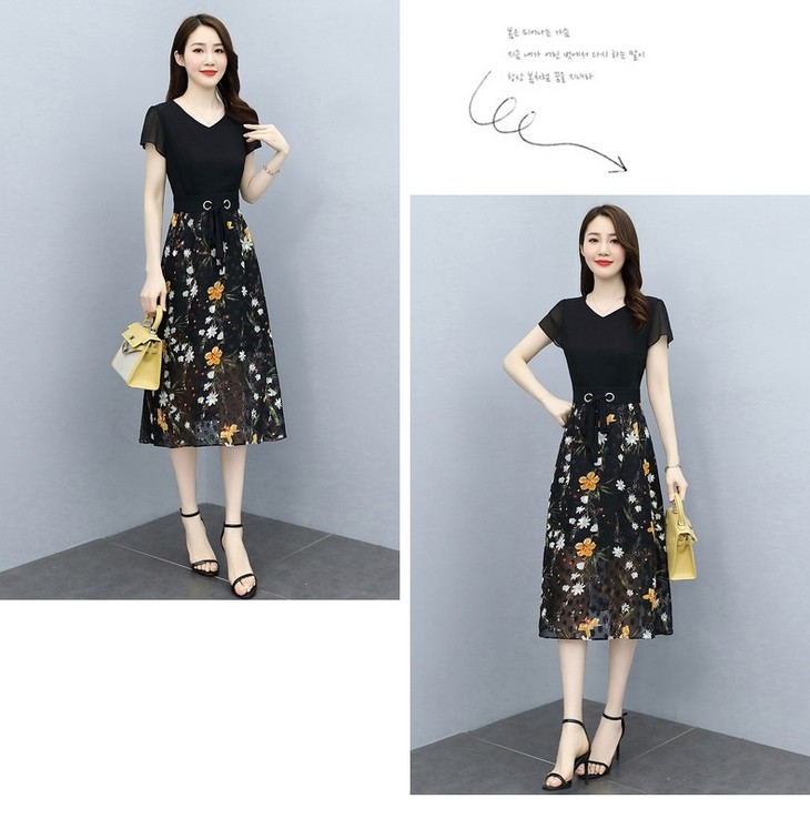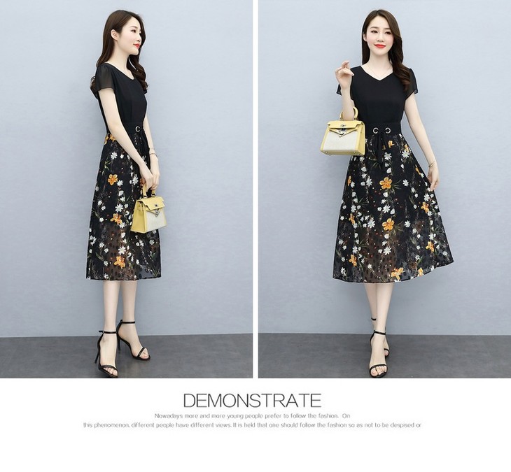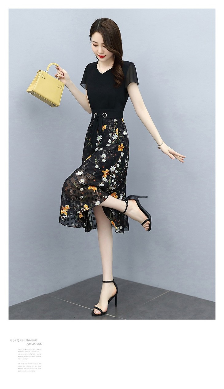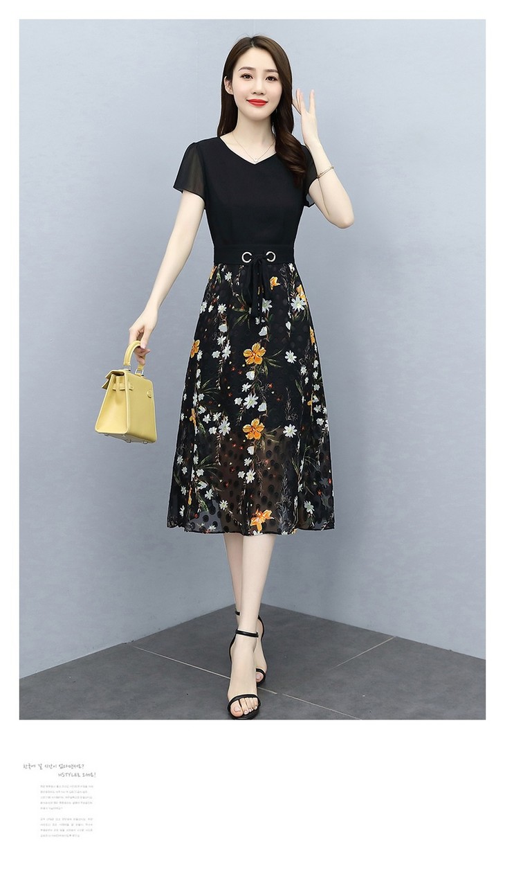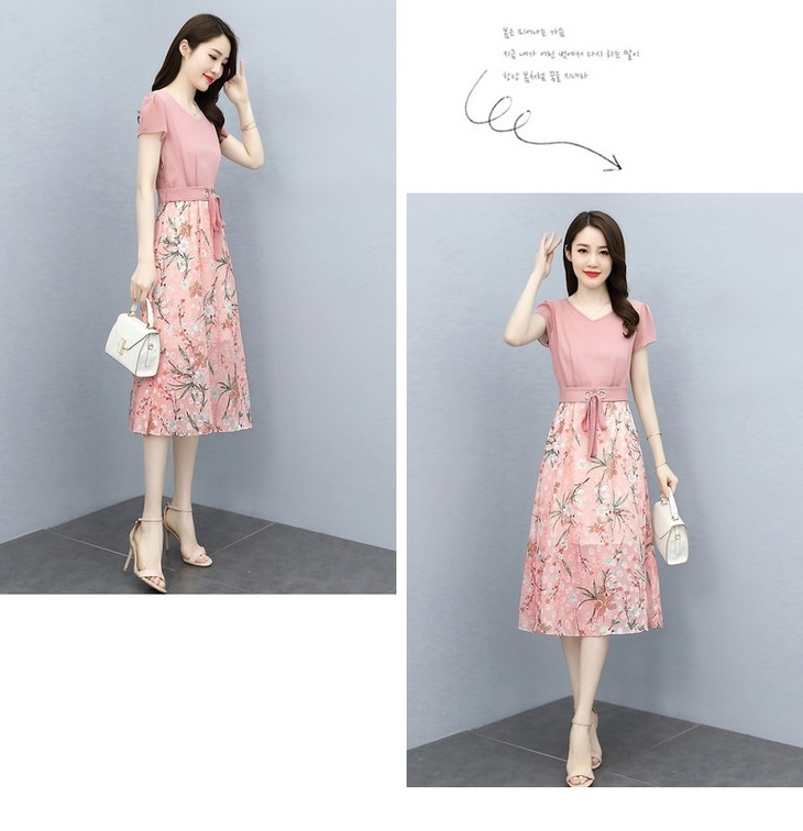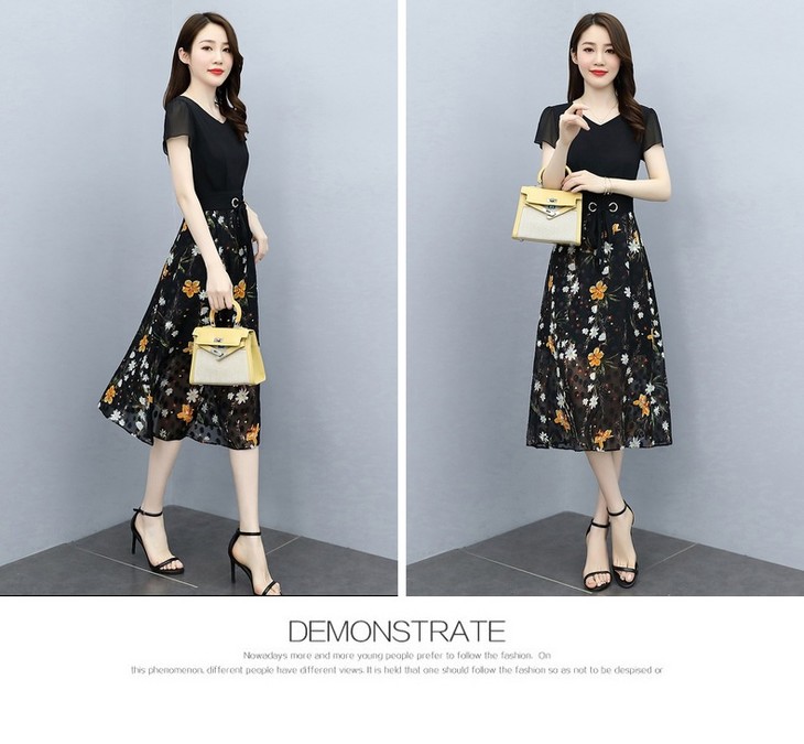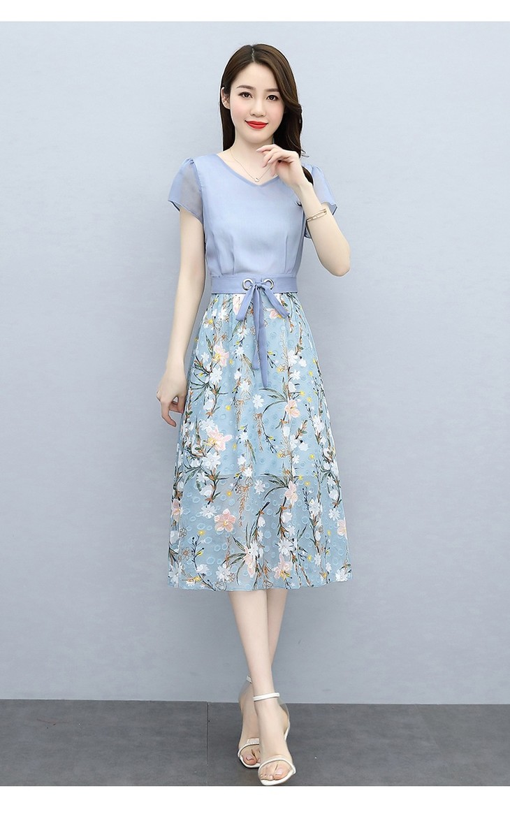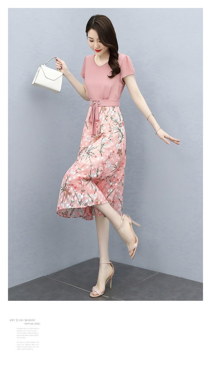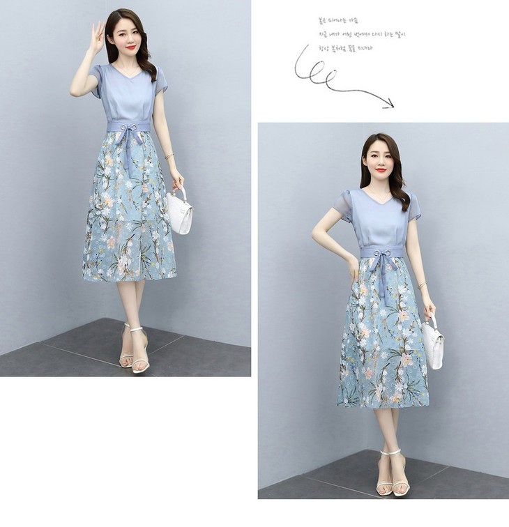 HR- WM21079 2021夏季新款时尚优雅气质腰部系带收腰显瘦修身连衣裙